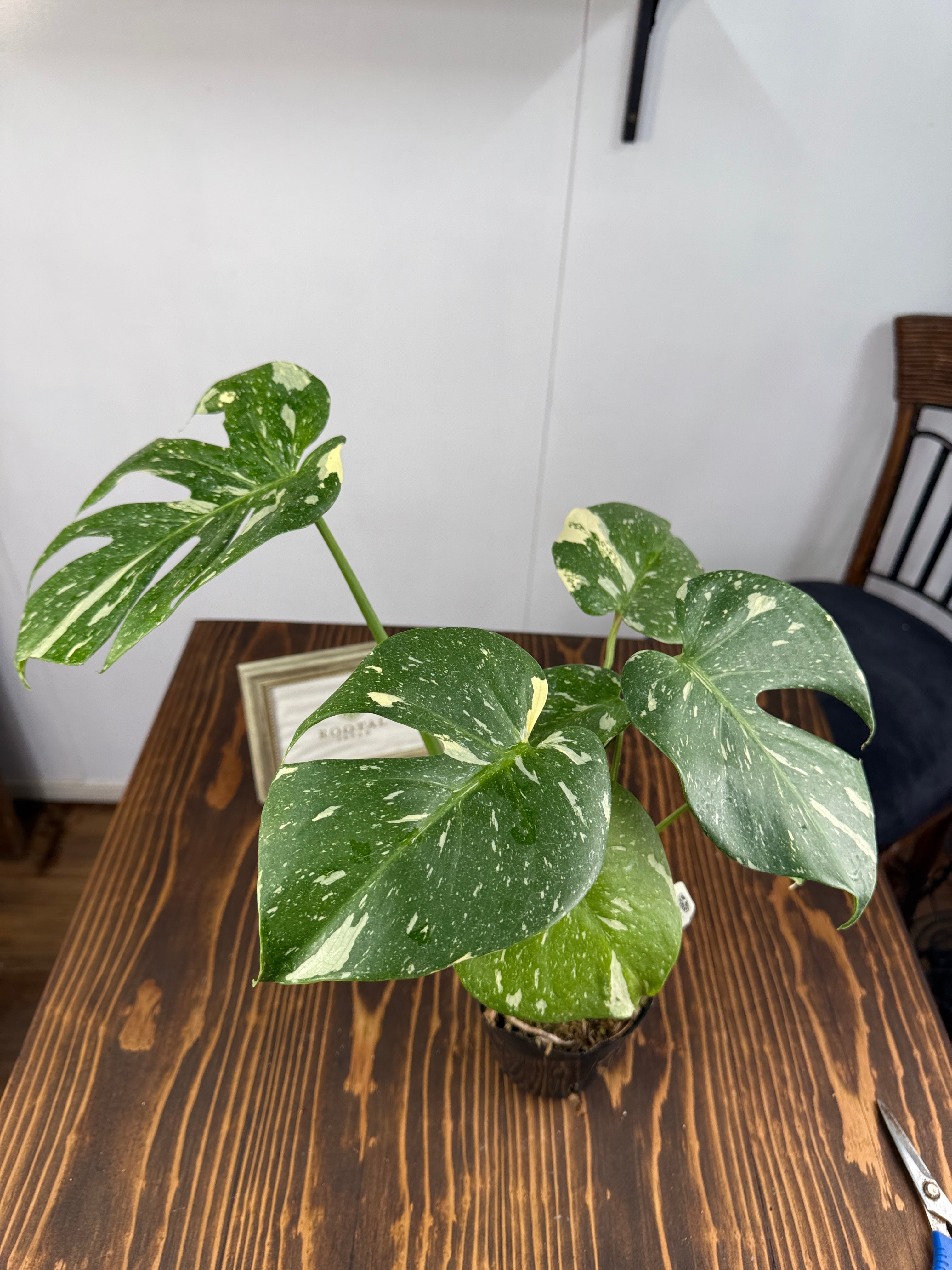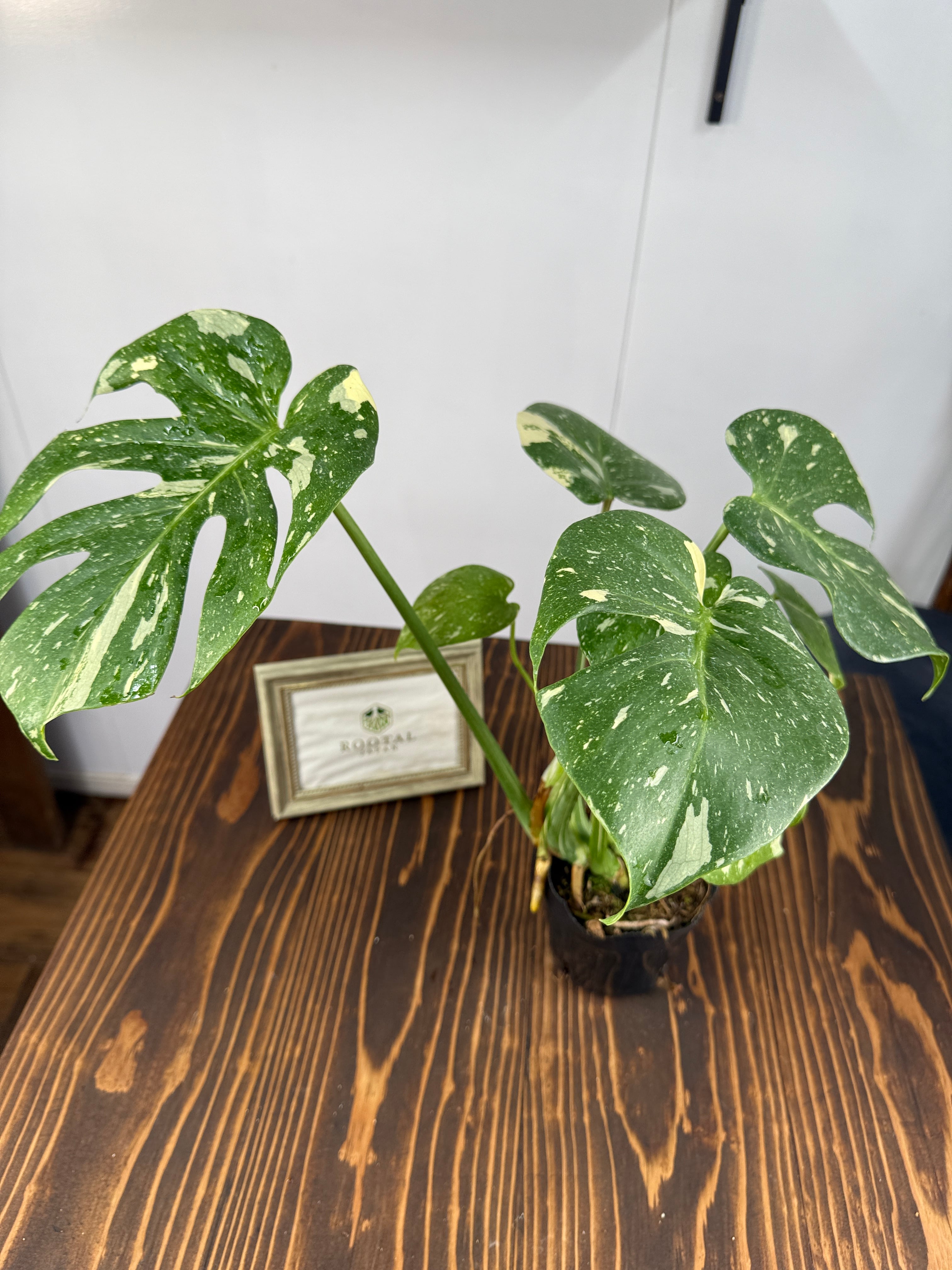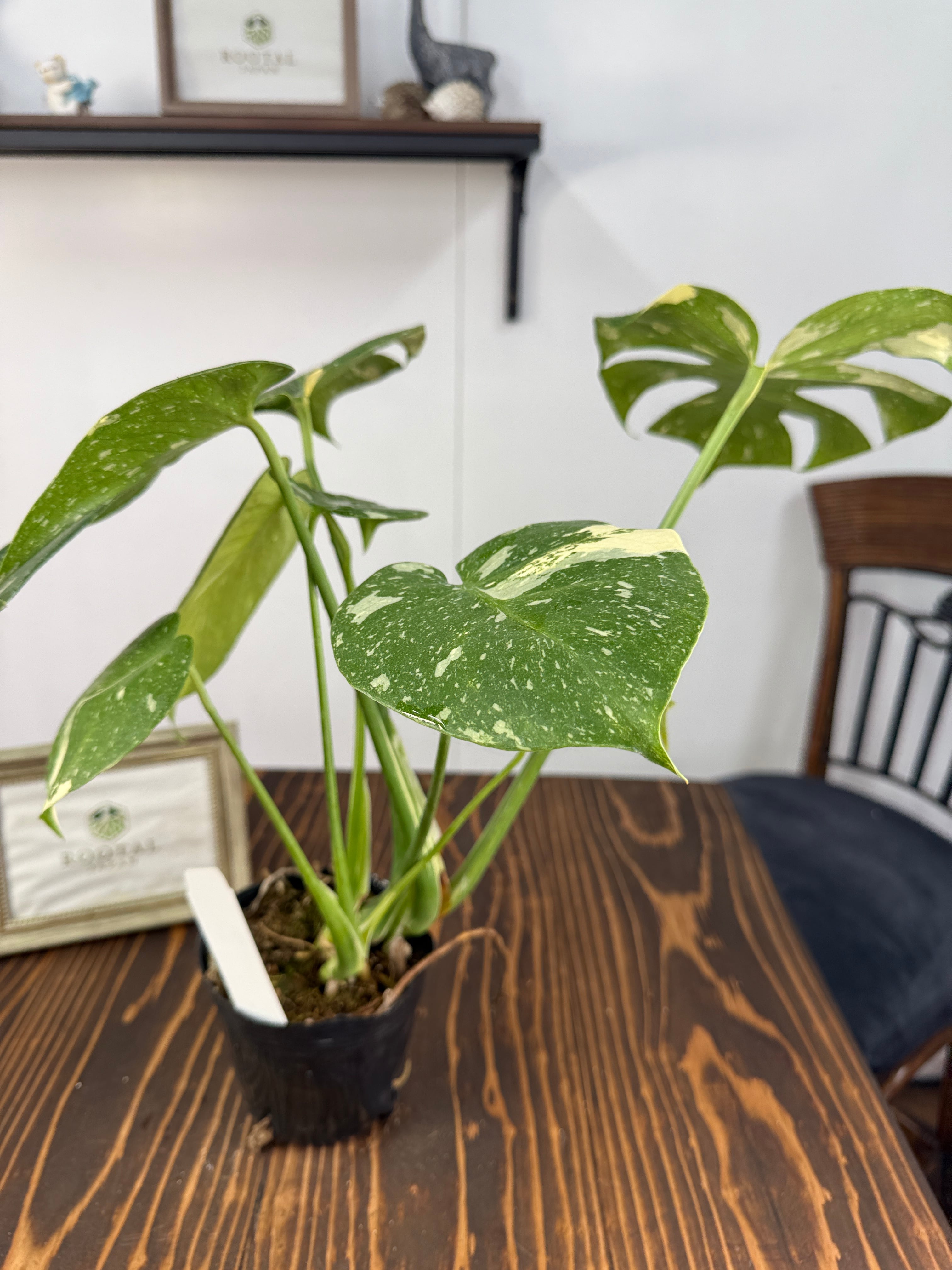 魅力的なバリエガータのかわいいベビー苗!モンステラ デリシオーサ タイコンステレーションは、その美しい斑入り模様と可愛らしいサイズ感が魅力の観葉植物です。インテリアにグリーンをプラスするだけでなく、心を癒してくれる一品です。手軽に育てられるので、初心者の方にもおすすめです。