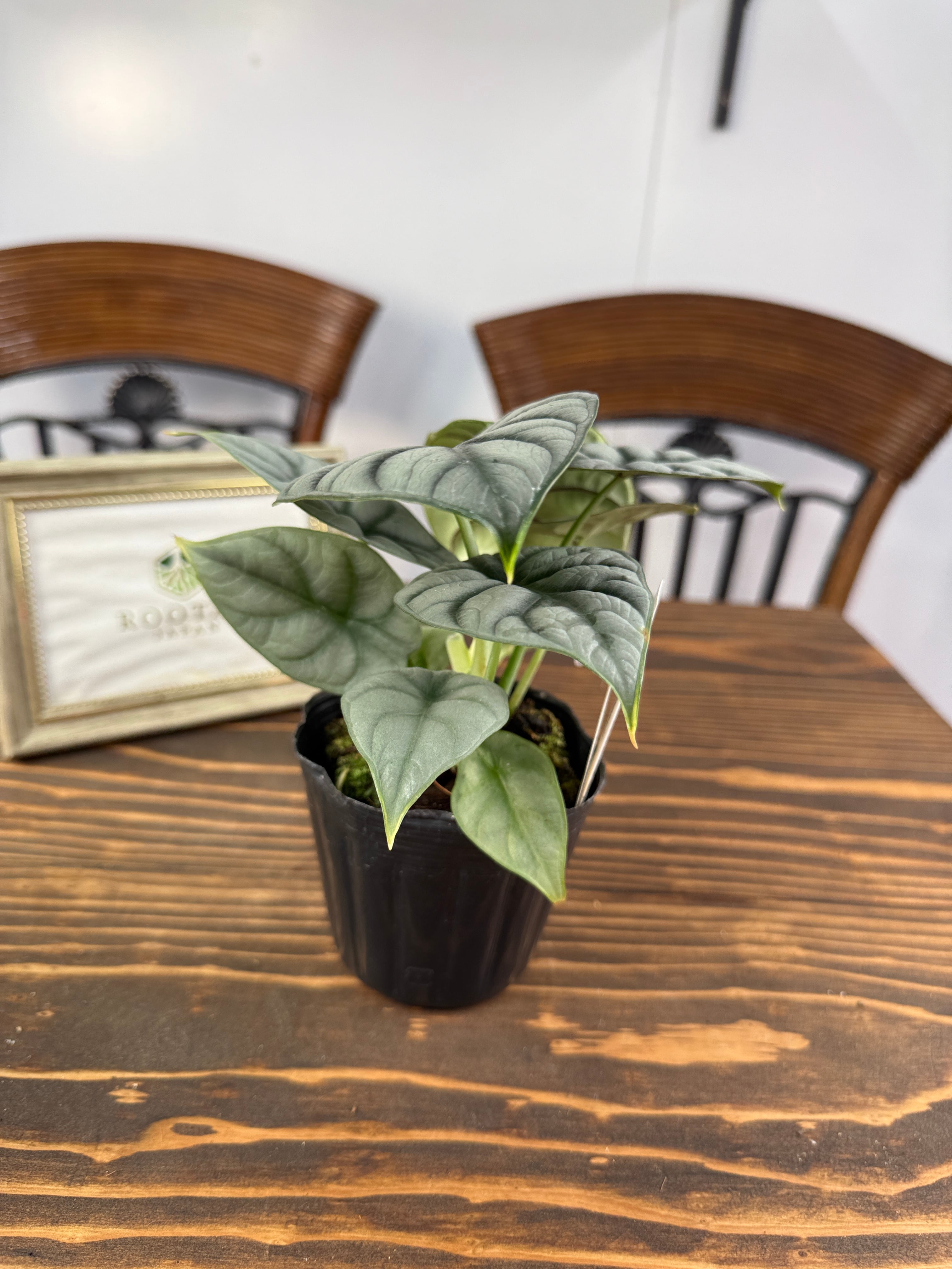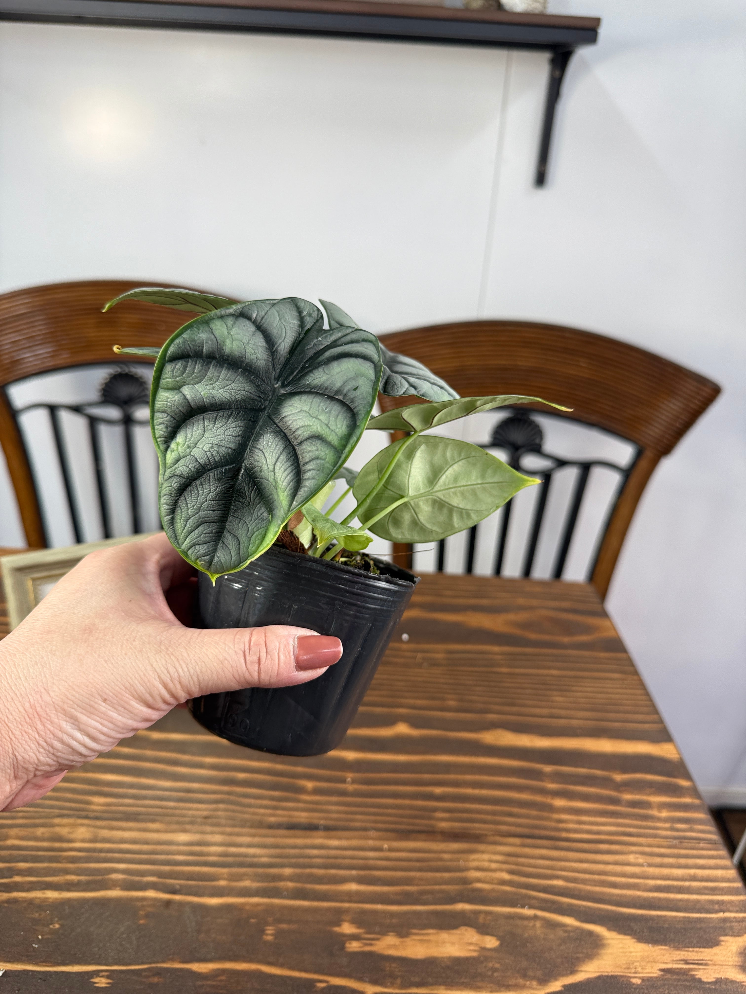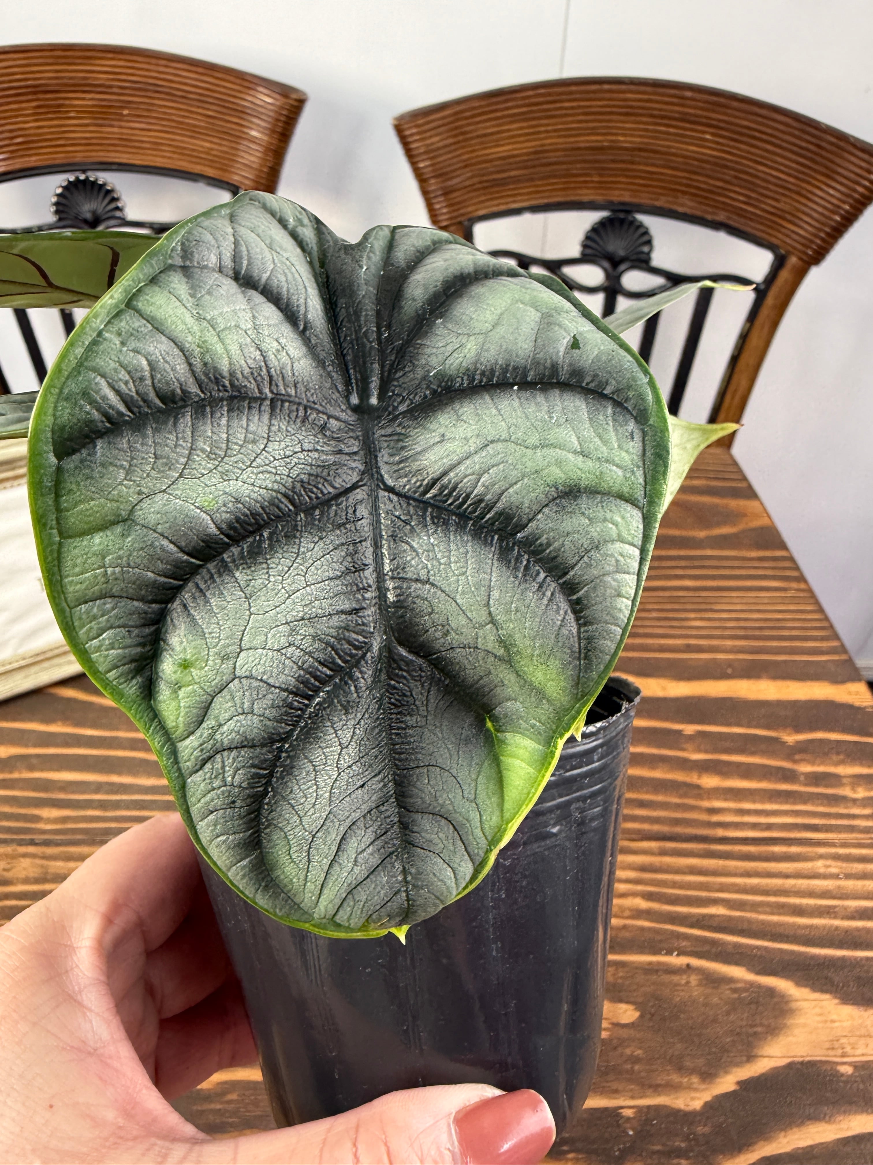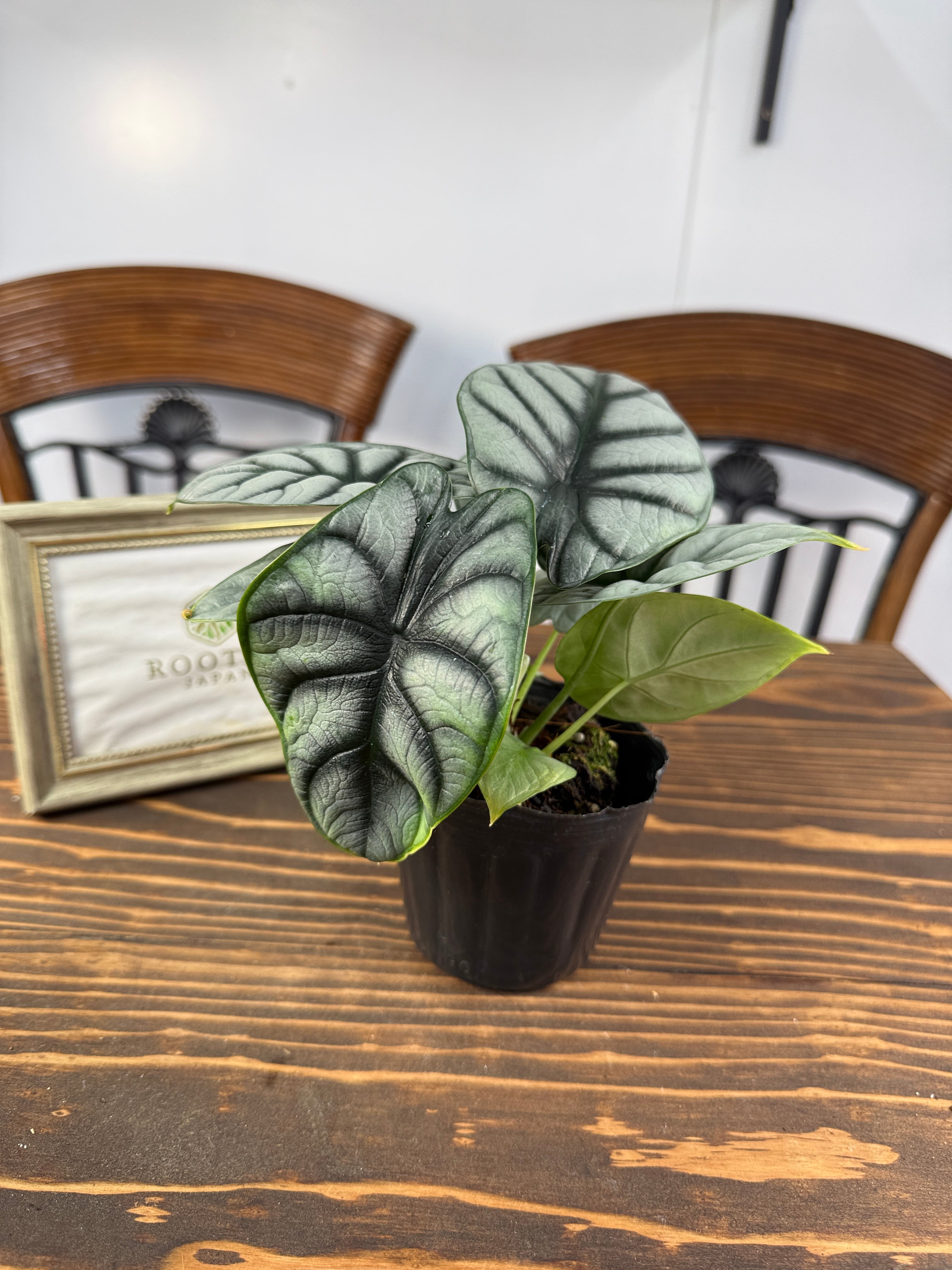 アロカシア シルバードラゴンの出荷時サイズ高さ10~15㎝です。成長に伴い、その美しさがますます際立ち、日々その姿を楽しむことができるでしょう。独自の葉の模様と色合いは、どんなインテリアスタイルとも調和しやすい魅力があります。