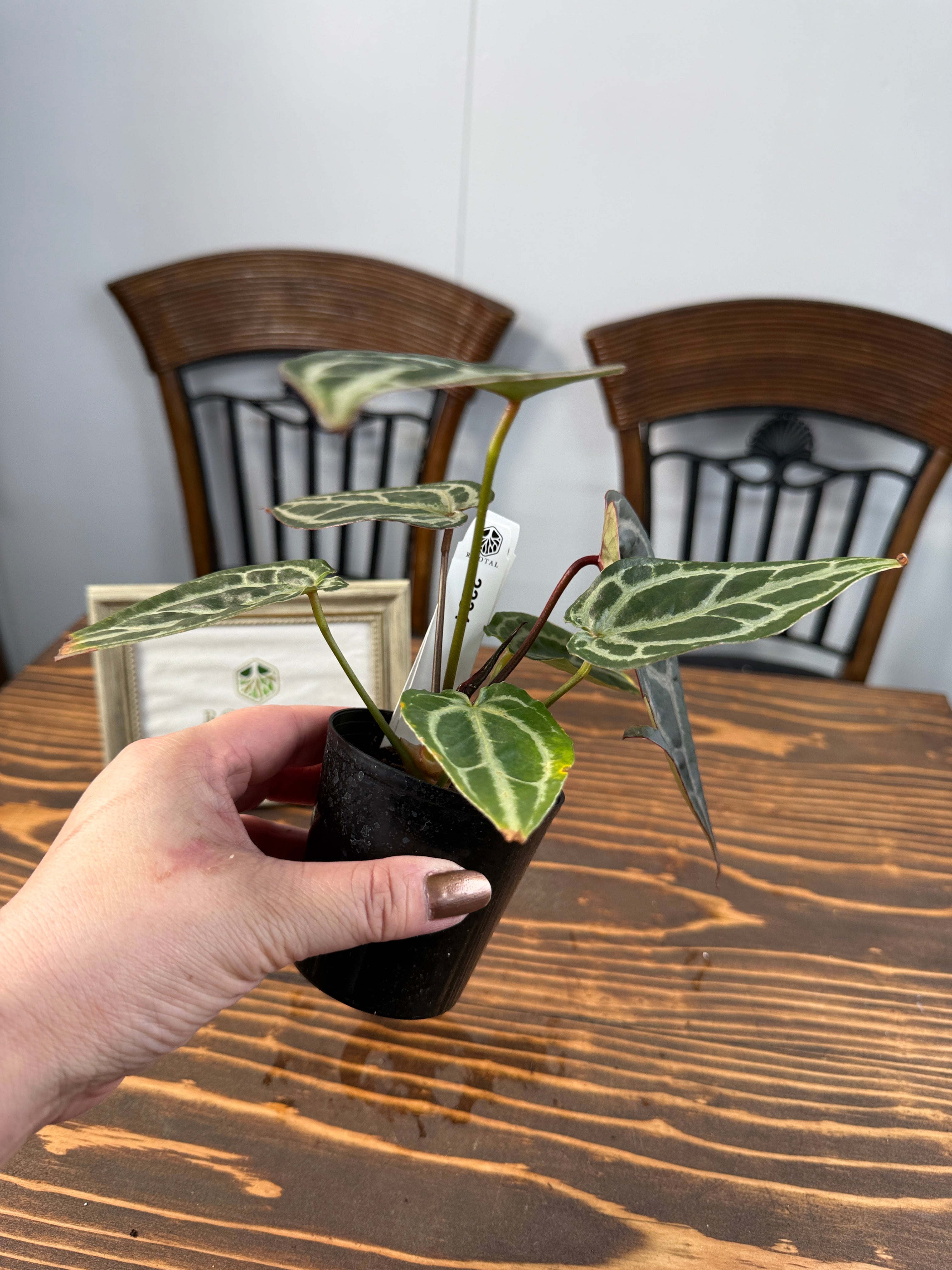 ★2234【艶紅の葉脈】アンスリウム レッドクリスタリナム♯2×♯1 (2.5号プラ鉢)