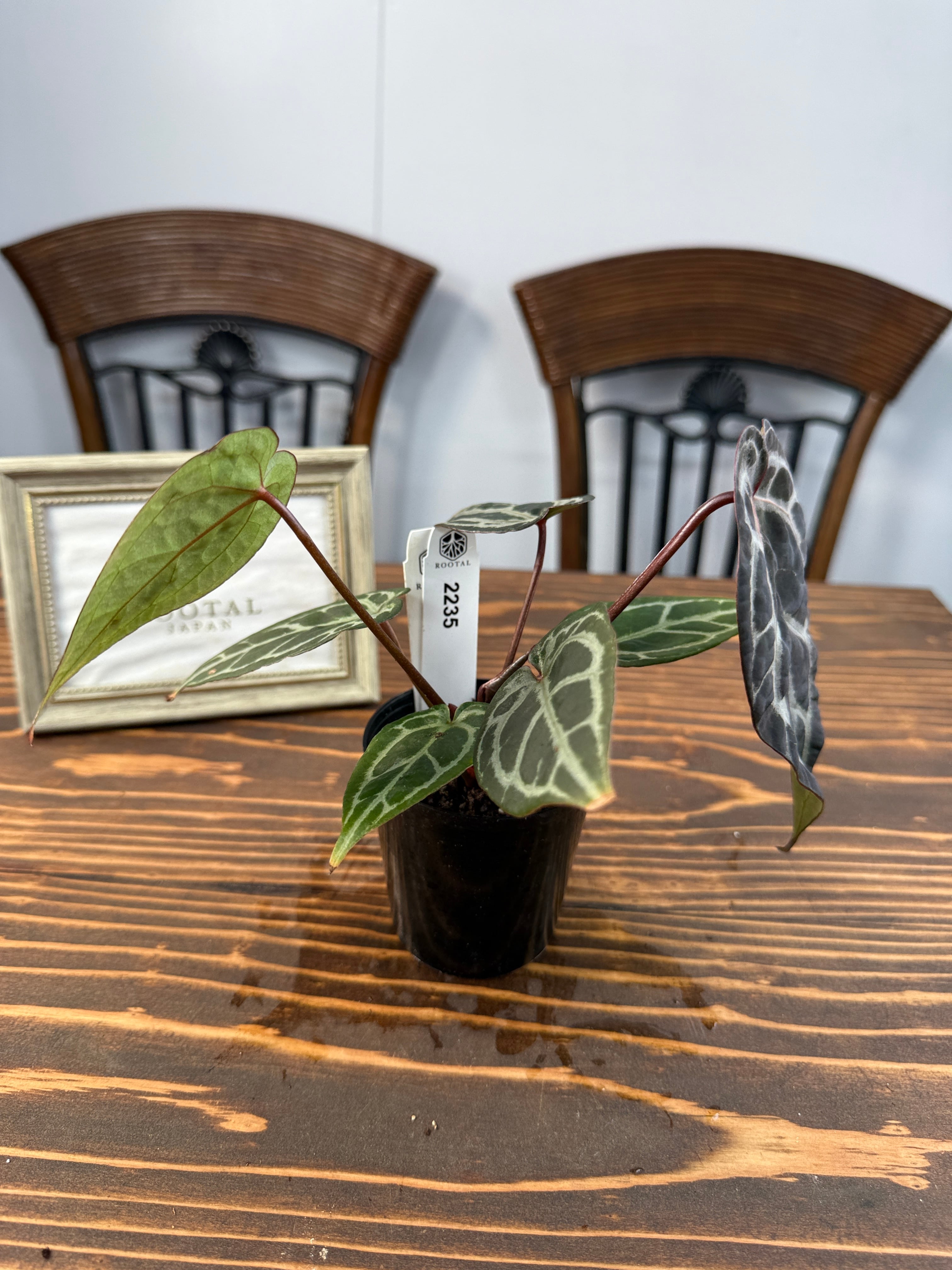 ★2235【艶紅の葉脈】アンスリウム レッドクリスタリナム♯2×♯1 (2.5号プラ鉢)