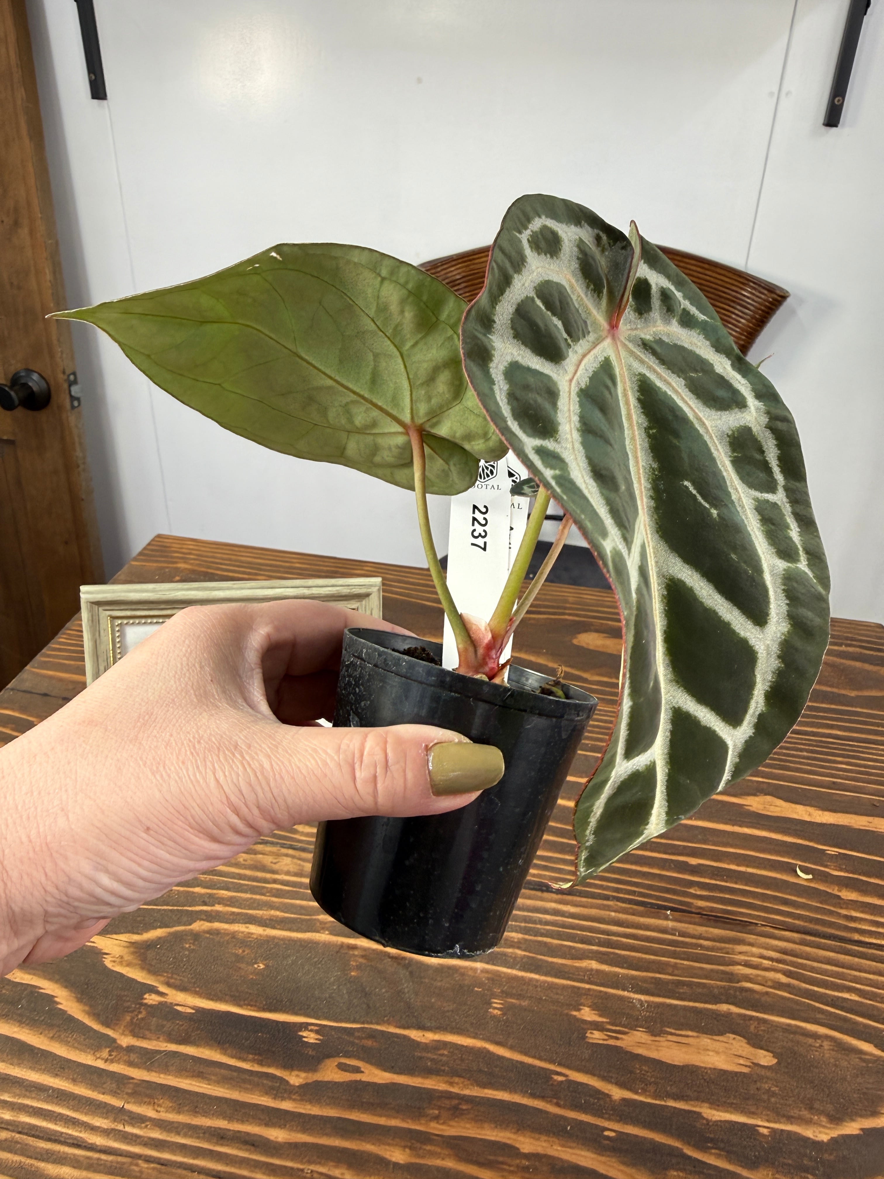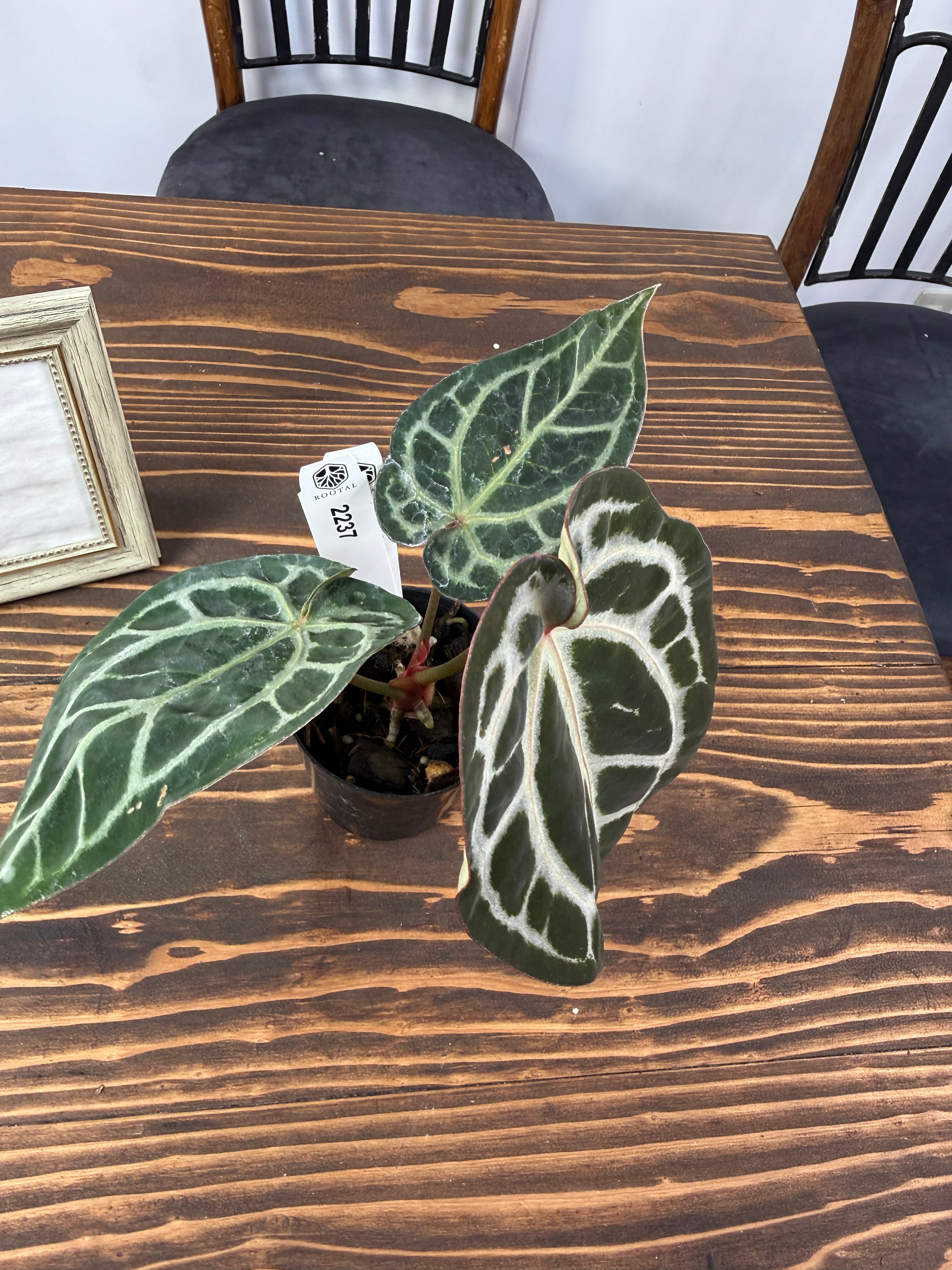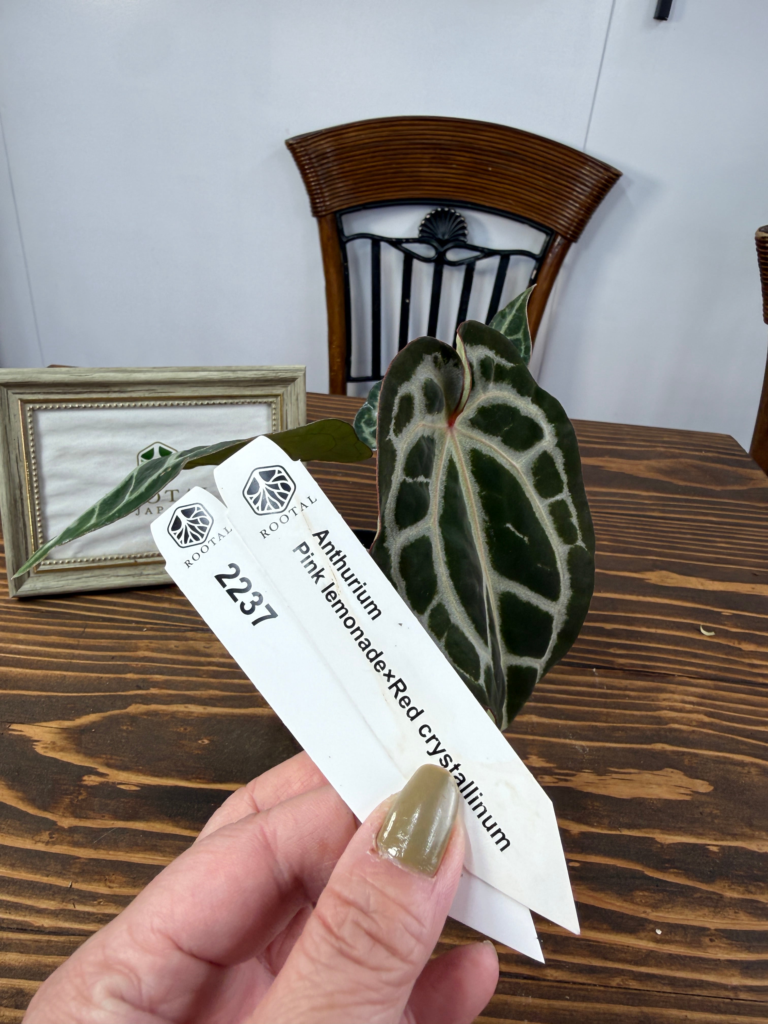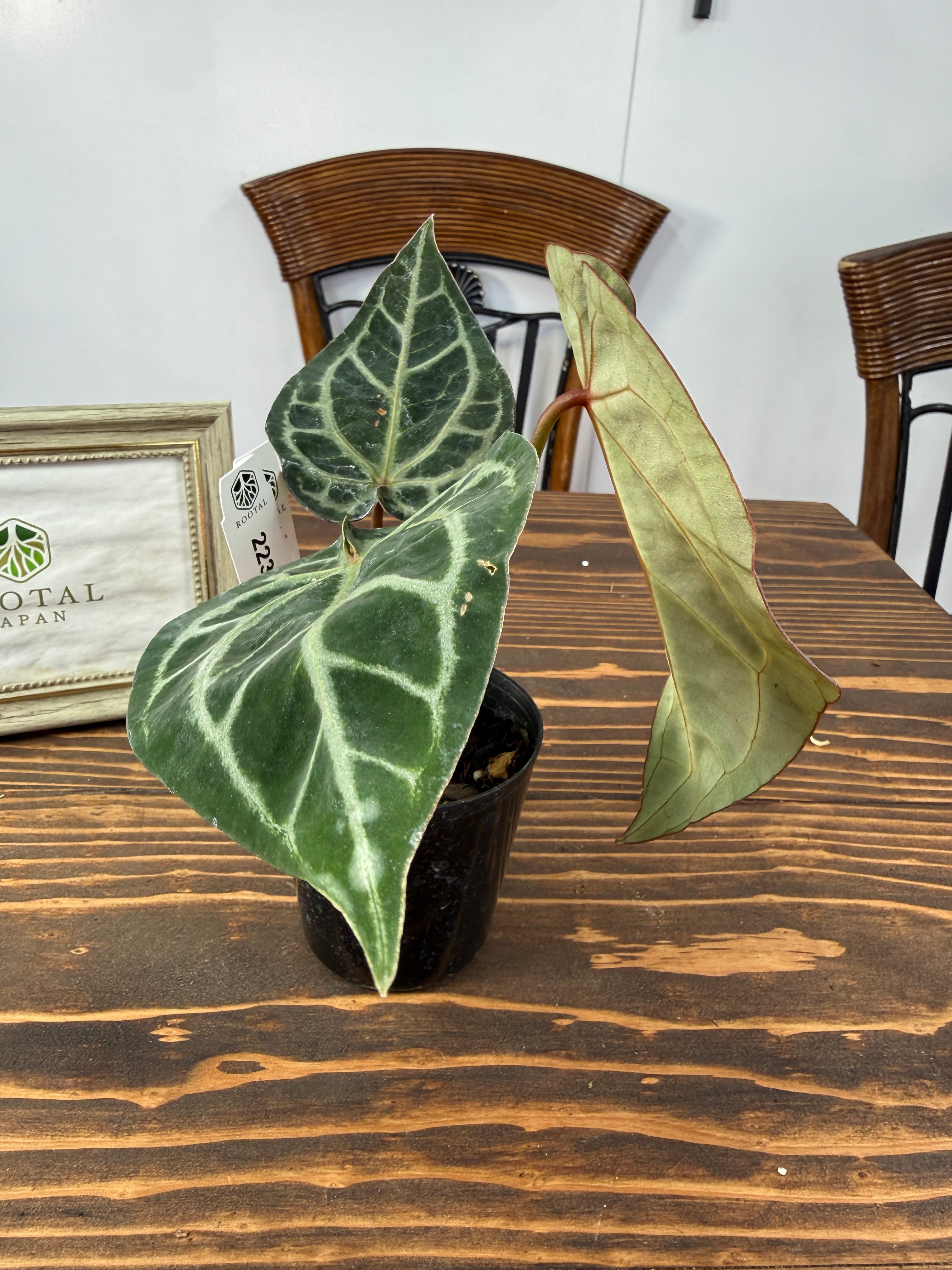 ★2237【赤脈ベルベット】アンスリウム ピンクレモネード×レッドクリスタリナム(2.5号プラ鉢)