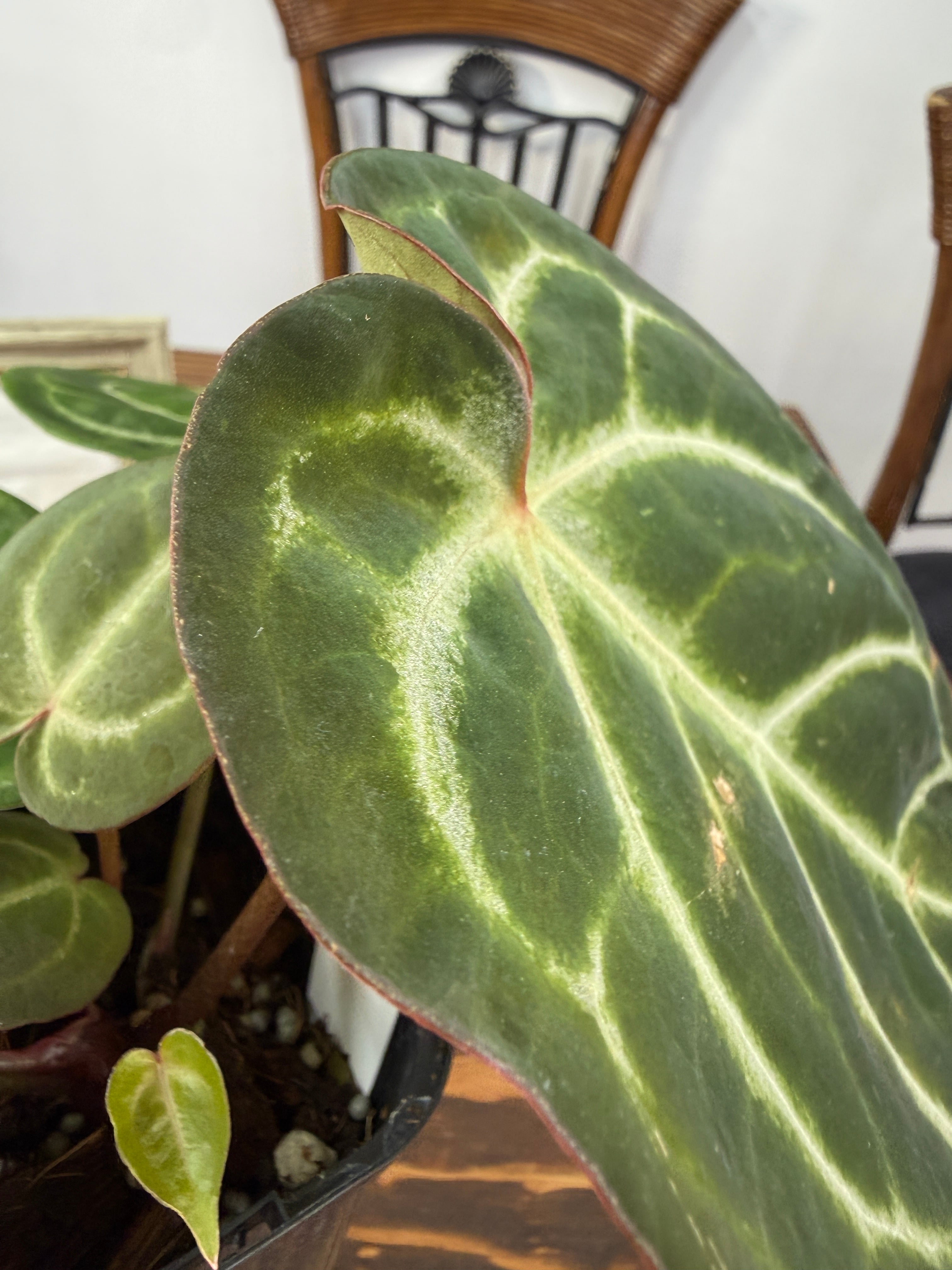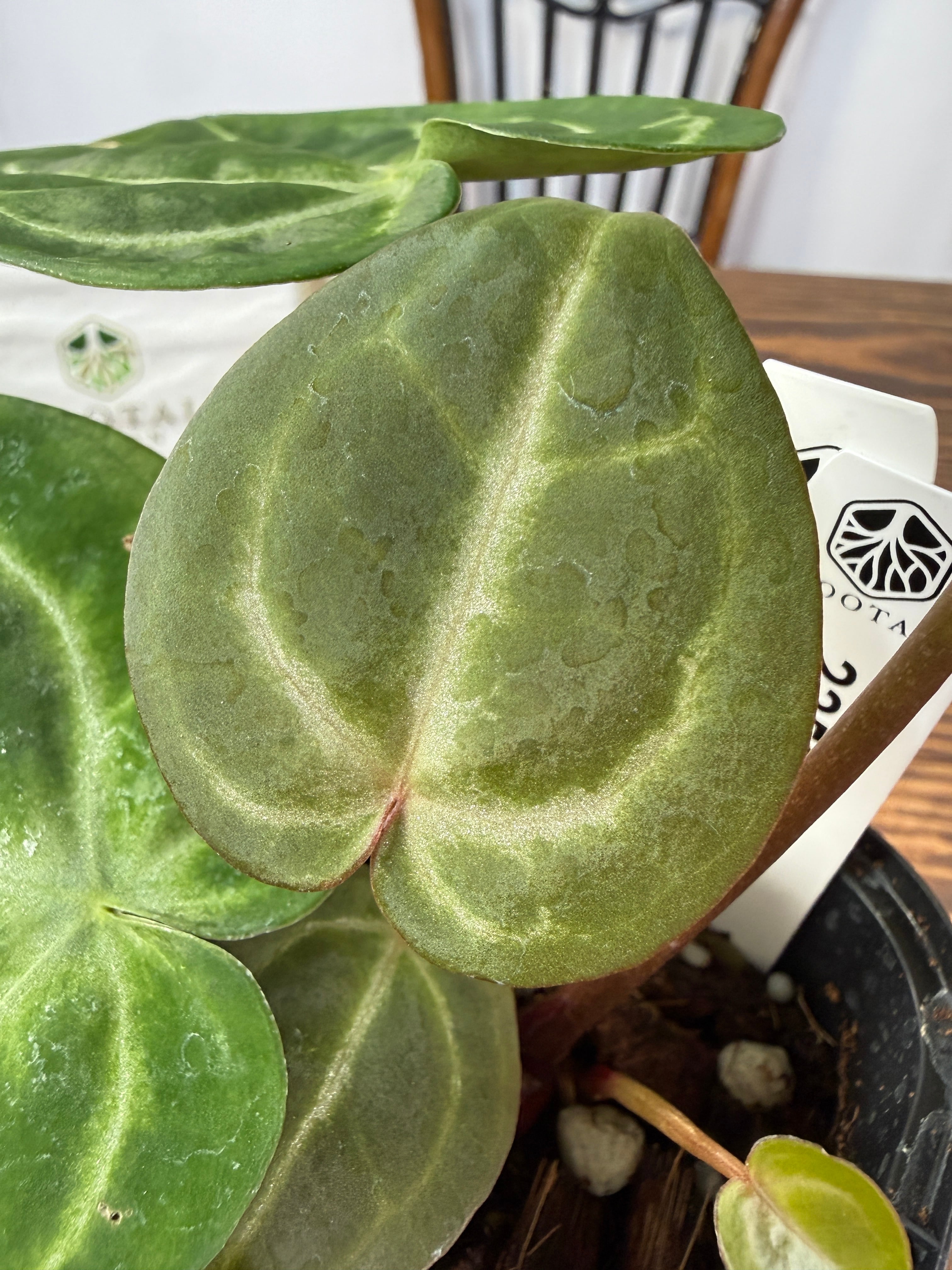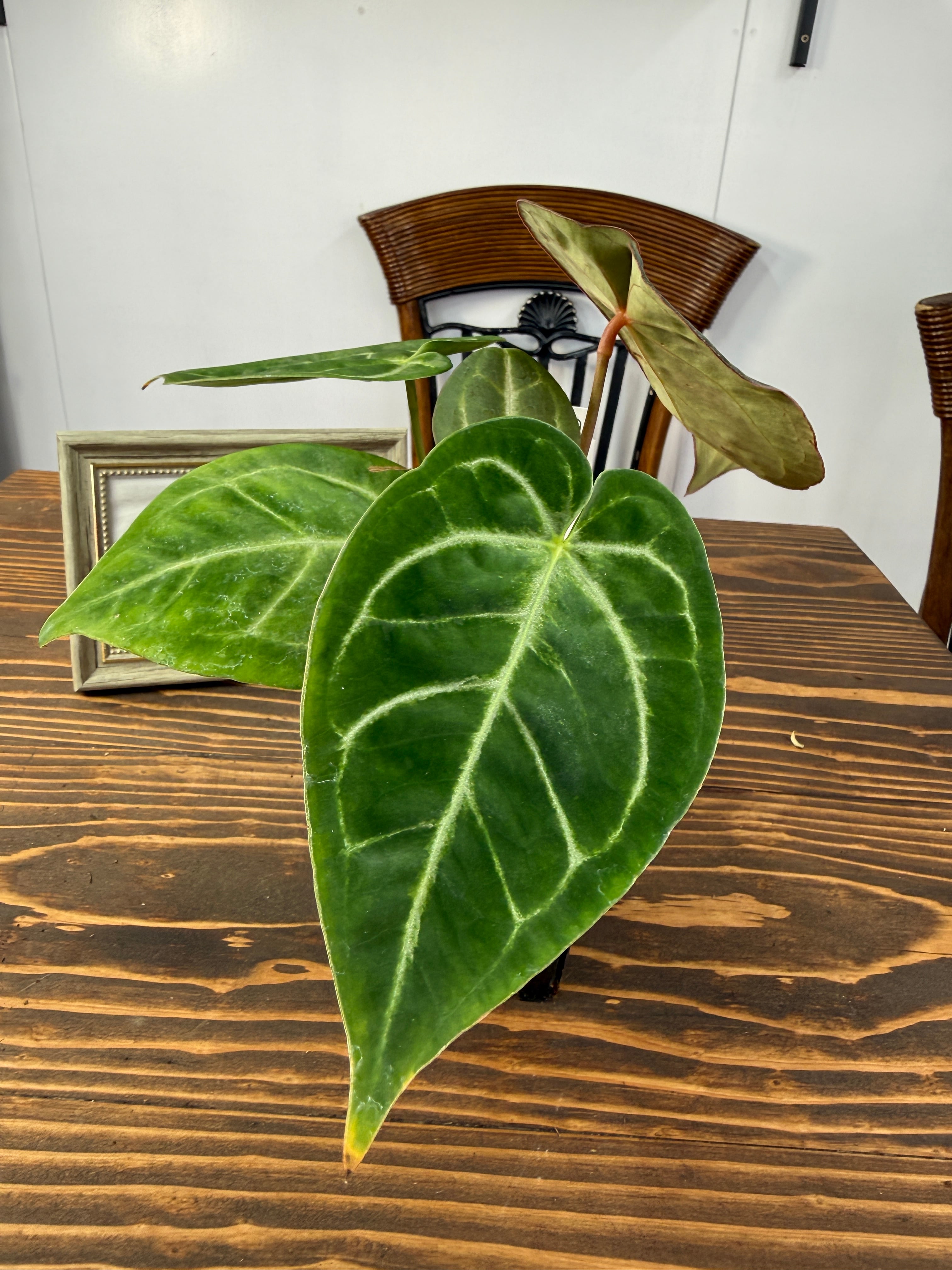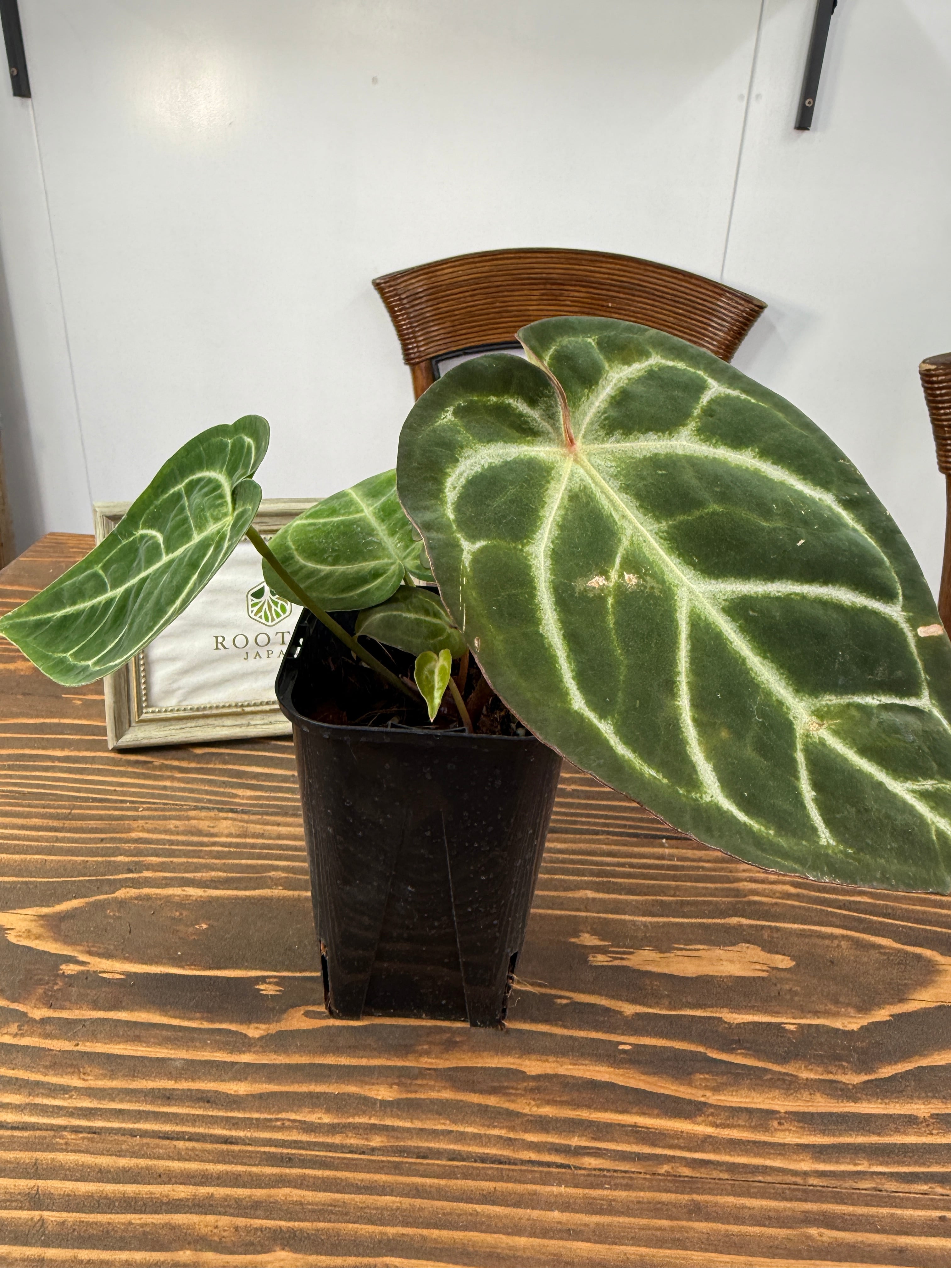 アンスリウム ドラヤキ×AOSの葉は、魅力的な色合いと優雅な形が特徴で、見た目にも楽しませてくれます。しっかりと根付いた健康的な個体をお届けいたします。