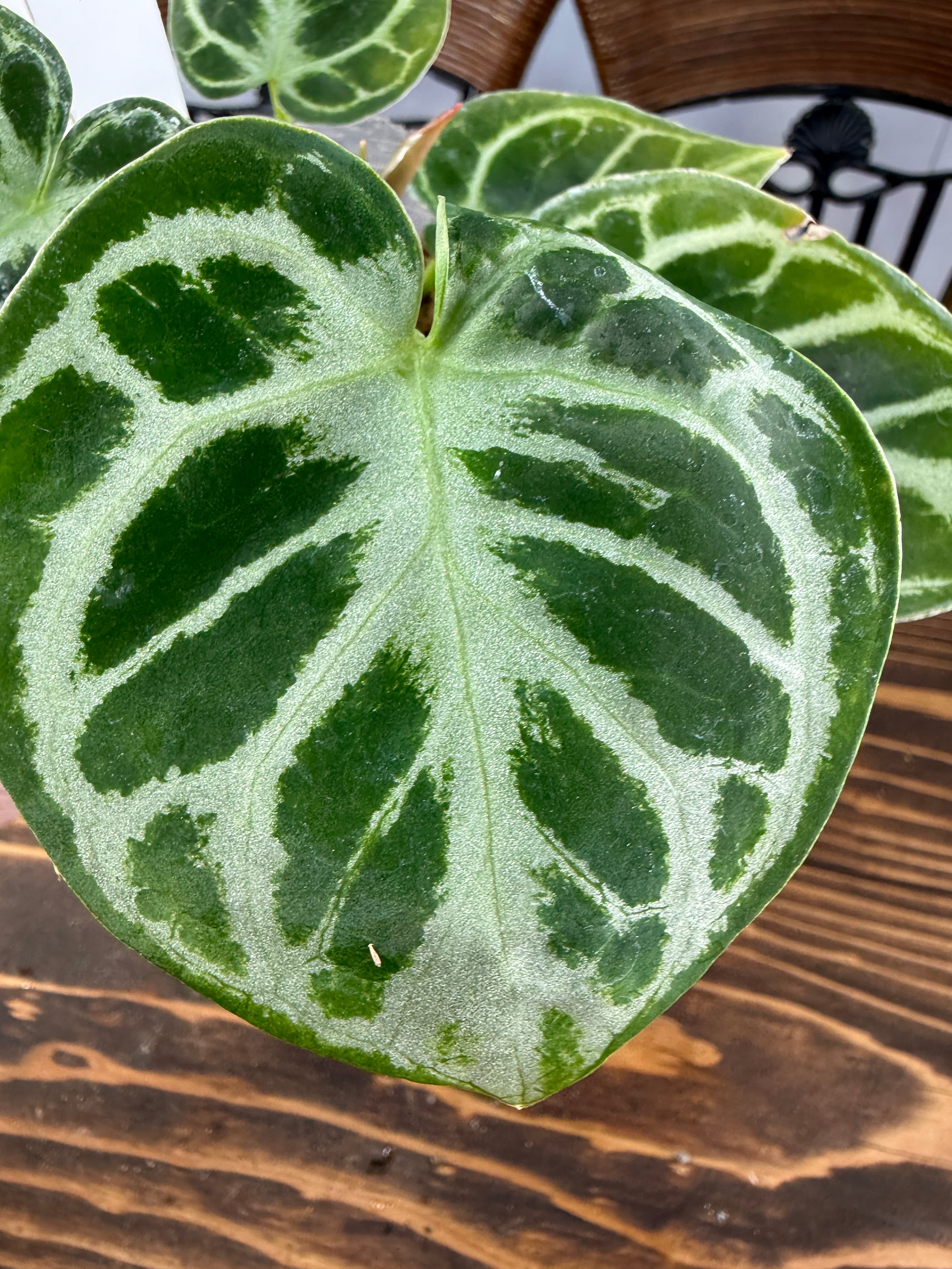 アンスリウム ドラヤキは、美しいキラキラとした葉と葉脈が特徴の観葉植物です。この素晴らしい一品は、インテリアに華やかさを添え、心を癒すリラックス空間を創出します!観葉植物を育てるのが初めての方にも手軽に楽しんでいただけます。