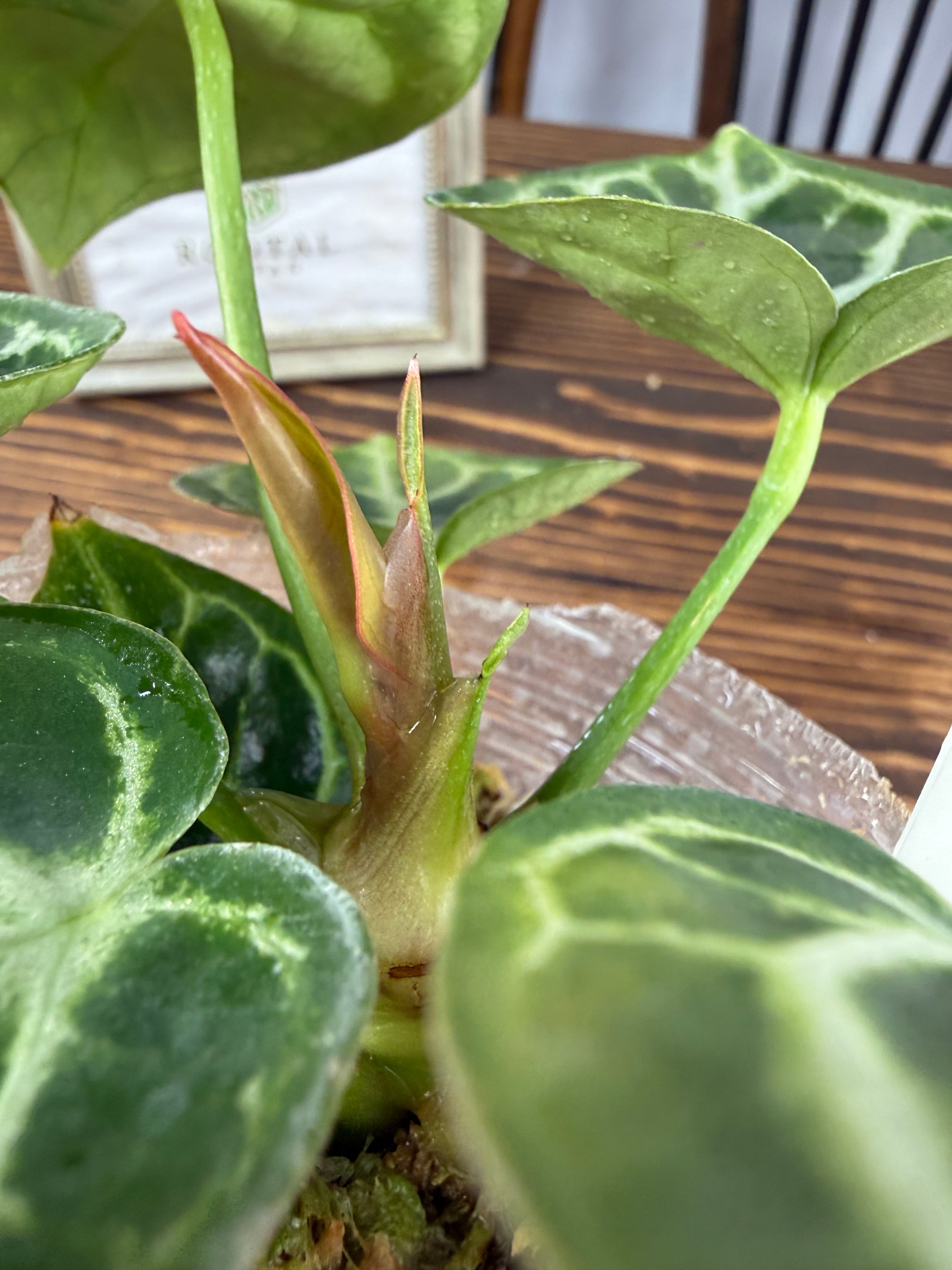 アンスリウム ドラヤキは、お届け時のサイズは約12㎝程度の苗で、全て丁寧に育てられた健康的な苗をご用意しております。