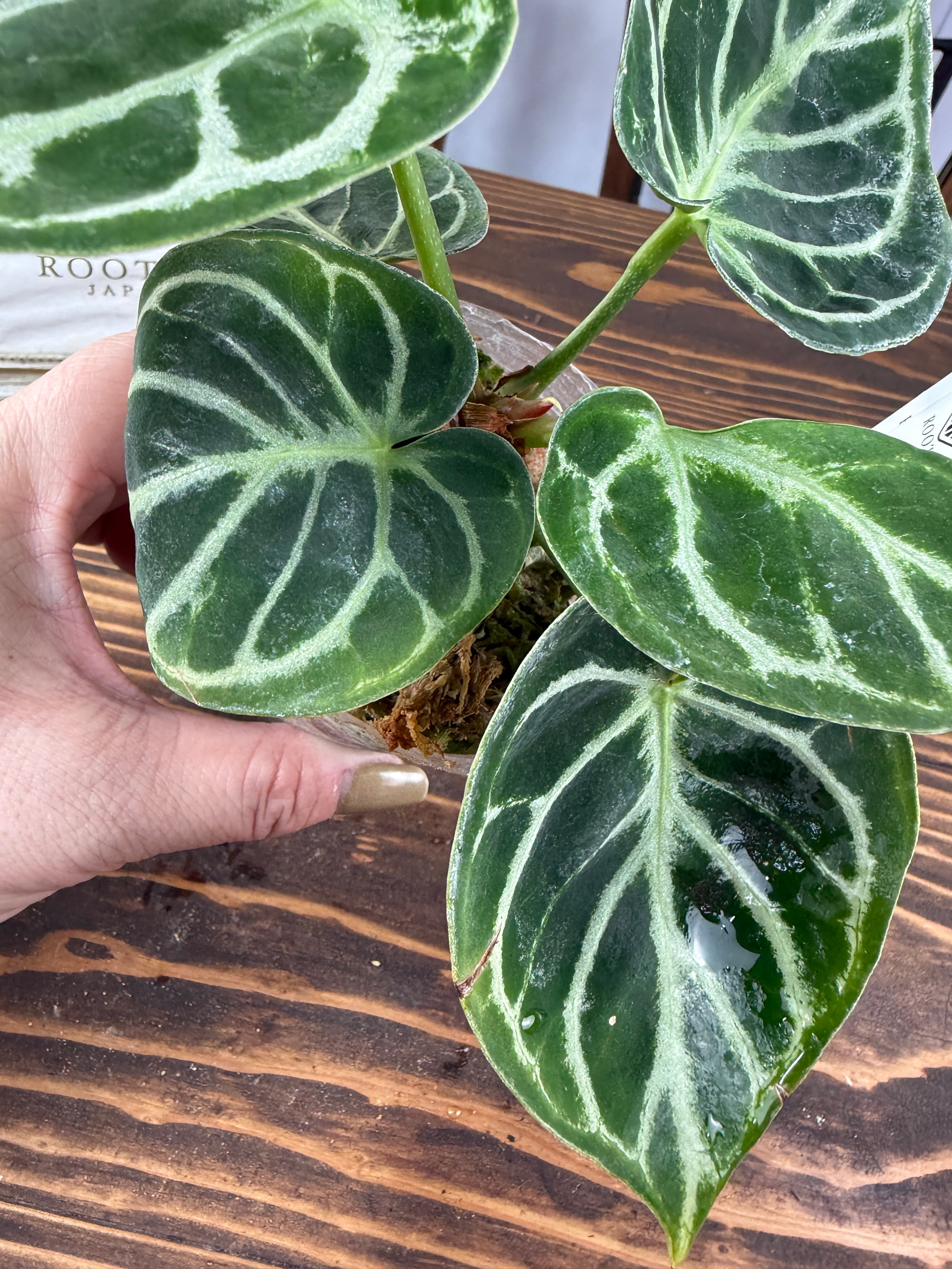 アンスリウム ドラヤキは、美しいキラキラとした葉と葉脈が特徴の観葉植物です。この素晴らしい一品は、インテリアに華やかさを添え、心を癒すリラックス空間を創出します!観葉植物を育てるのが初めての方にも手軽に楽しんでいただけます。