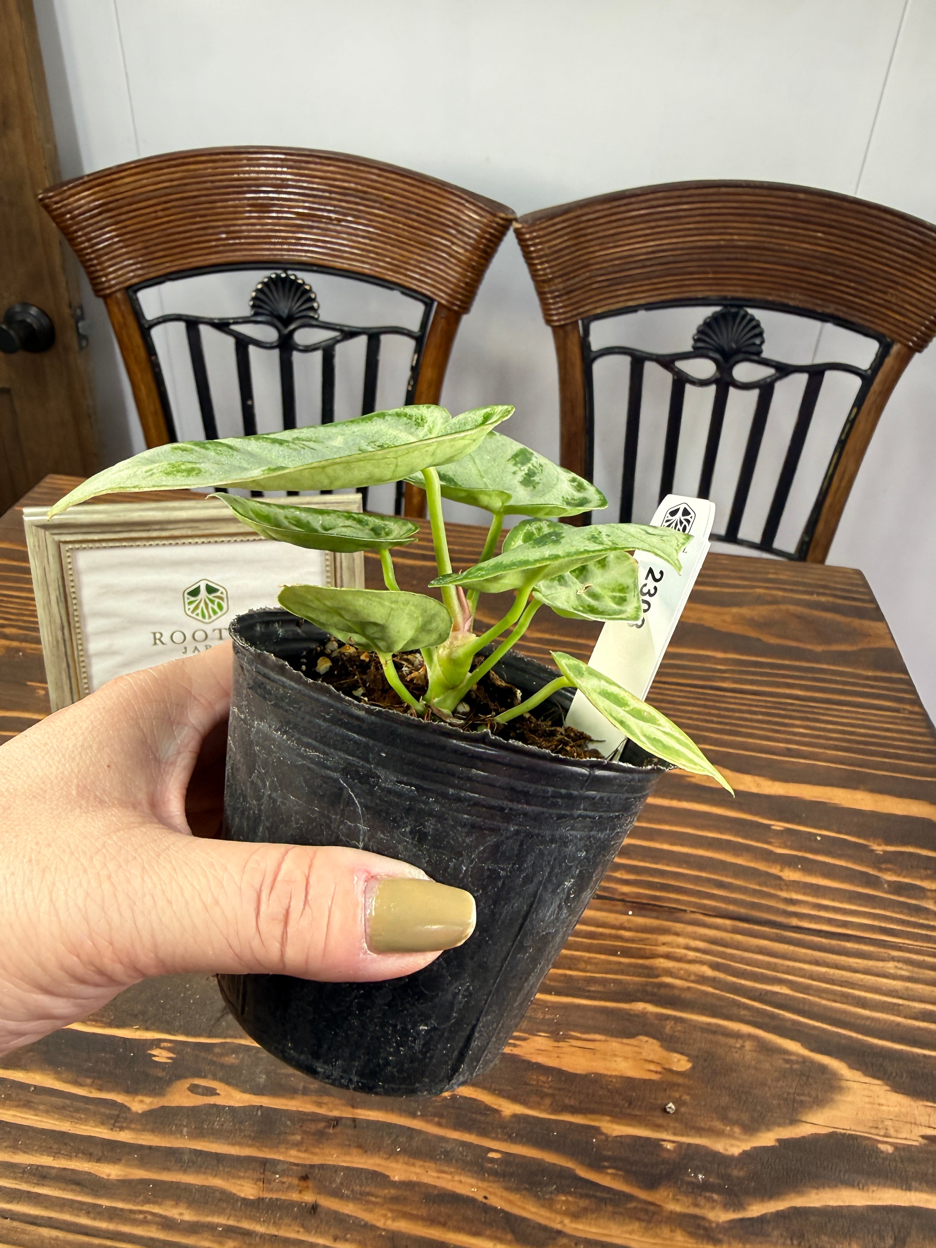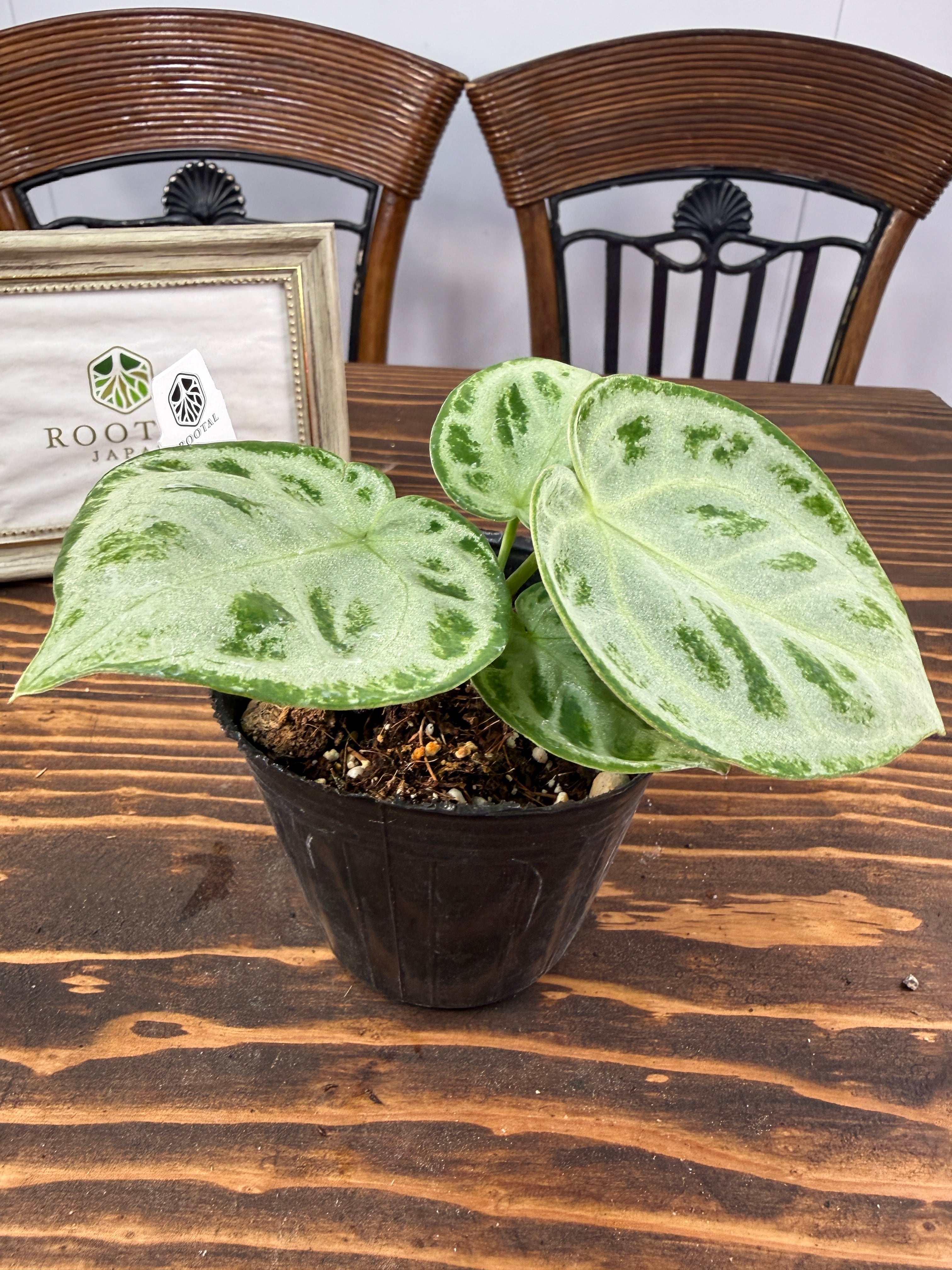 アンスリウム ドラヤキシルバーは、お届け時のサイズは約12㎝程度の苗で、全て丁寧に育てられた健康的な苗をご用意しております。