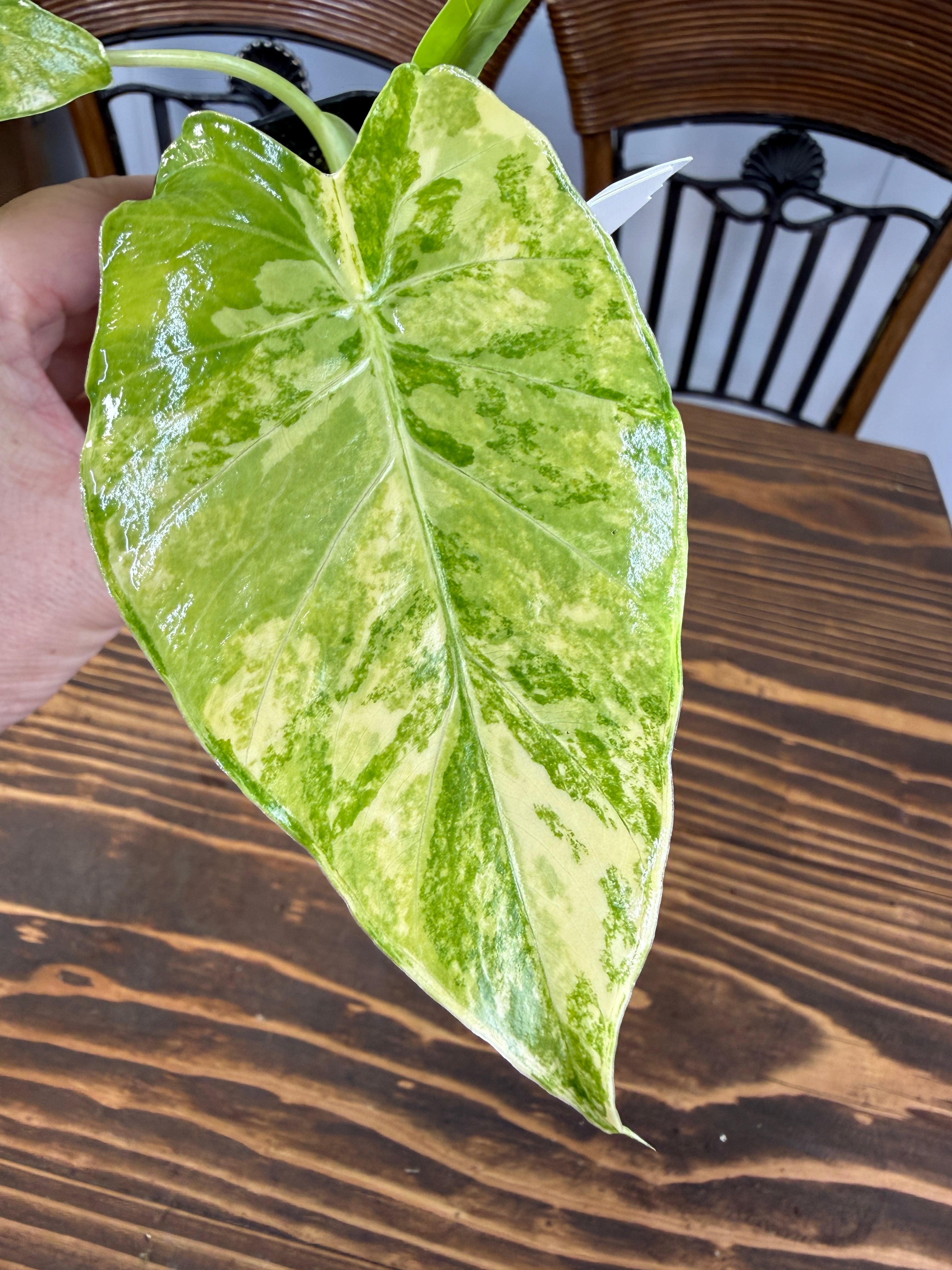 美しい斑模様が魅力のアロカシア ガゲアナオーレア バリエガータ!そのユニークな葉のデザインは、リビングやオフィス空間に自然な美しさを加えます。手入れが簡単なので、植物初心者にもぴったりなアイテムです!