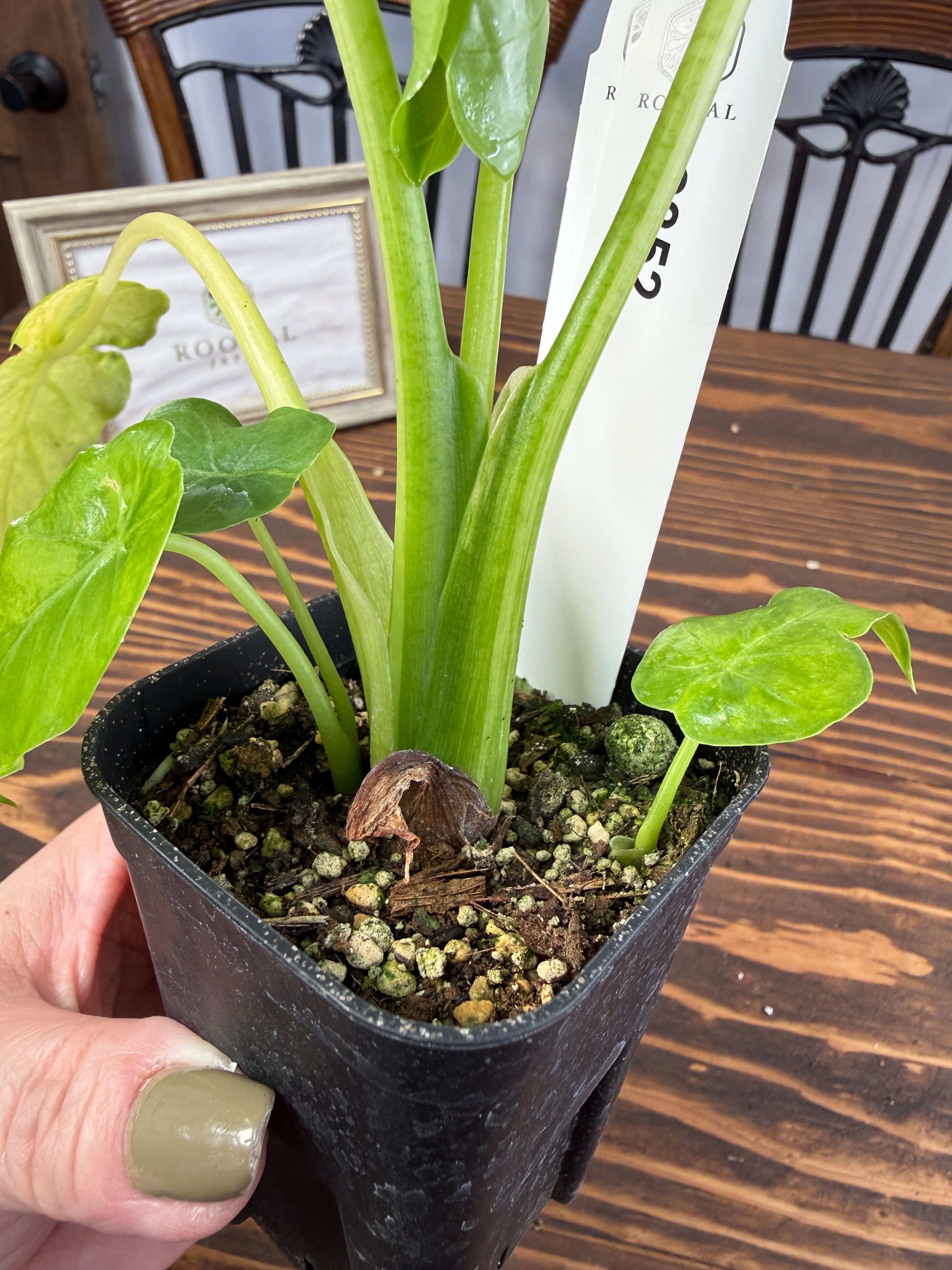 ★【個性的な葉】アロカシア ガゲアナオーレア バリエガータ(2.5号ロング硬質ポット)