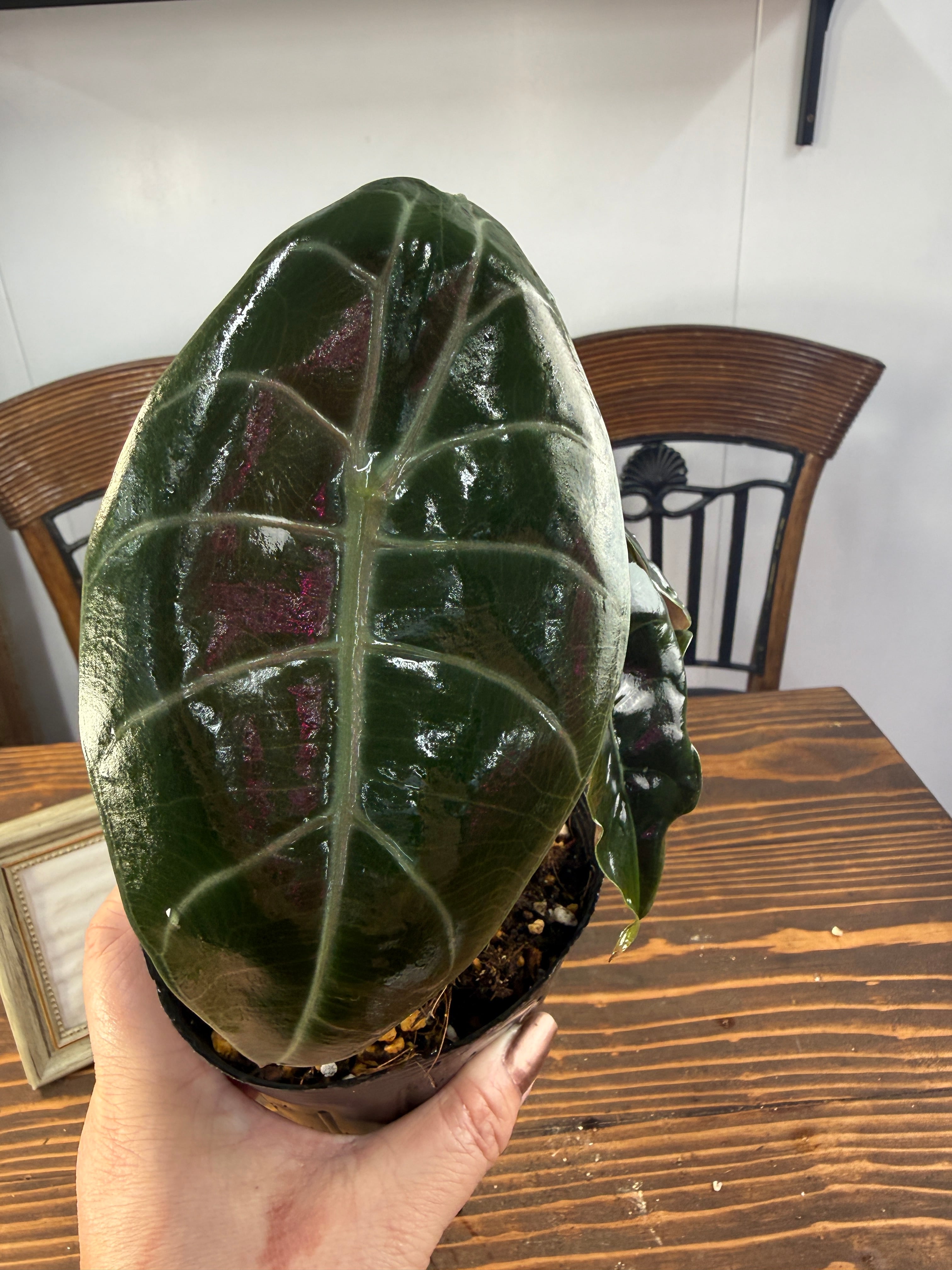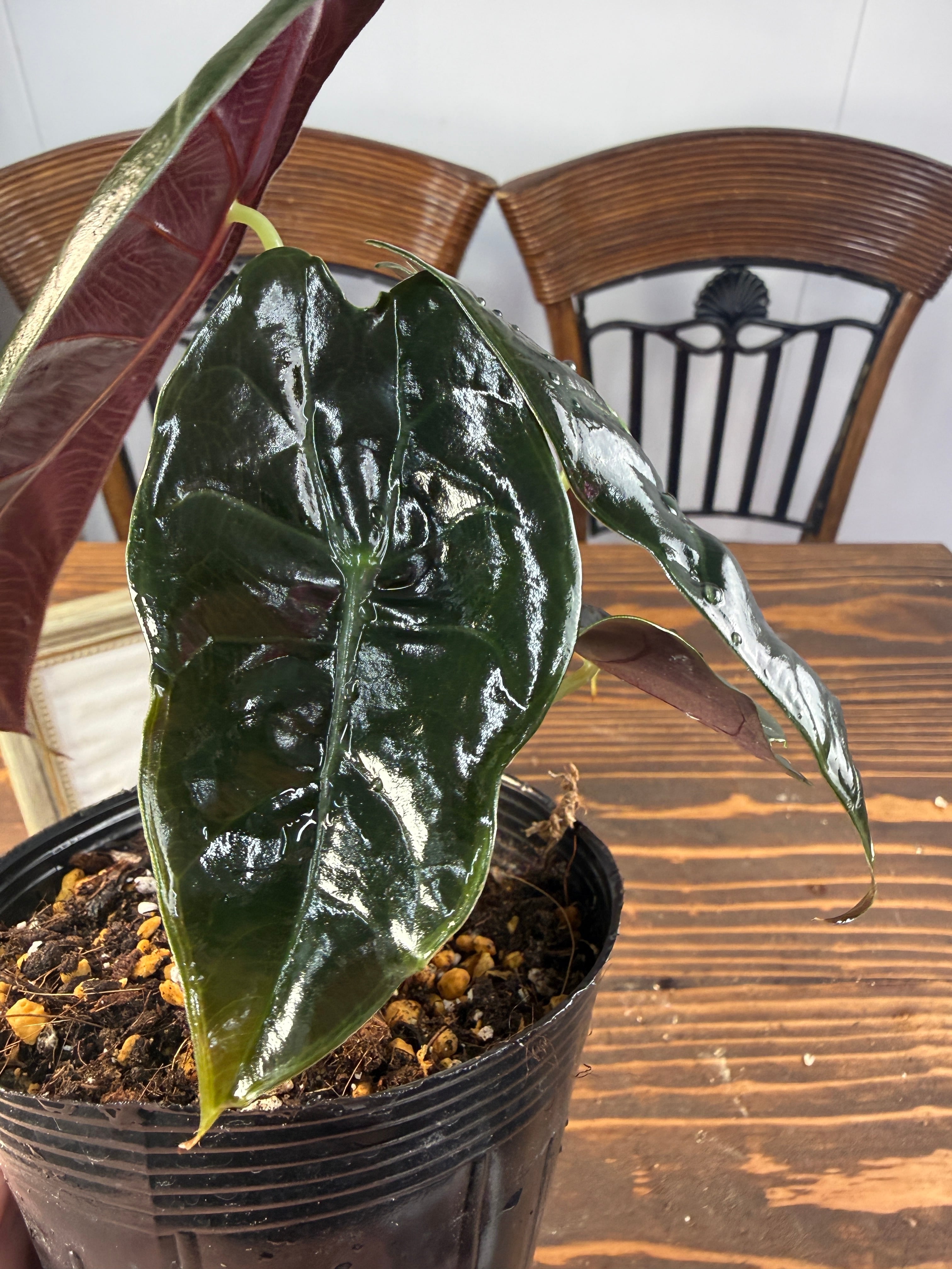 ★魅了される美しさの【渋く輝くハート型】アロカシア スーヒルマニアナ(3.5号ポット)