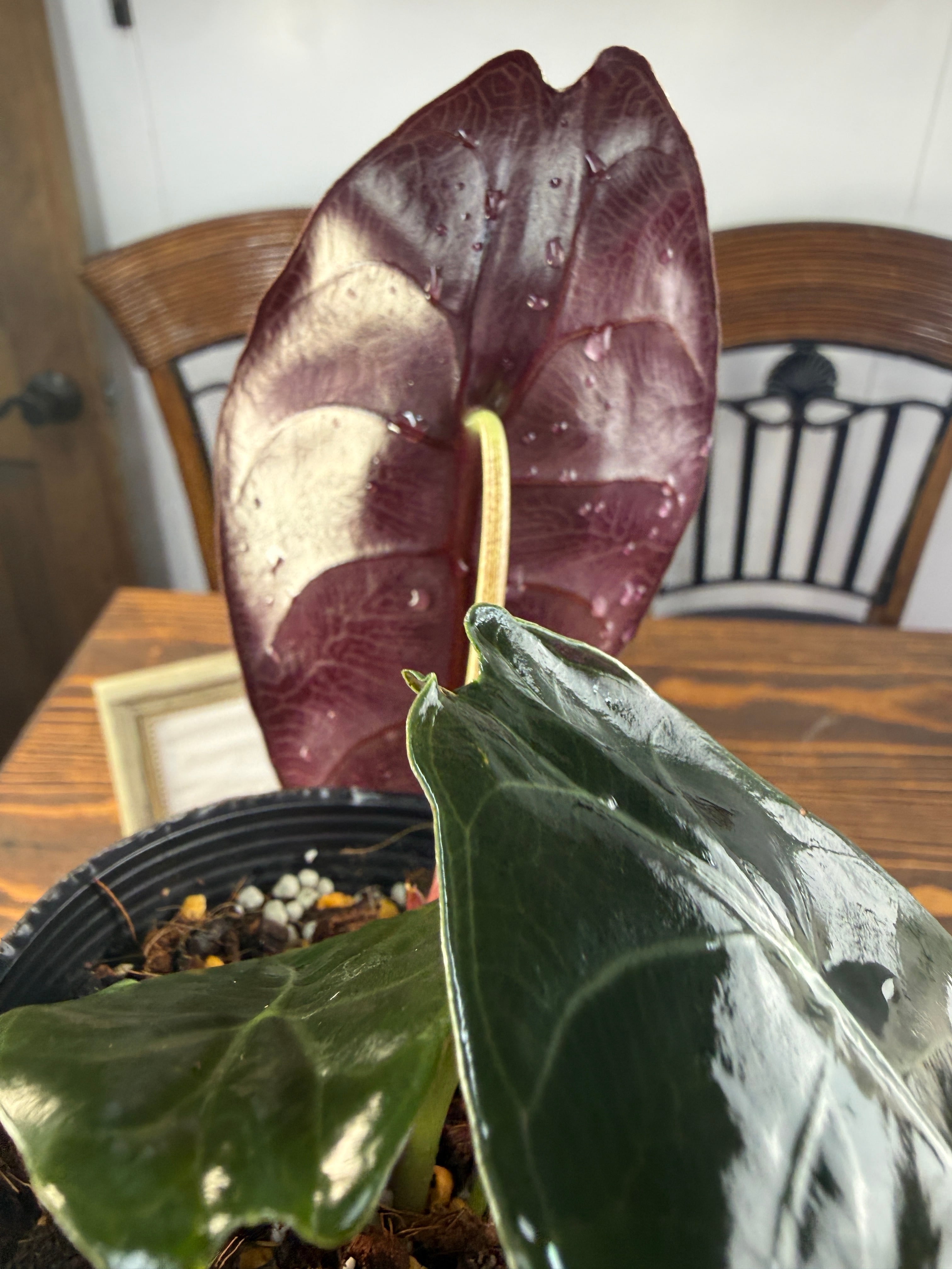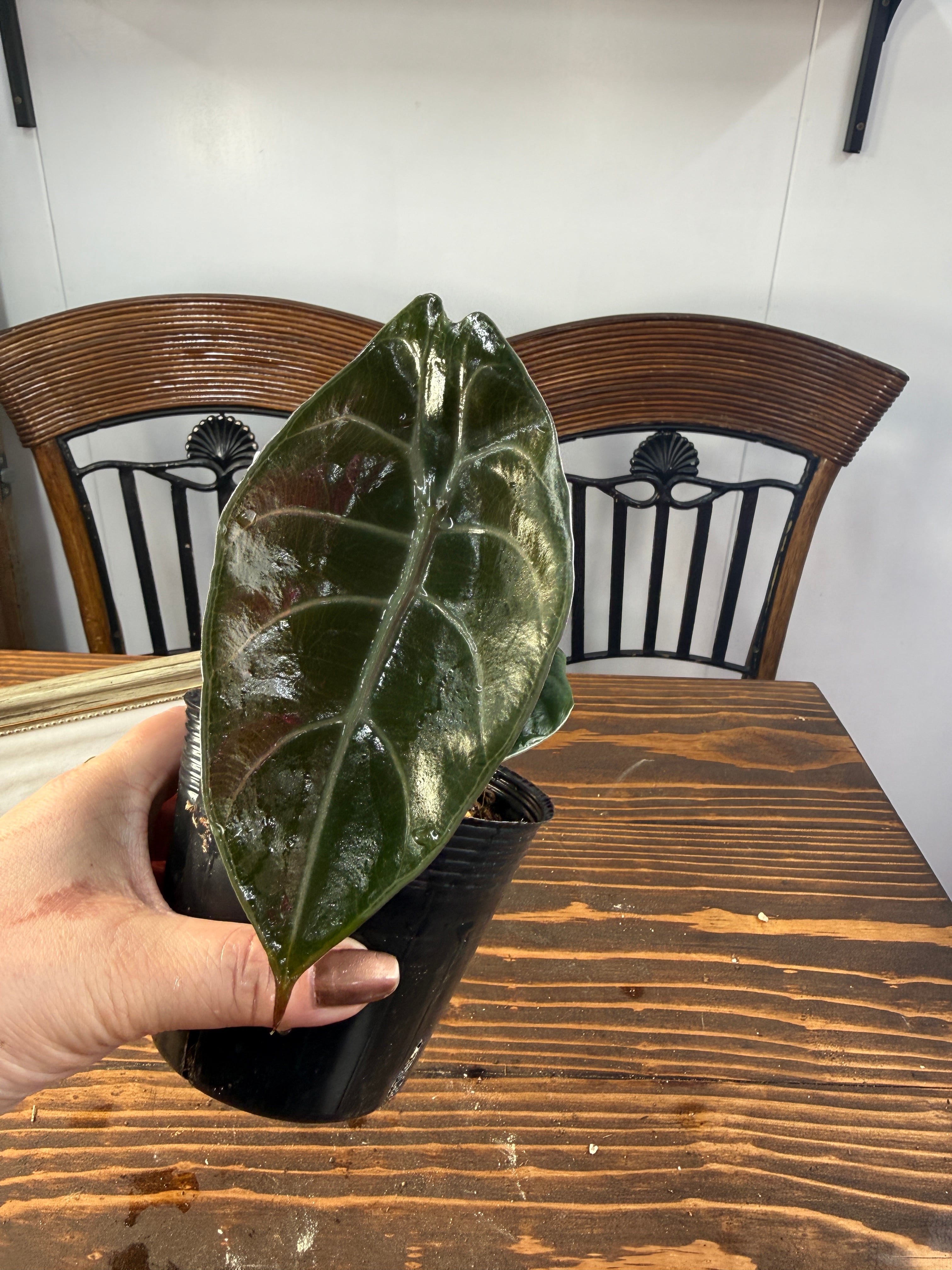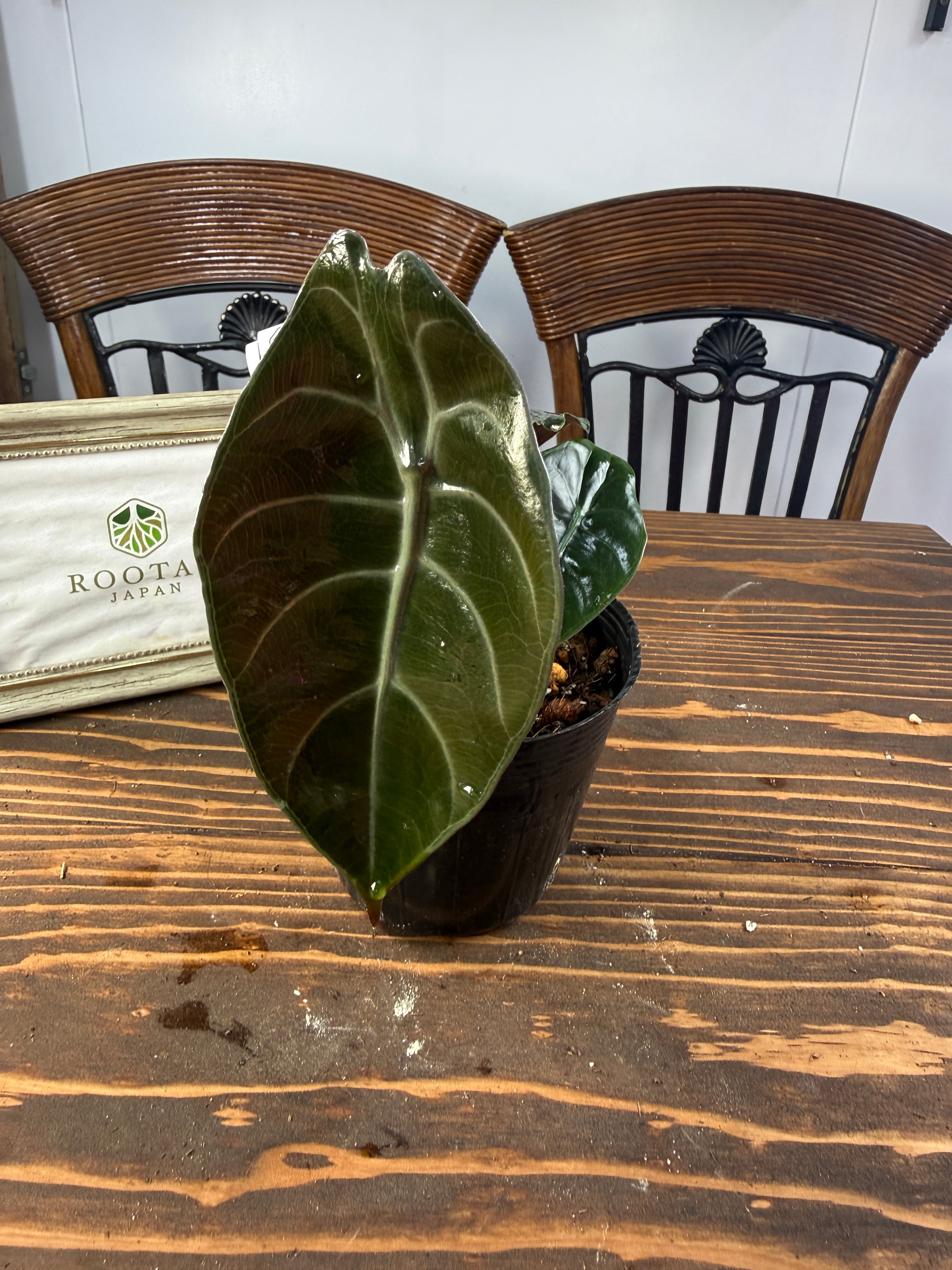 ★魅了される美しさの【渋く輝くハート型】アロカシア スーヒルマニアナ(3.5号ポット)
