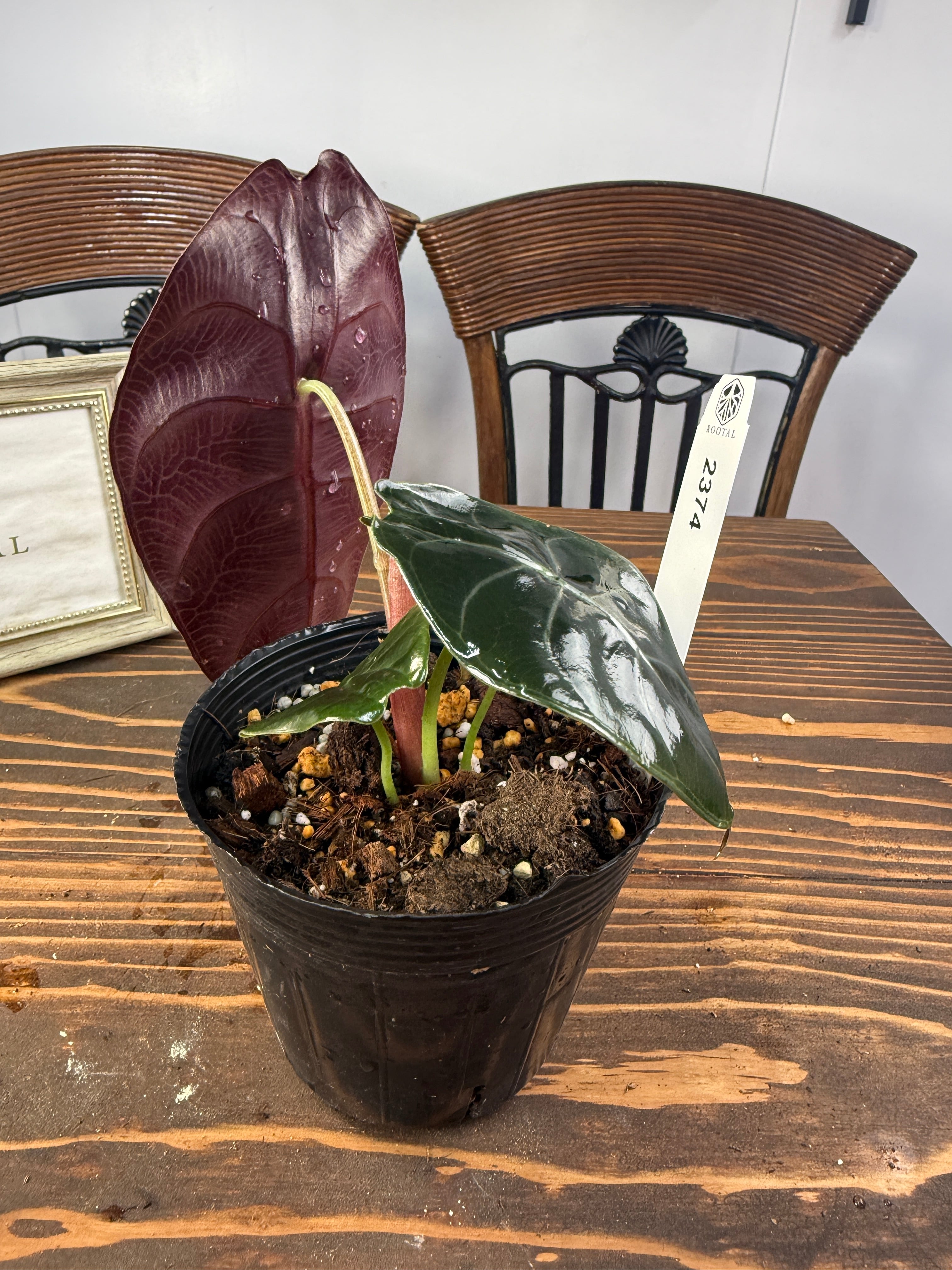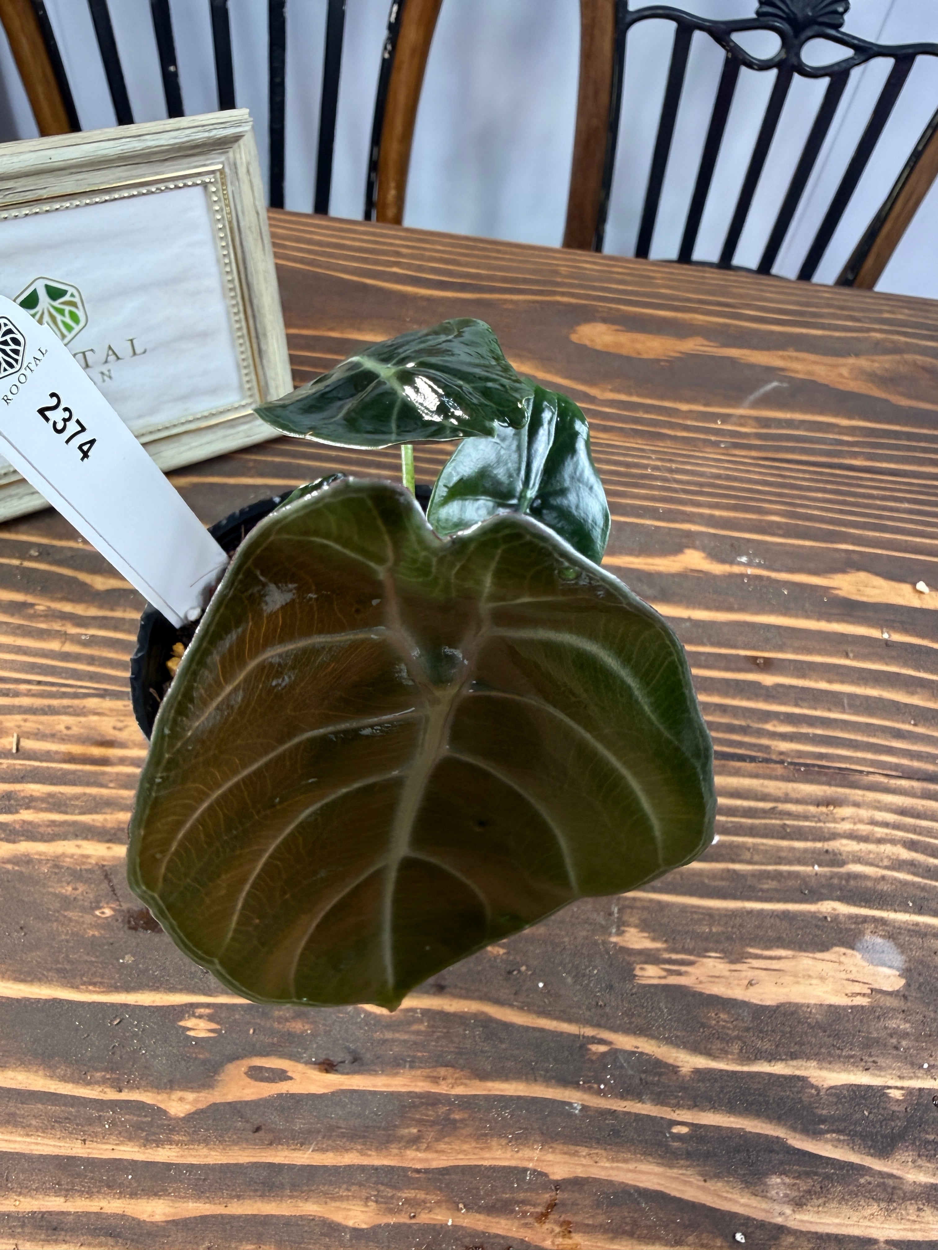 ★2374【渋く輝くハート型】アロカシア スーヒルマニアナ(3.5号ポット)