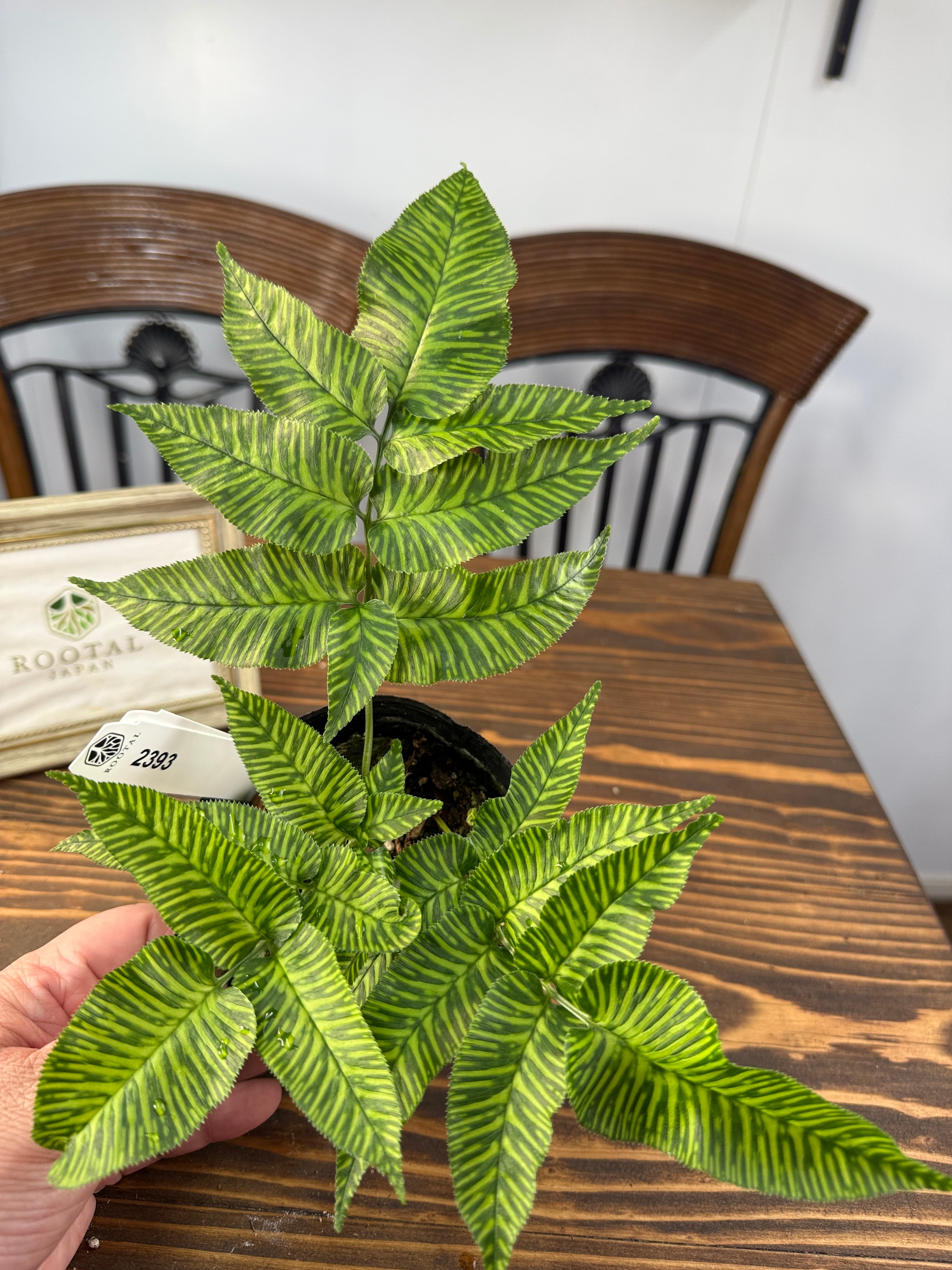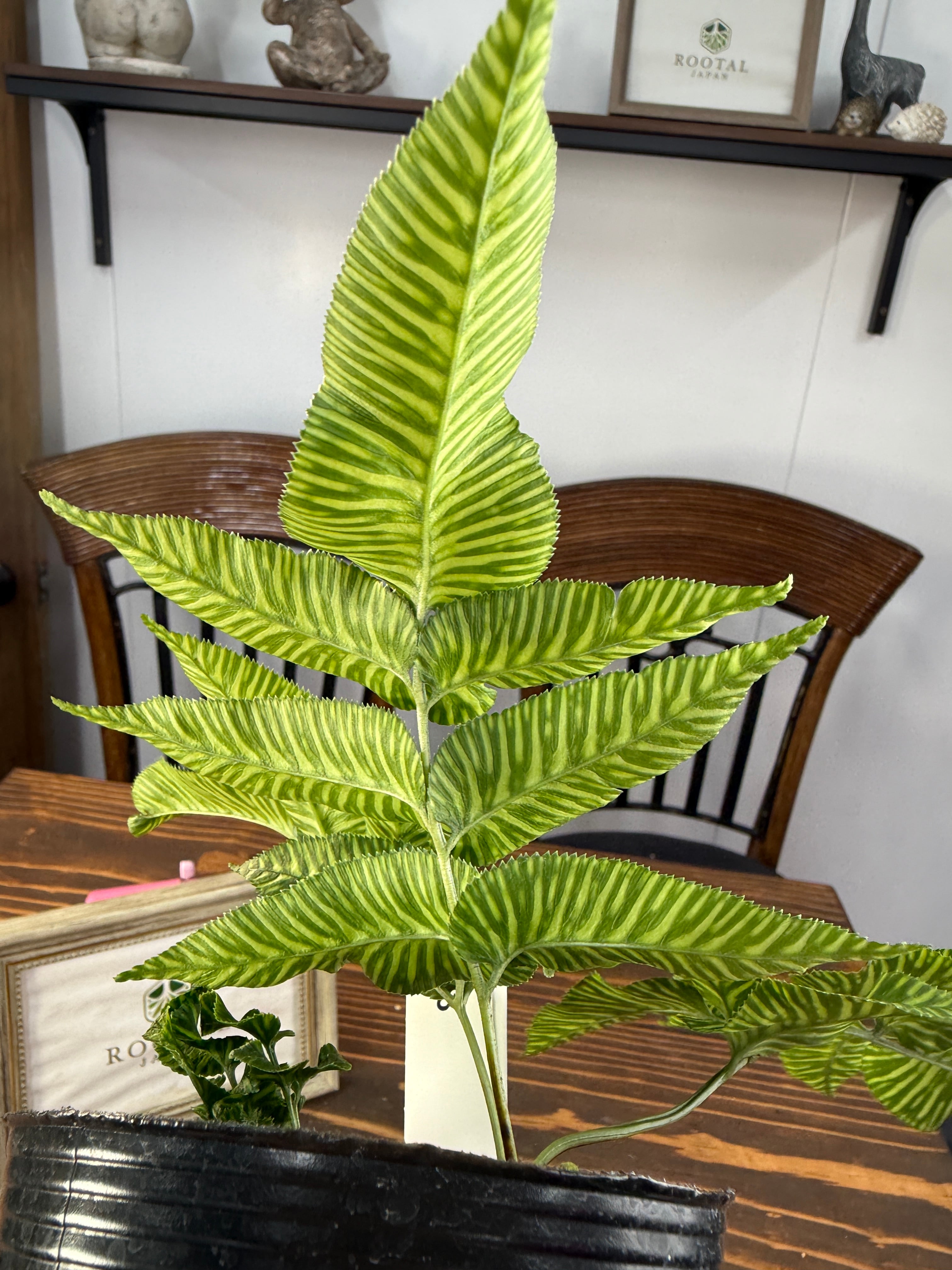 コニオグランメ エメイエンシスは、深い緑色の葉に繊細なギザギザが際立ち、まるで自然が創り出したアートのようです。サイズは3.5号ポットで、約15cm前後の健康な個体をお届けします。リビングやエントランスに置くことで、洗練された雰囲気を演出します。