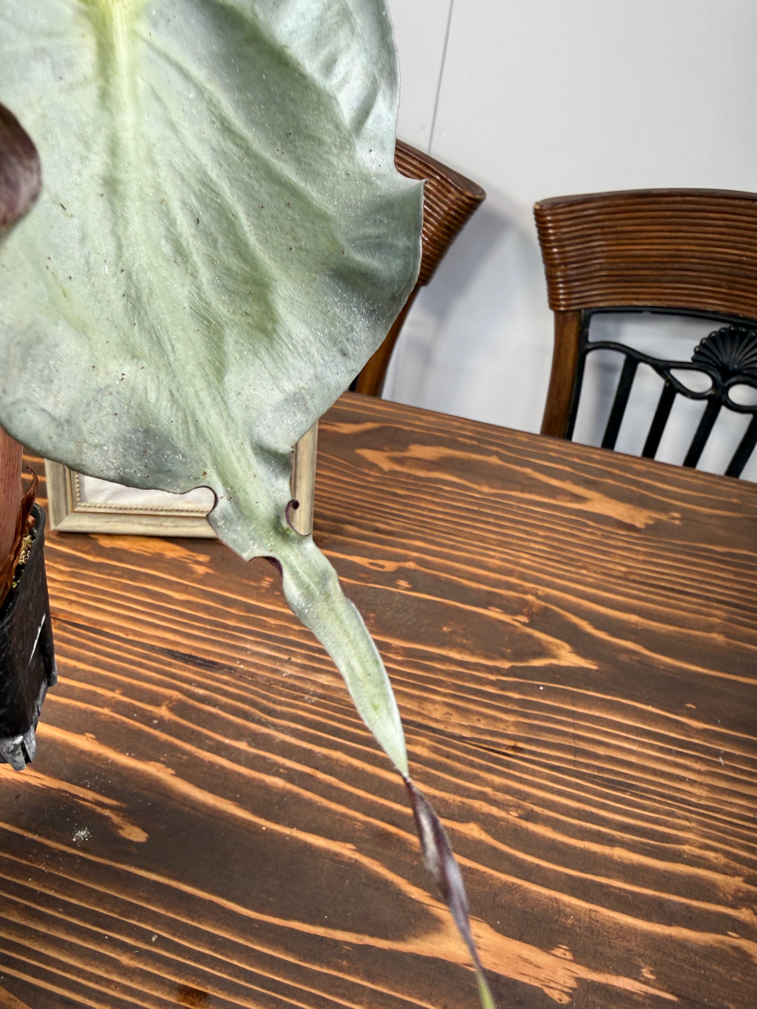 アロカシア ヴェノムは、そのユニークな葉の形状と美しい色彩が特徴の観葉植物です。この希少種は、お部屋に特別なアクセントを与え、見る人を魅了する存在です!明るい間接光で育てると、その美しさがさらに引き立ち、インテリアに華やかな雰囲気を添えます。