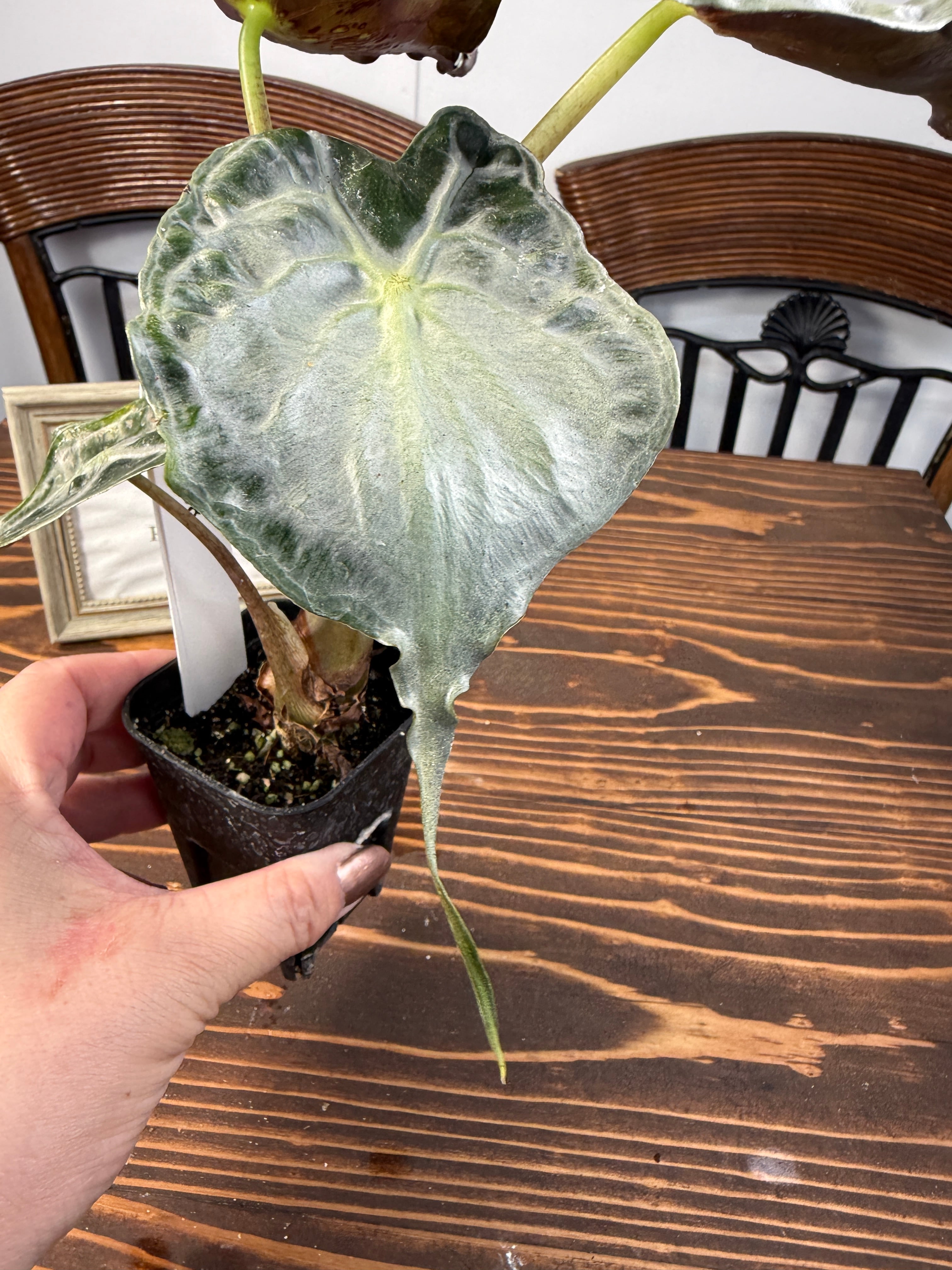 アロカシア ヴェノムは、そのユニークな葉の形状と美しい色彩が特徴の観葉植物です。この希少種は、お部屋に特別なアクセントを与え、見る人を魅了する存在です!明るい間接光で育てると、その美しさがさらに引き立ち、インテリアに華やかな雰囲気を添えます。