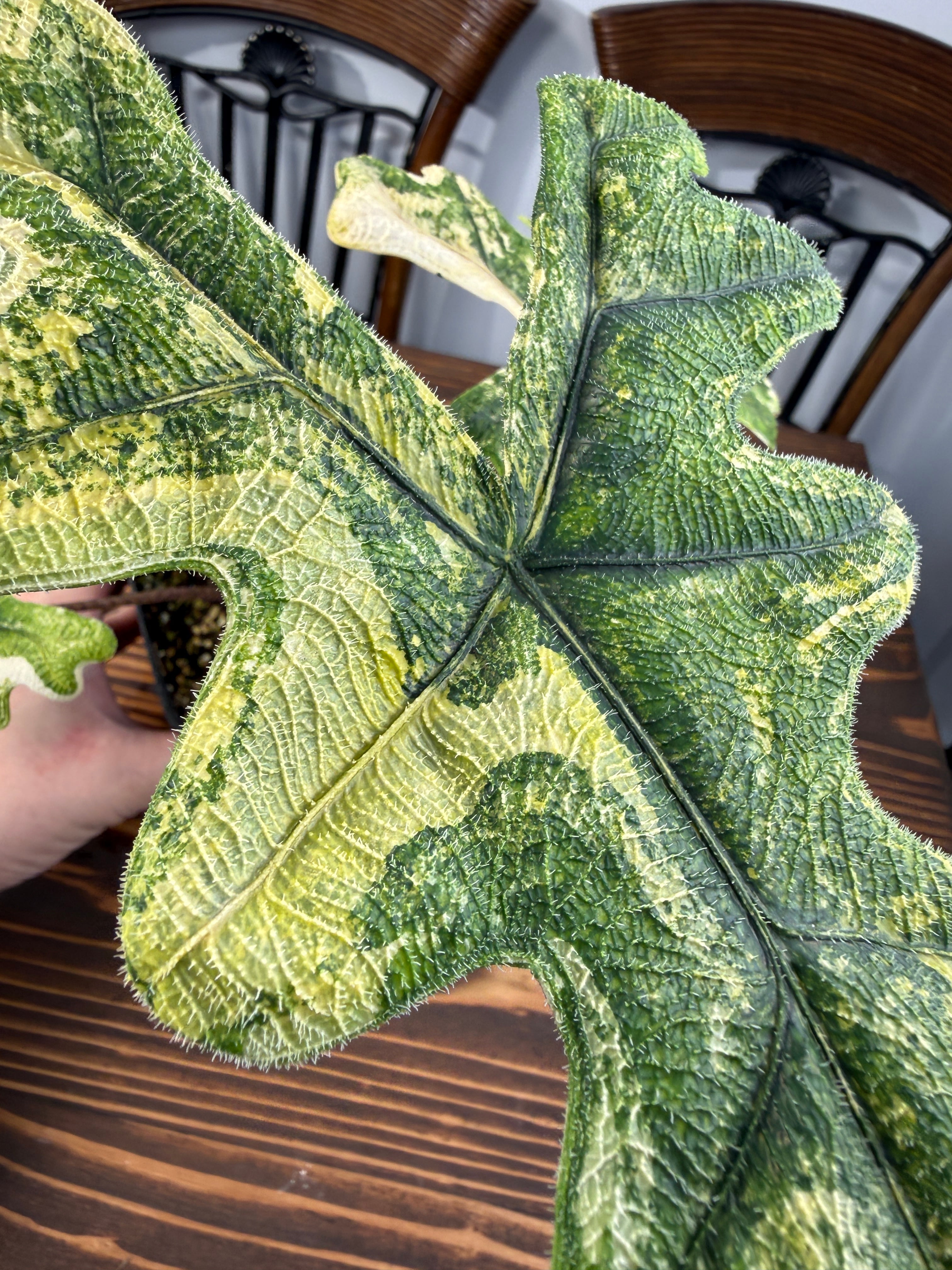 アロカシアジャックリン ミスティックバリエガータは、その美しいバリエーションと独特な葉の模様が特徴の観葉植物です。この超希少種は、お部屋に特別なアクセントを与え、見る人を魅了する存在です!明るい間接光で育てると、その美しさがさらに引き立ち、インテリアに洗練された雰囲気を添えます。