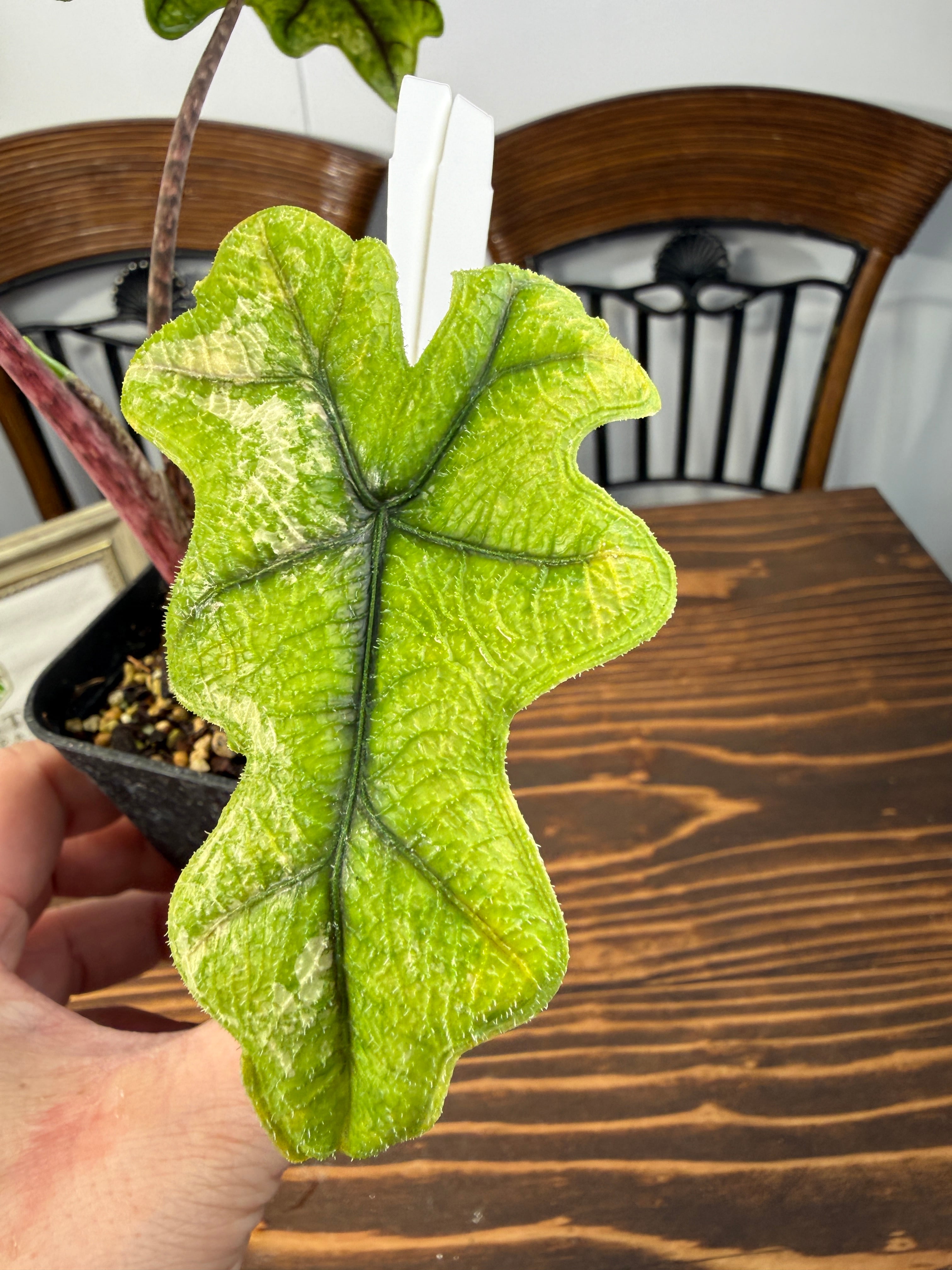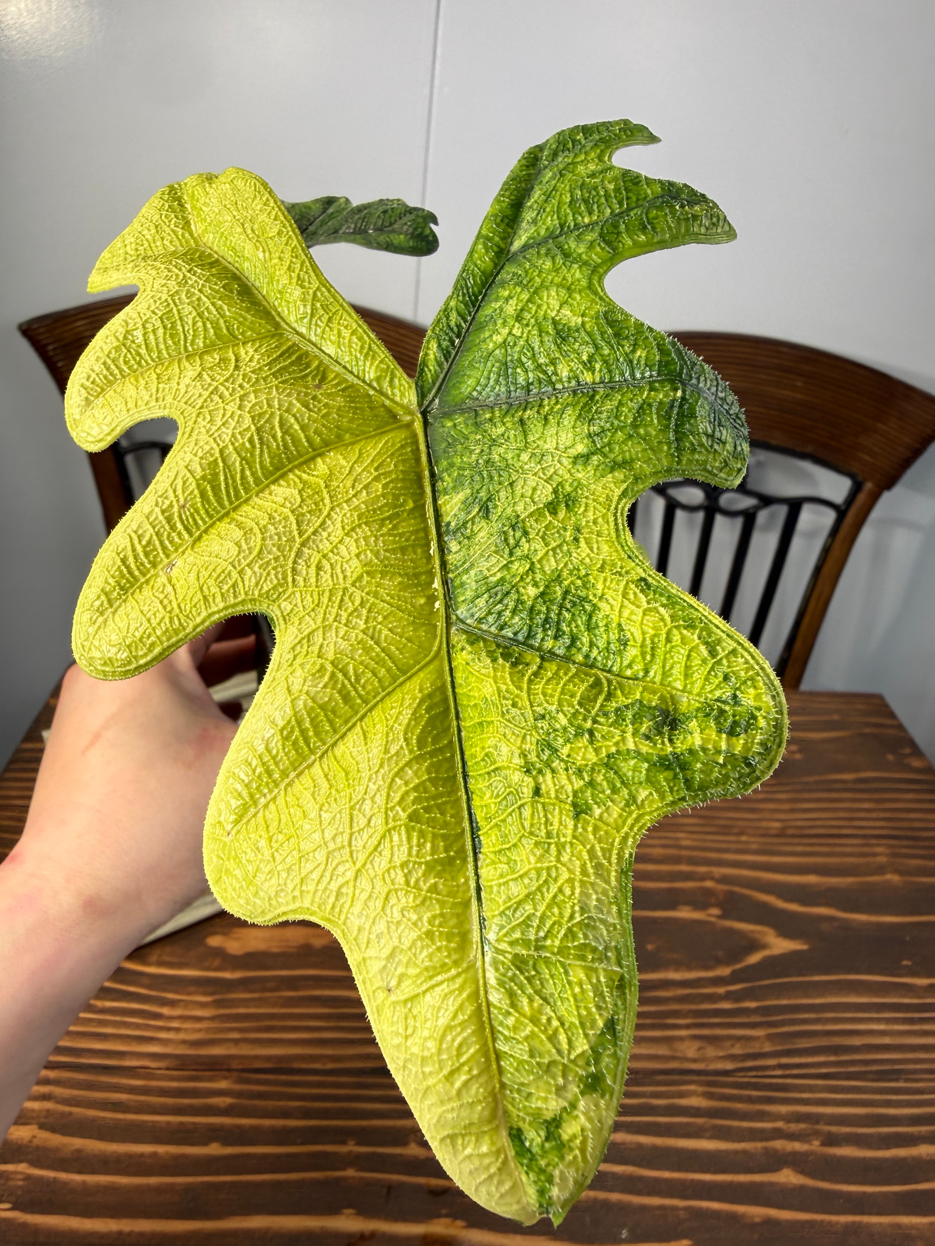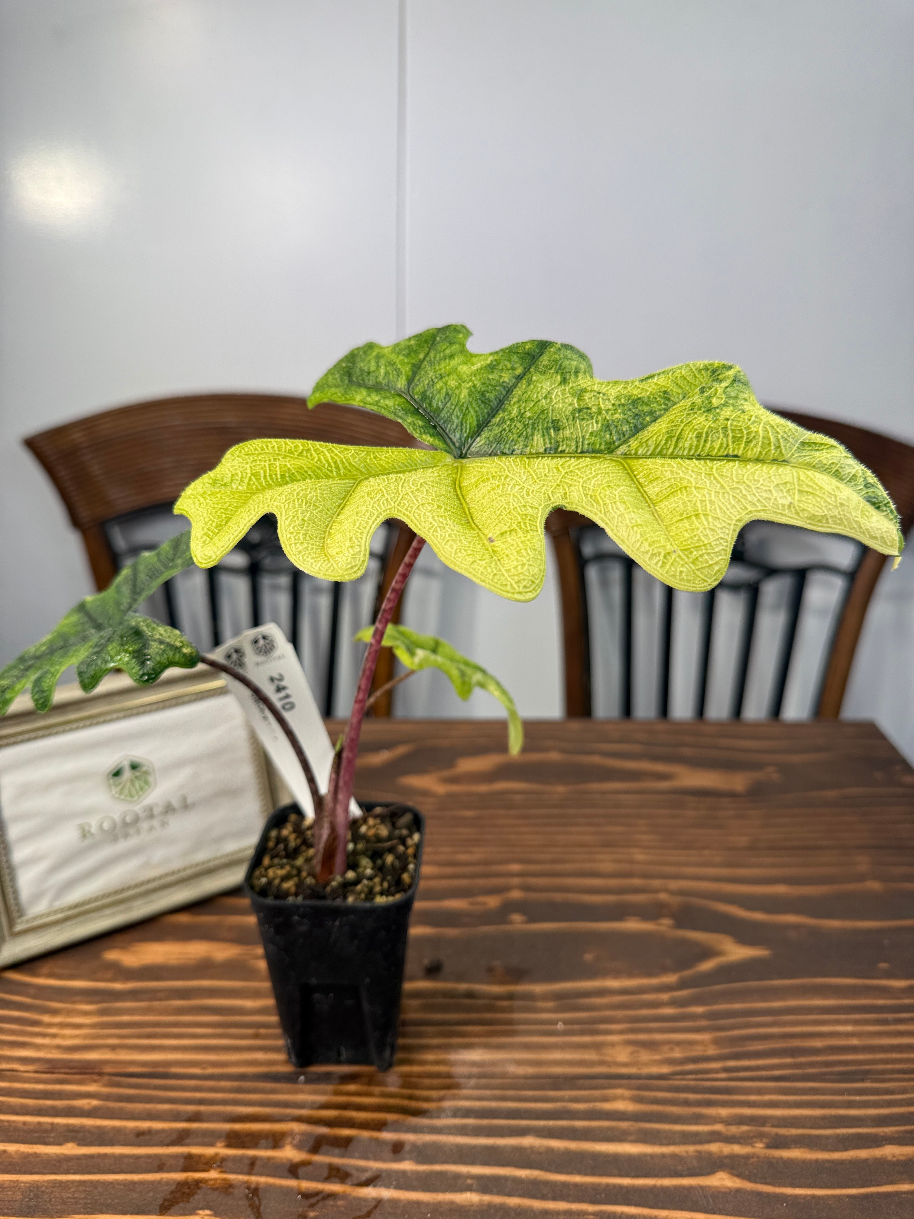 アロカシアジャックリン ミスティックバリエガータは、その美しいバリエーションと独特な葉の模様が特徴の観葉植物です。この超希少種は、お部屋に特別なアクセントを与え、見る人を魅了する存在です!明るい間接光で育てると、その美しさがさらに引き立ち、インテリアに洗練された雰囲気を添えます。