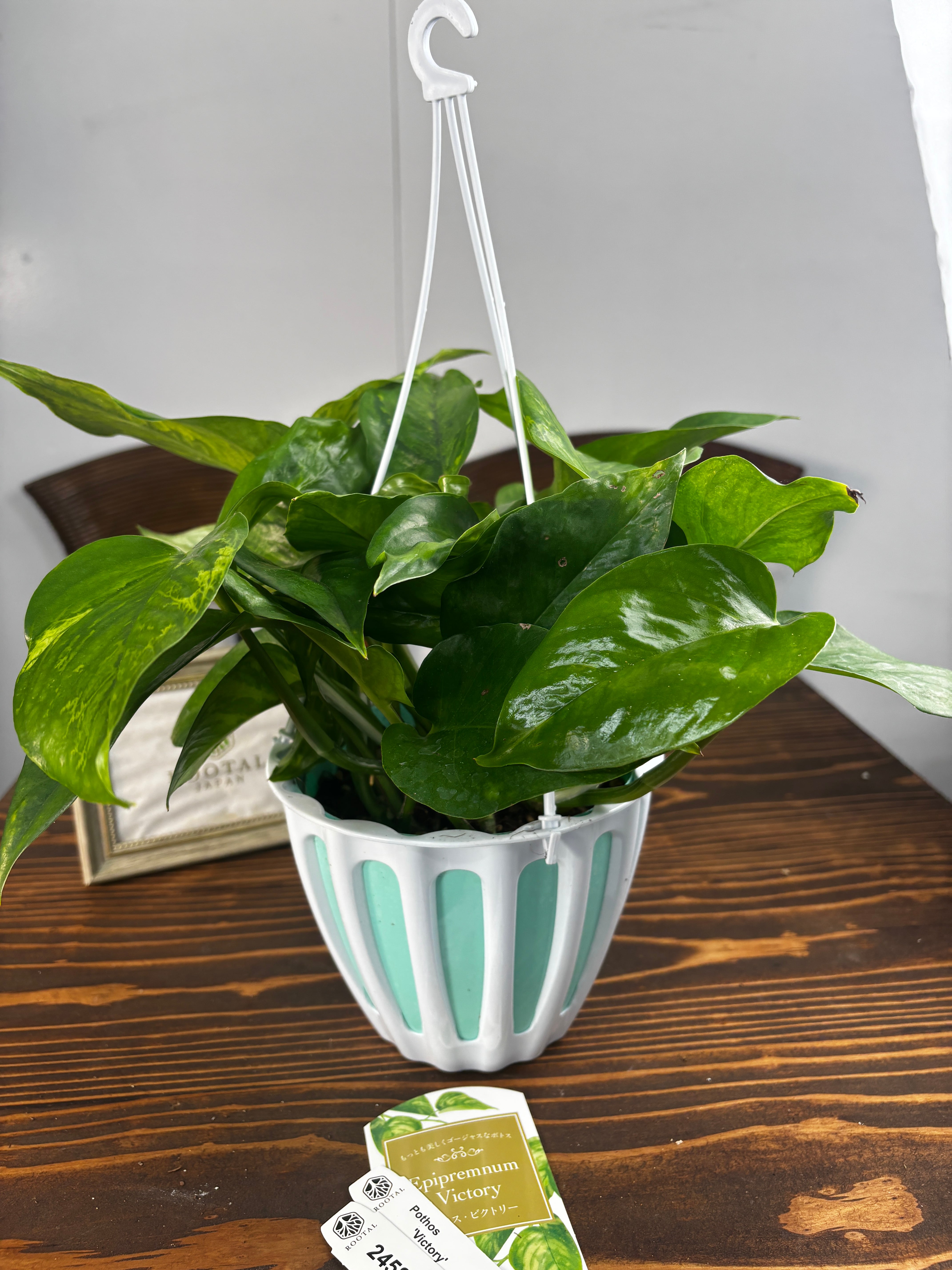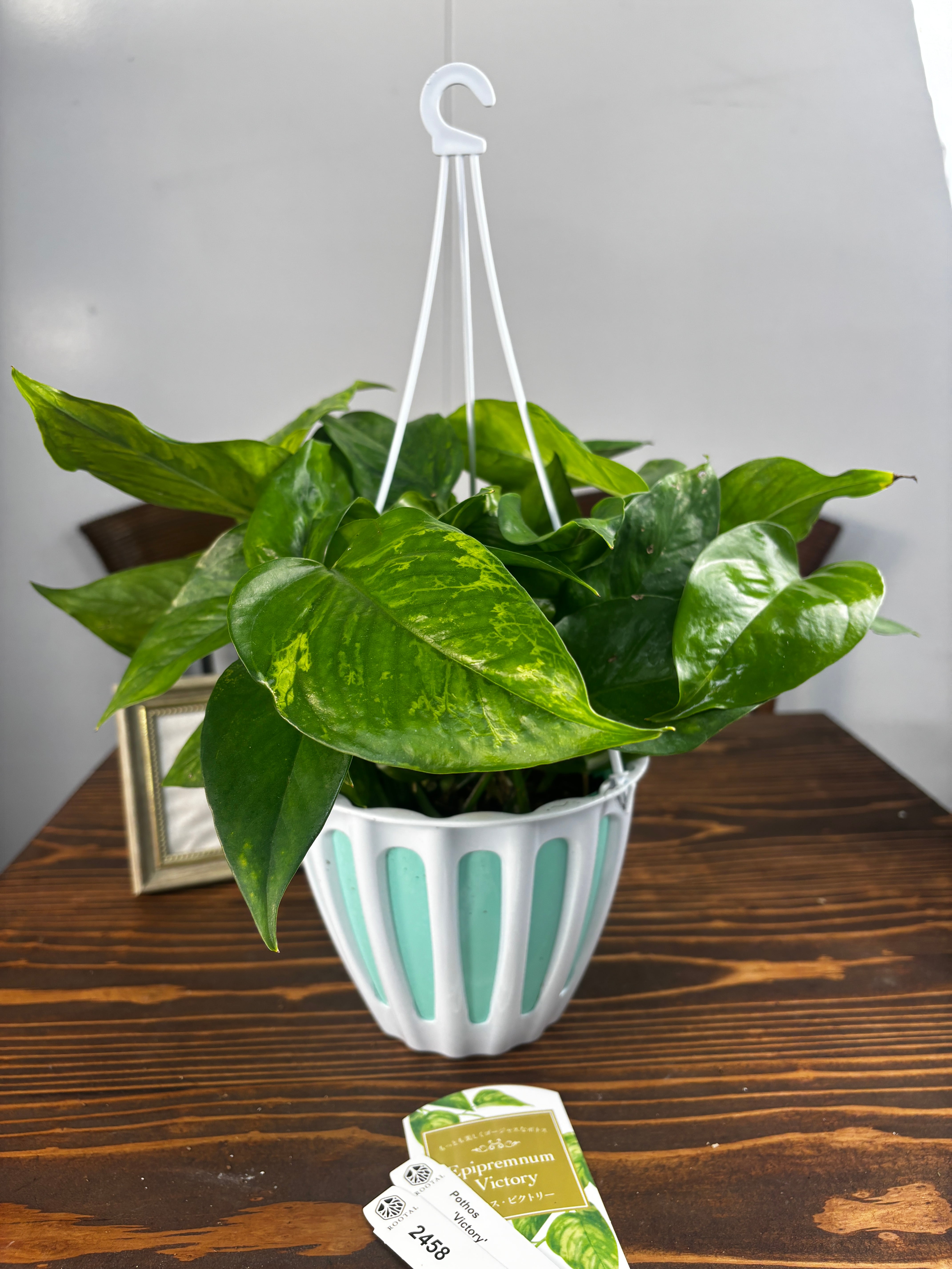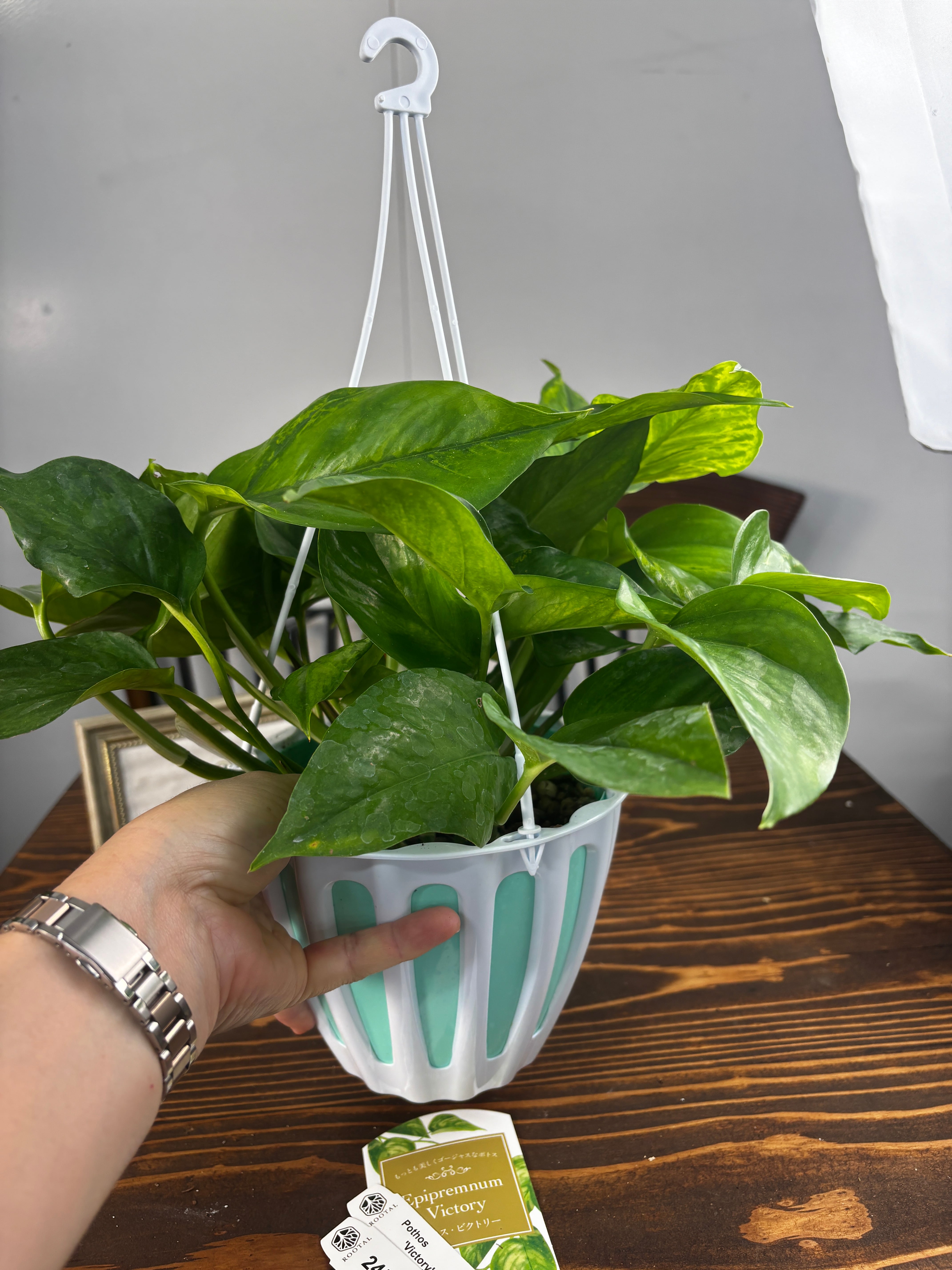 ★【美しくゴージャスな迷彩ポトス】ポトス ビクトリーは、健康的に育てられた5号の吊り鉢でお届けします。葉の成長につれて、あなたの空間にさらなる美しさを加えていきます。