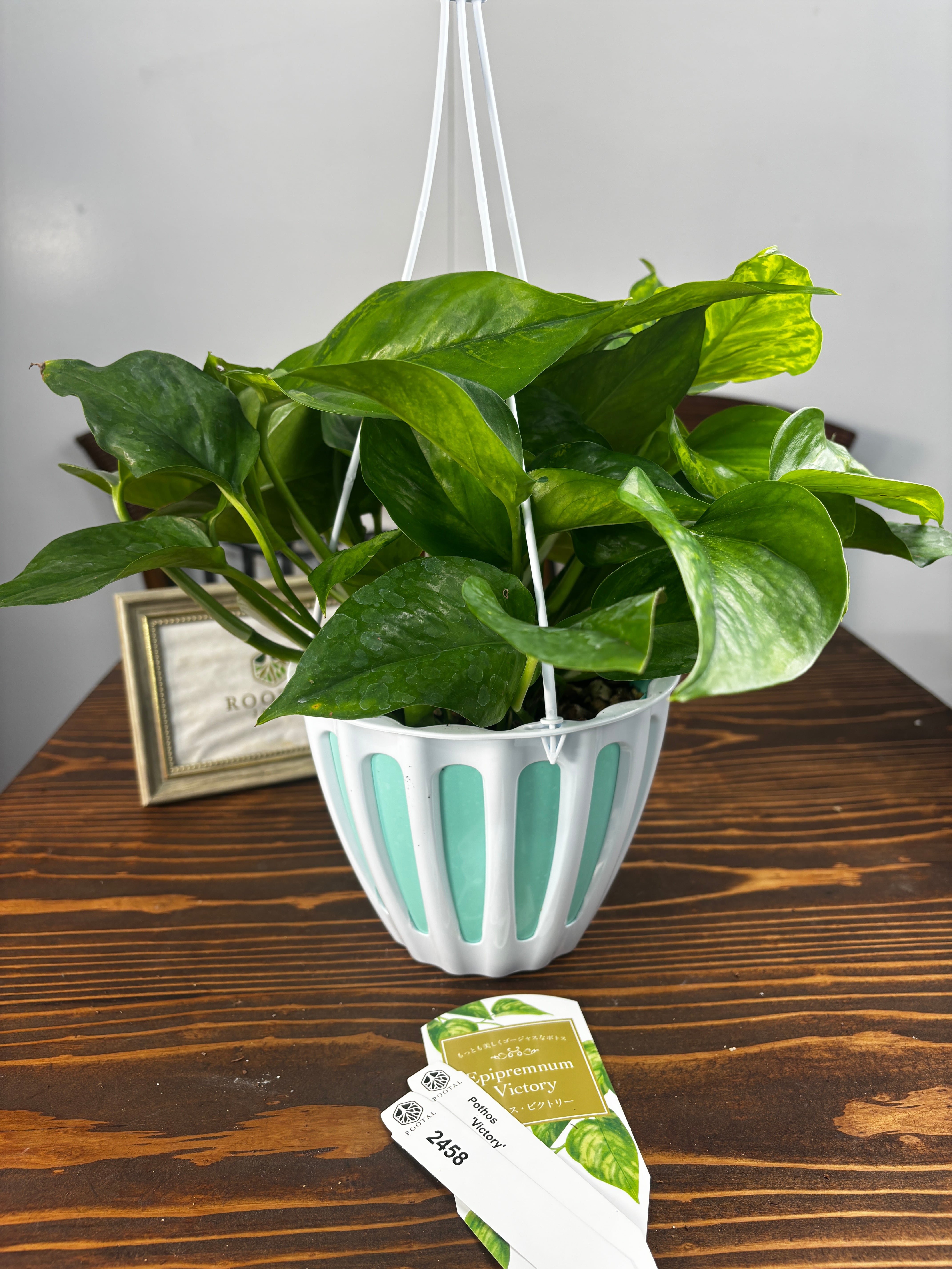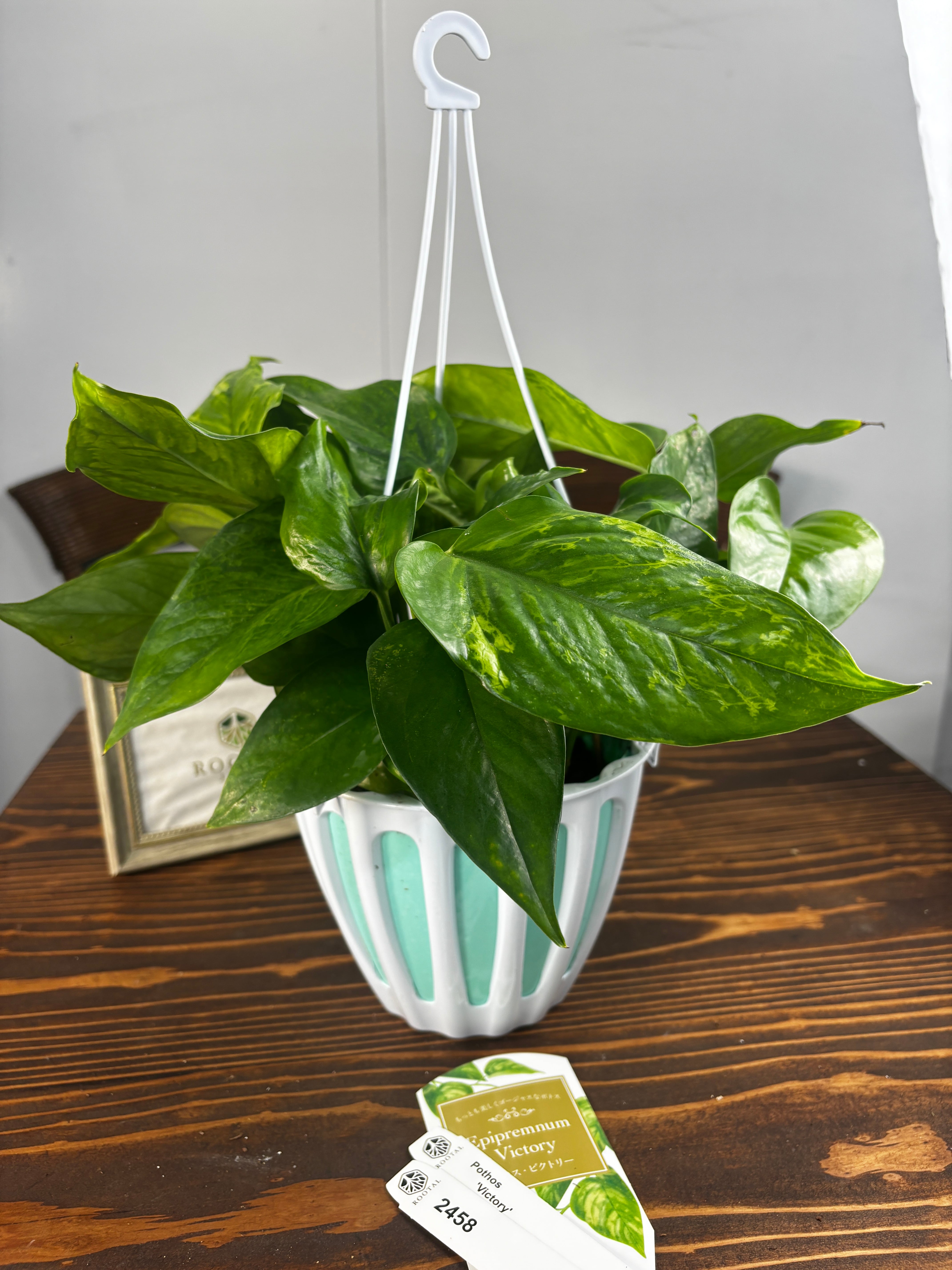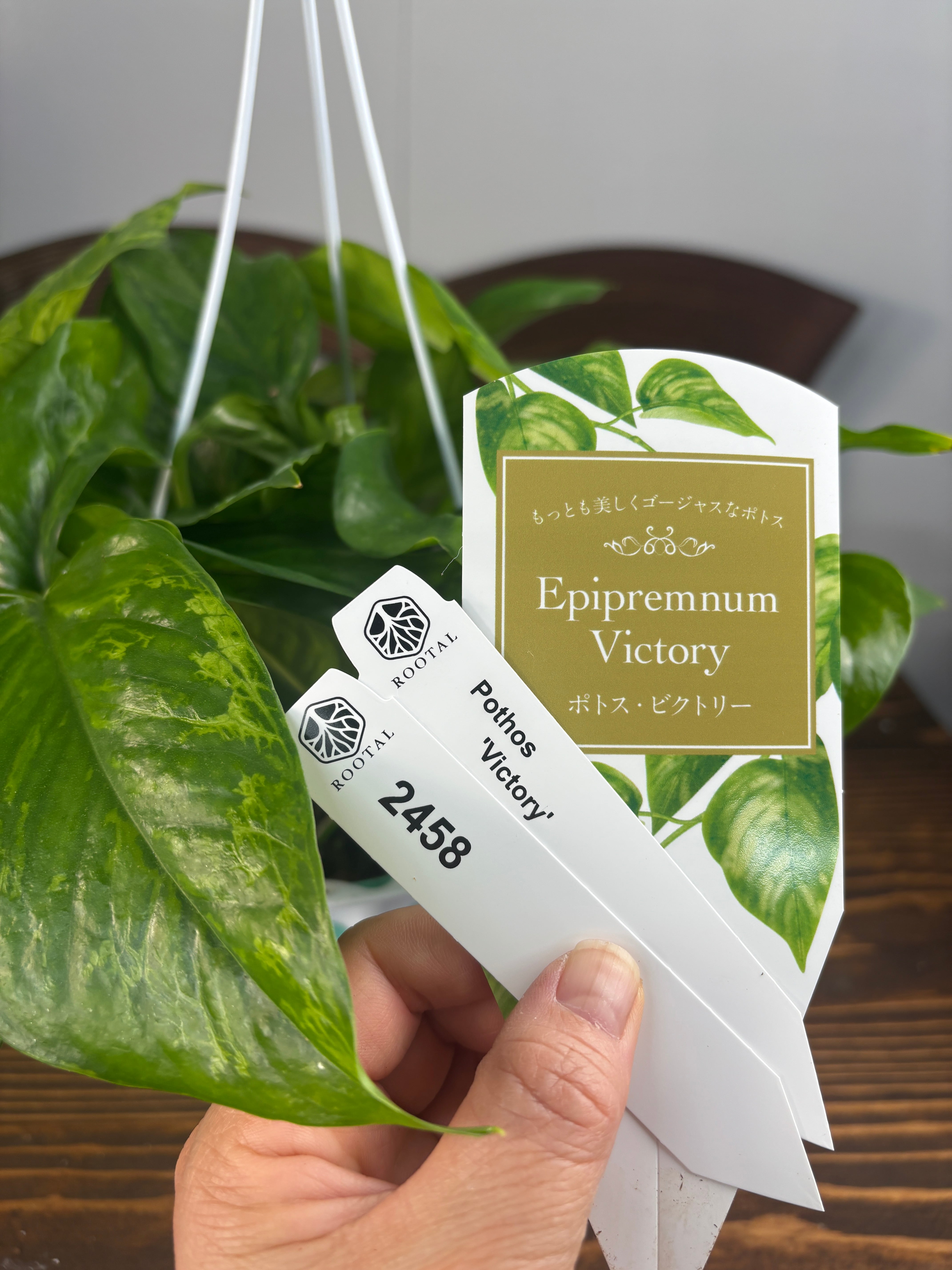 ★【美しくゴージャスな迷彩ポトス】ポトス ビクトリーは、健康的に育てられた5号の吊り鉢でお届けします。葉の成長につれて、あなたの空間にさらなる美しさを加えていきます。