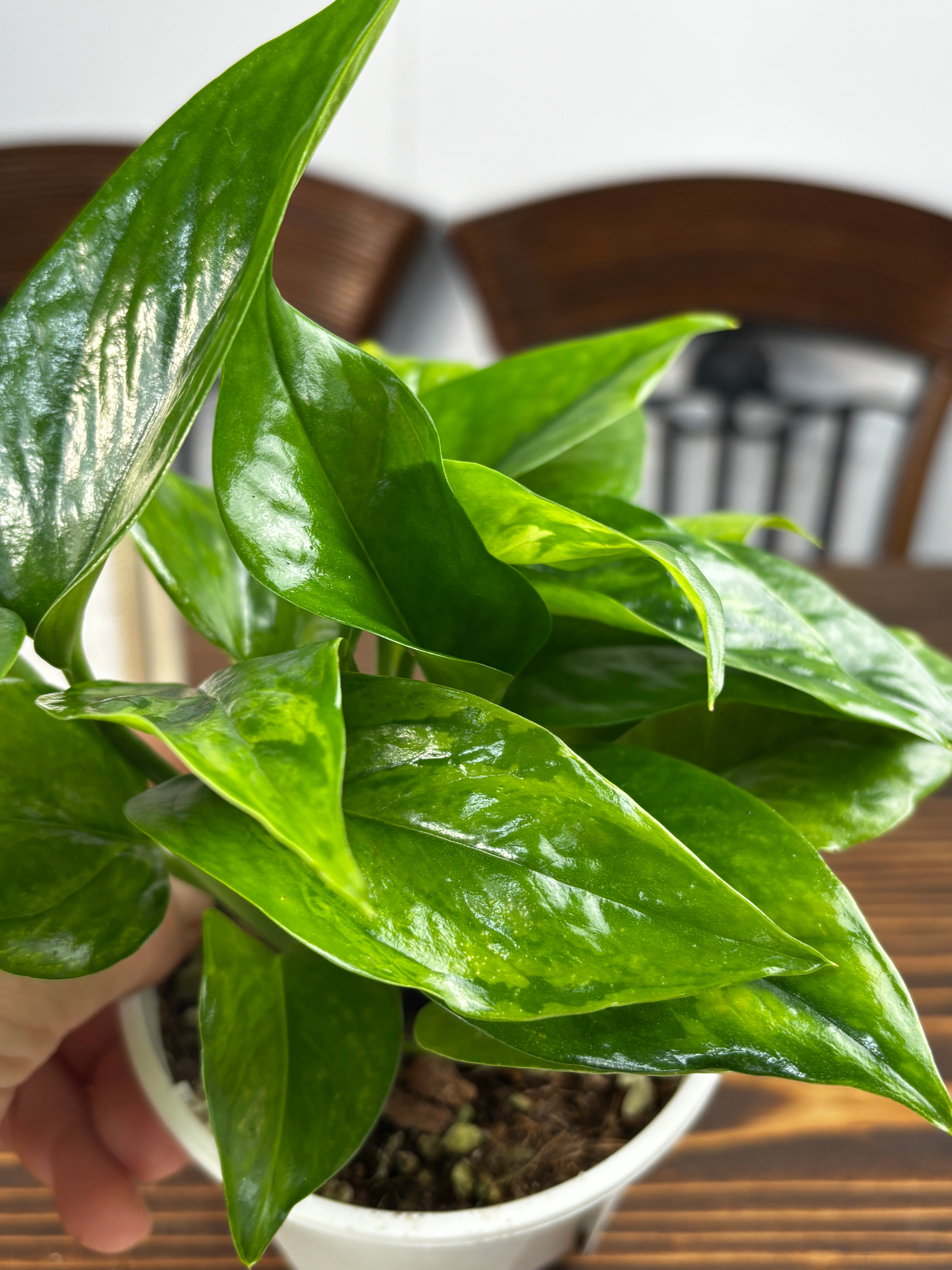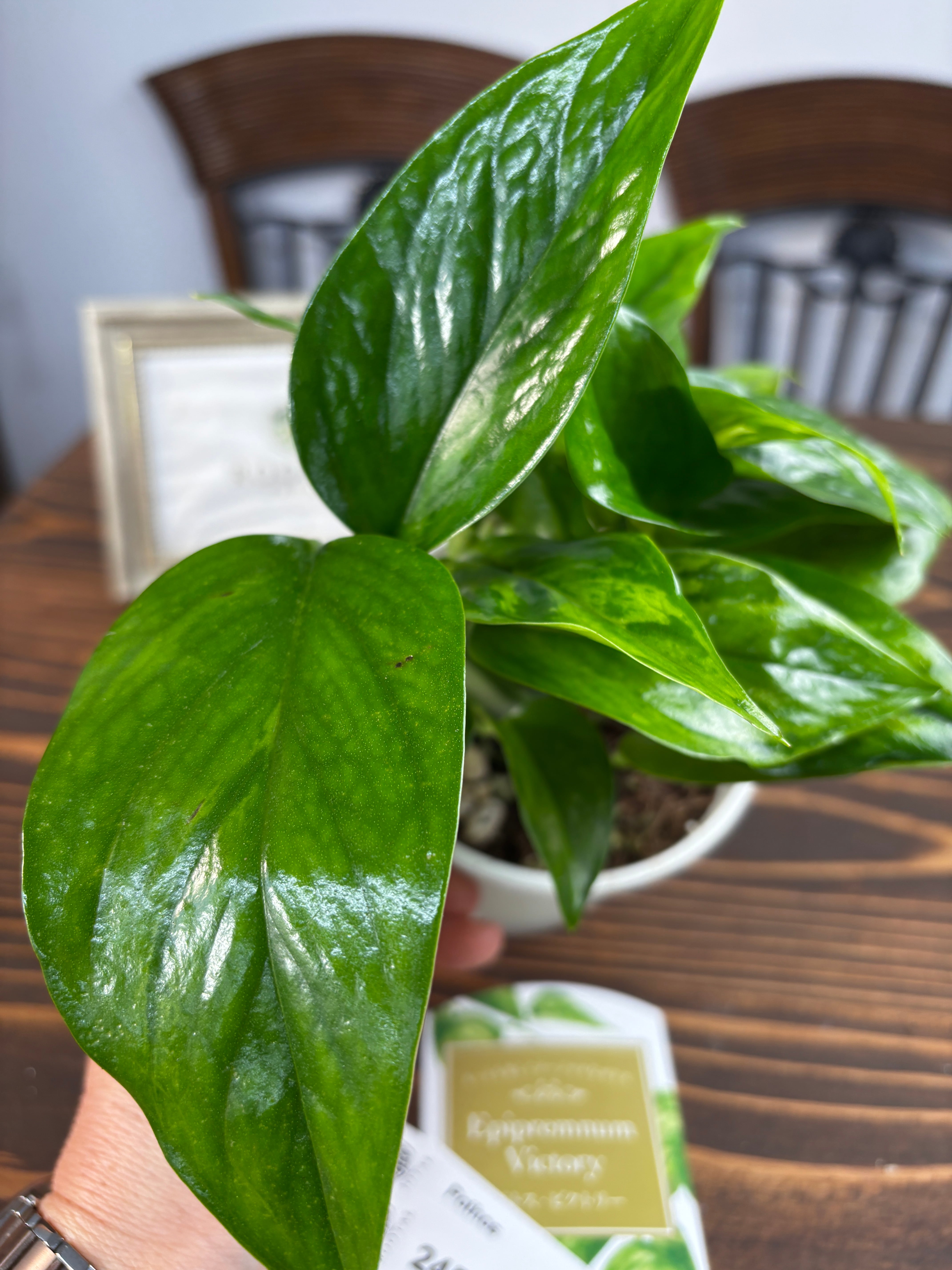 ★【迷彩柄】ポトス ビクトリーは、そのユニークな迷彩模様が特長の観葉植物です!この品種は、深い緑と明るい緑の美しいコントラストが、あなたのインテリアに個性的でモダンな雰囲気をプラスします。お部屋のアクセントとして、来訪者の視線を引きつけることでしょう。