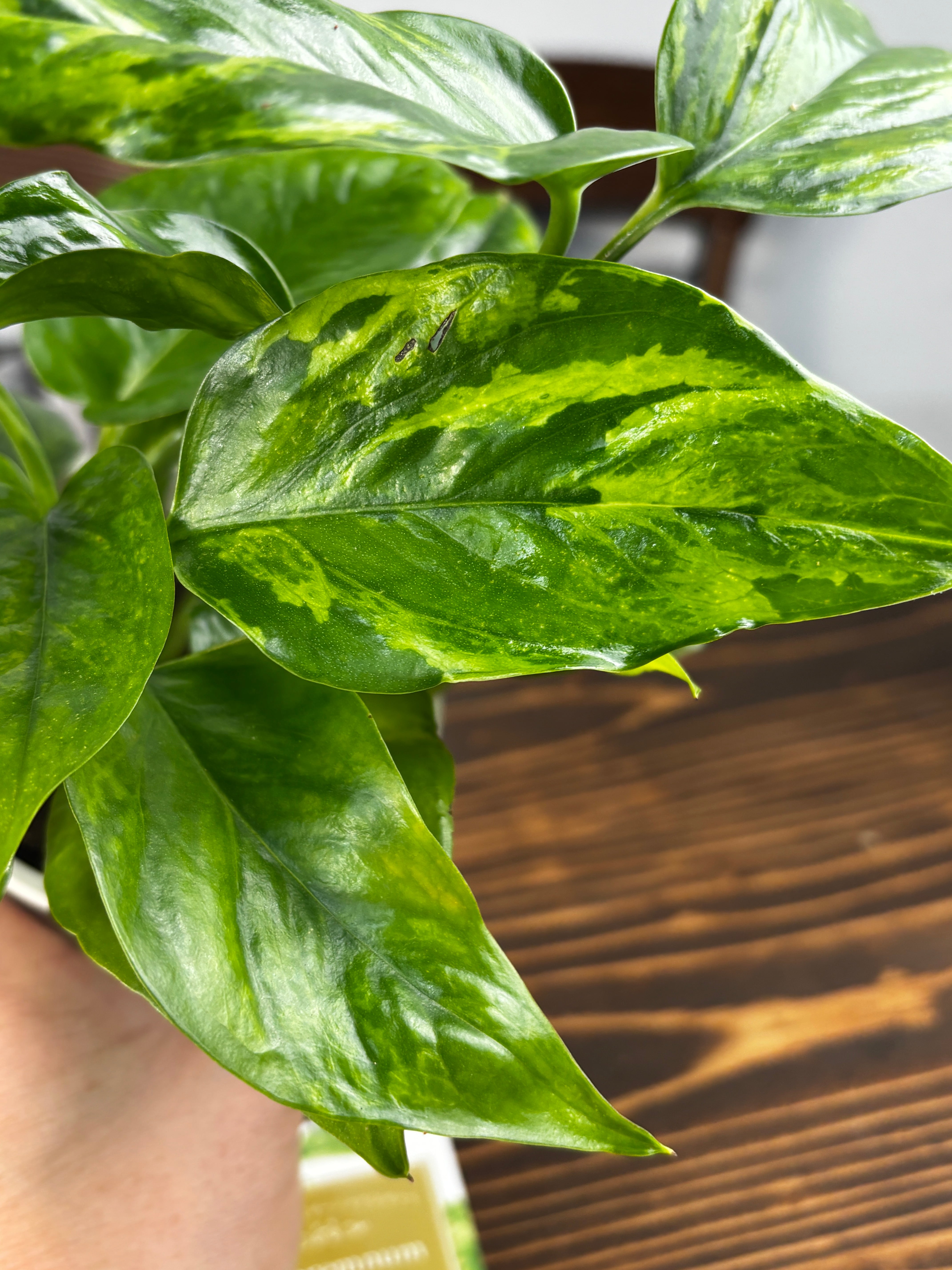 ★【迷彩柄】ポトス ビクトリーは、そのユニークな迷彩模様が特長の観葉植物です!この品種は、深い緑と明るい緑の美しいコントラストが、あなたのインテリアに個性的でモダンな雰囲気をプラスします。お部屋のアクセントとして、来訪者の視線を引きつけることでしょう。
