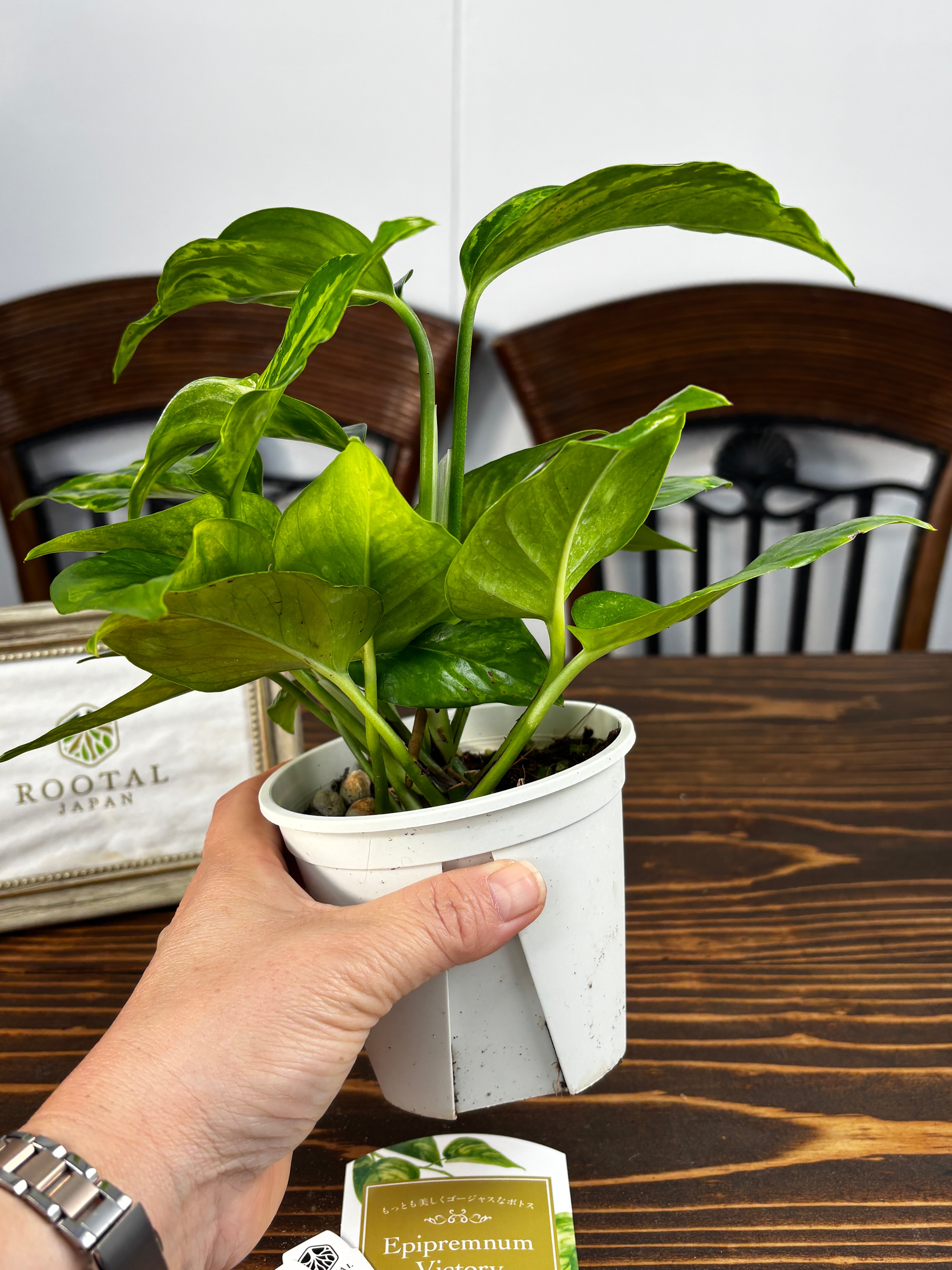 ★【迷彩柄】ポトス ビクトリーは、健康的に育てられた3号ポットでお届けします。時間の経過とともに、その魅力的な葉が広がり、心地よい空間を演出します。