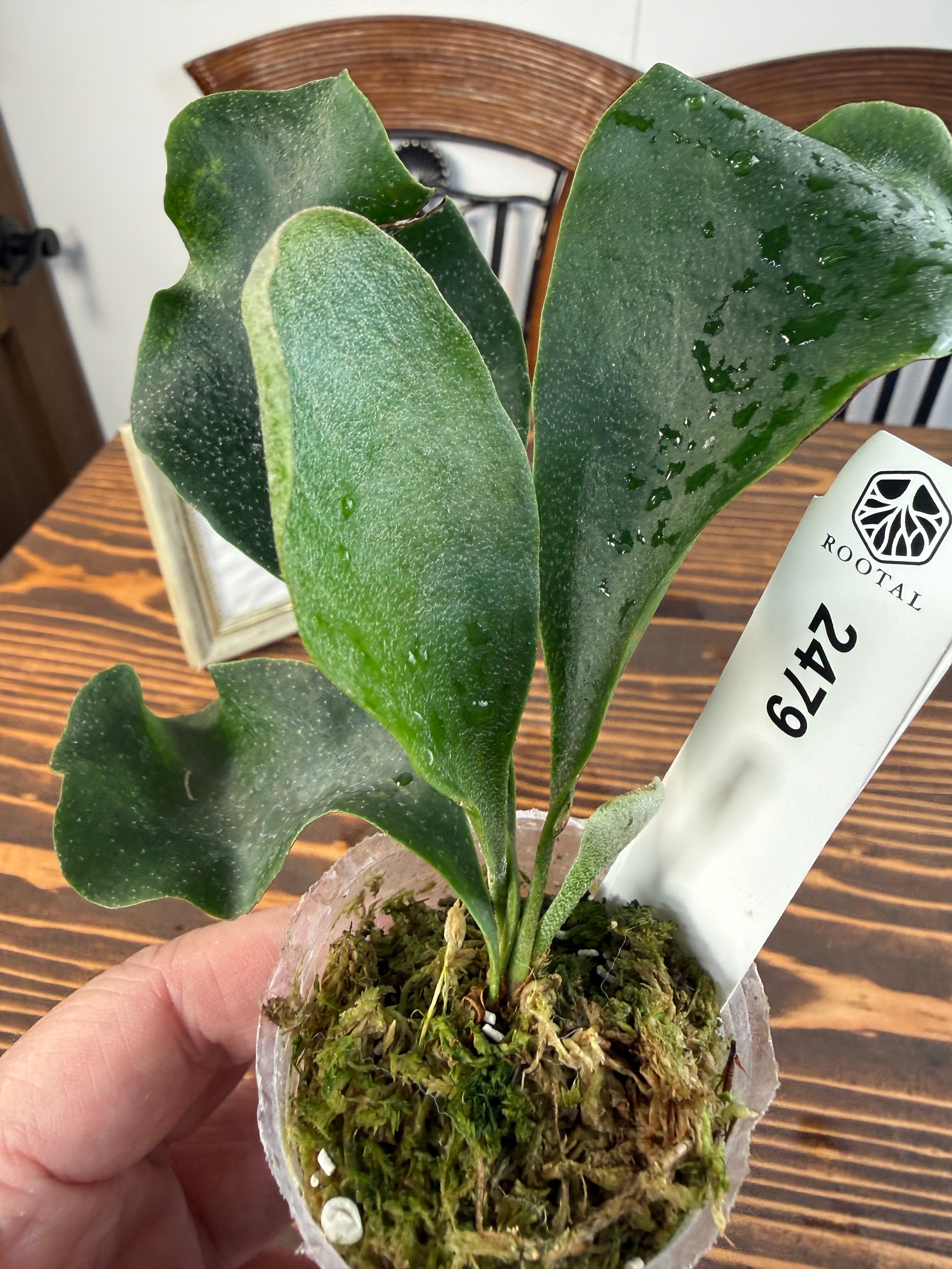 育成時は、直射日光を避け、明るい間接光の下で育てることが肝心です。また、土の乾燥具合を定期的に確認し、適切な水分を与えることが重要です。温度は15〜25度を目安に保ち、高湿度を好むビカクシダの特徴を大切にするため、葉水を行うことをおすすめします。