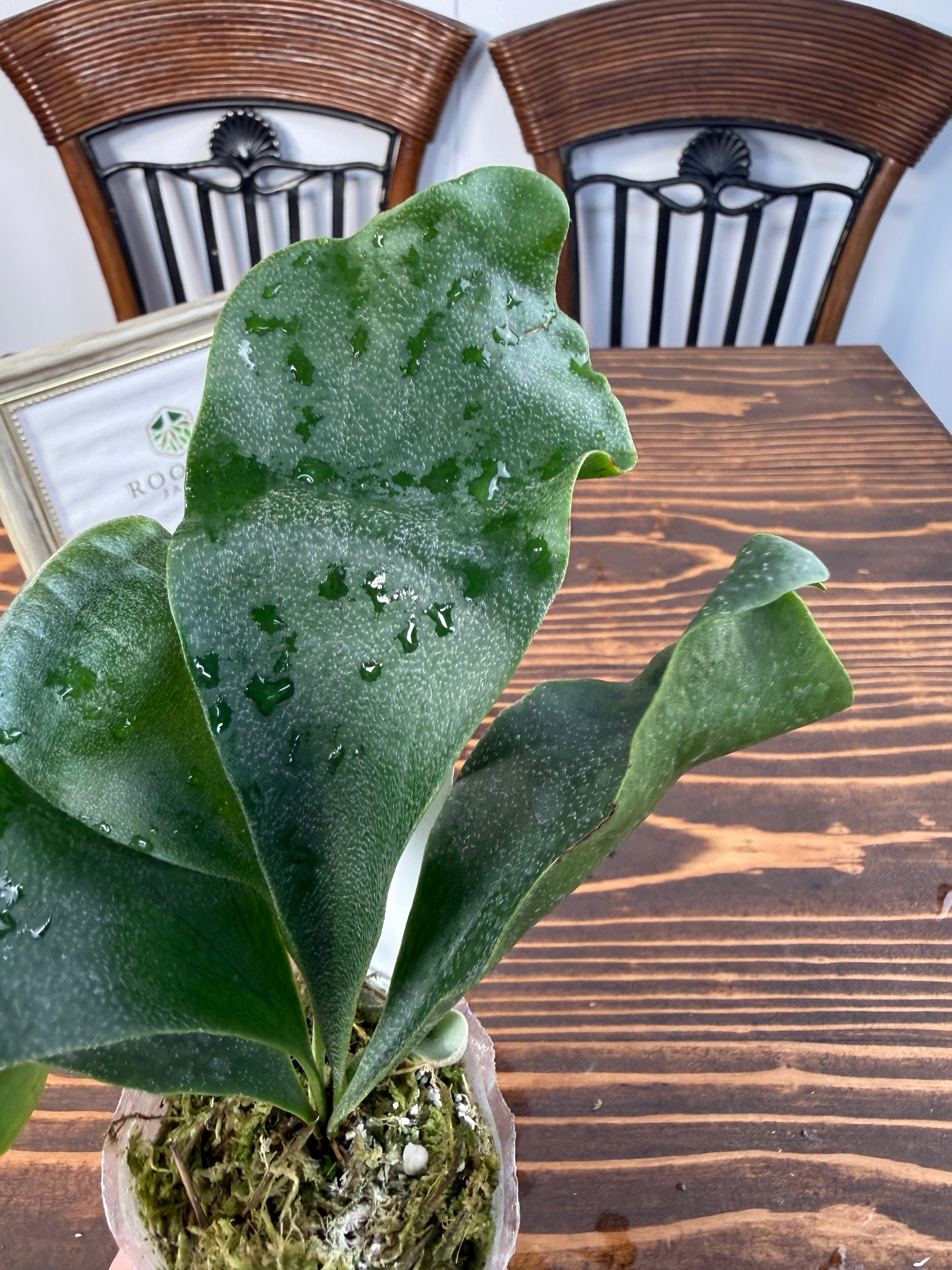 育成時は、直射日光を避け、明るい間接光の下で育てることが肝心です。また、土の乾燥具合を定期的に確認し、適切な水分を与えることが重要です。温度は15〜25度を目安に保ち、高湿度を好むビカクシダの特徴を大切にするため、葉水を行うことをおすすめします。
