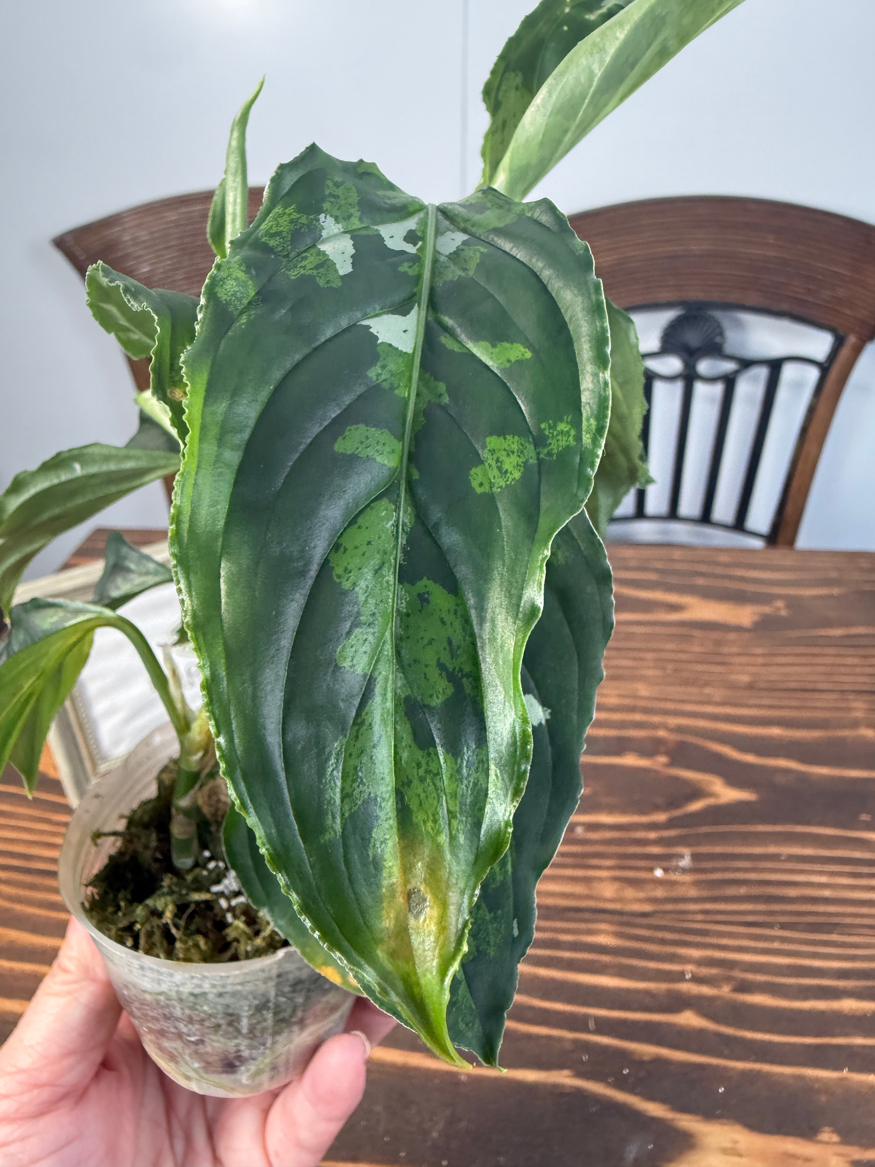苗の状態でお届けいたしますので、定期的な植え替えをお勧めします。葉に自然なダメージが見られる場合がございますが、これは成長過程の一部ですので、安心してご利用ください。豊かな光を浴びせ、愛情を込めて育てていただき、アグラオネマ ピクタムトリカラーの素晴らしい美しさをお楽しみください。何か気になる点がございましたら、お気軽にお問い合わせください。