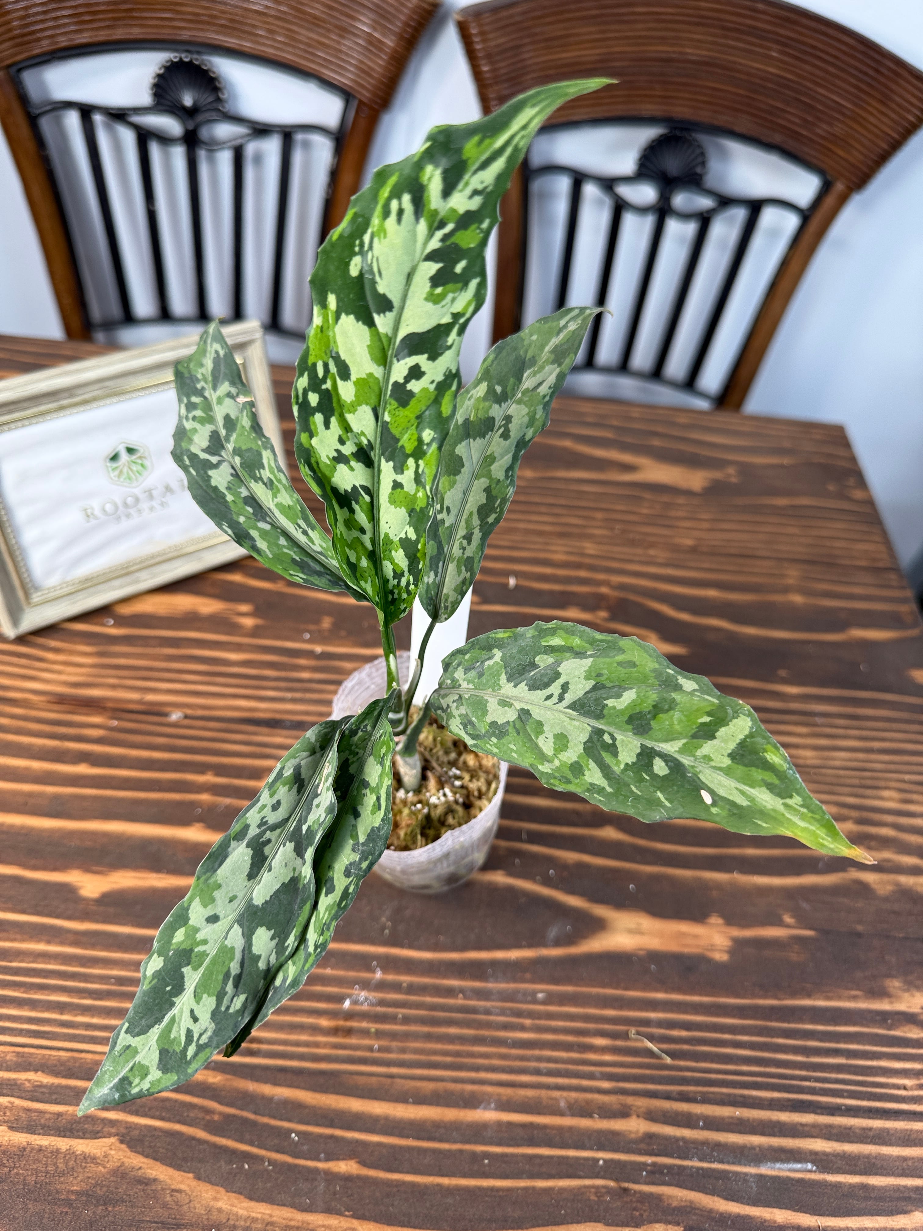 アグラオネマ ピクタムトリカラーthinは、シャープでスタイリッシュな迷彩模様の葉が特徴的な観葉植物です。この美しいデザインは、視覚的なインパクトを与え、空間に洗練された個性をもたらします!明るい間接光で育てることで、その色合いが一層引き立ち、インテリアに素敵なアクセントを加えます。