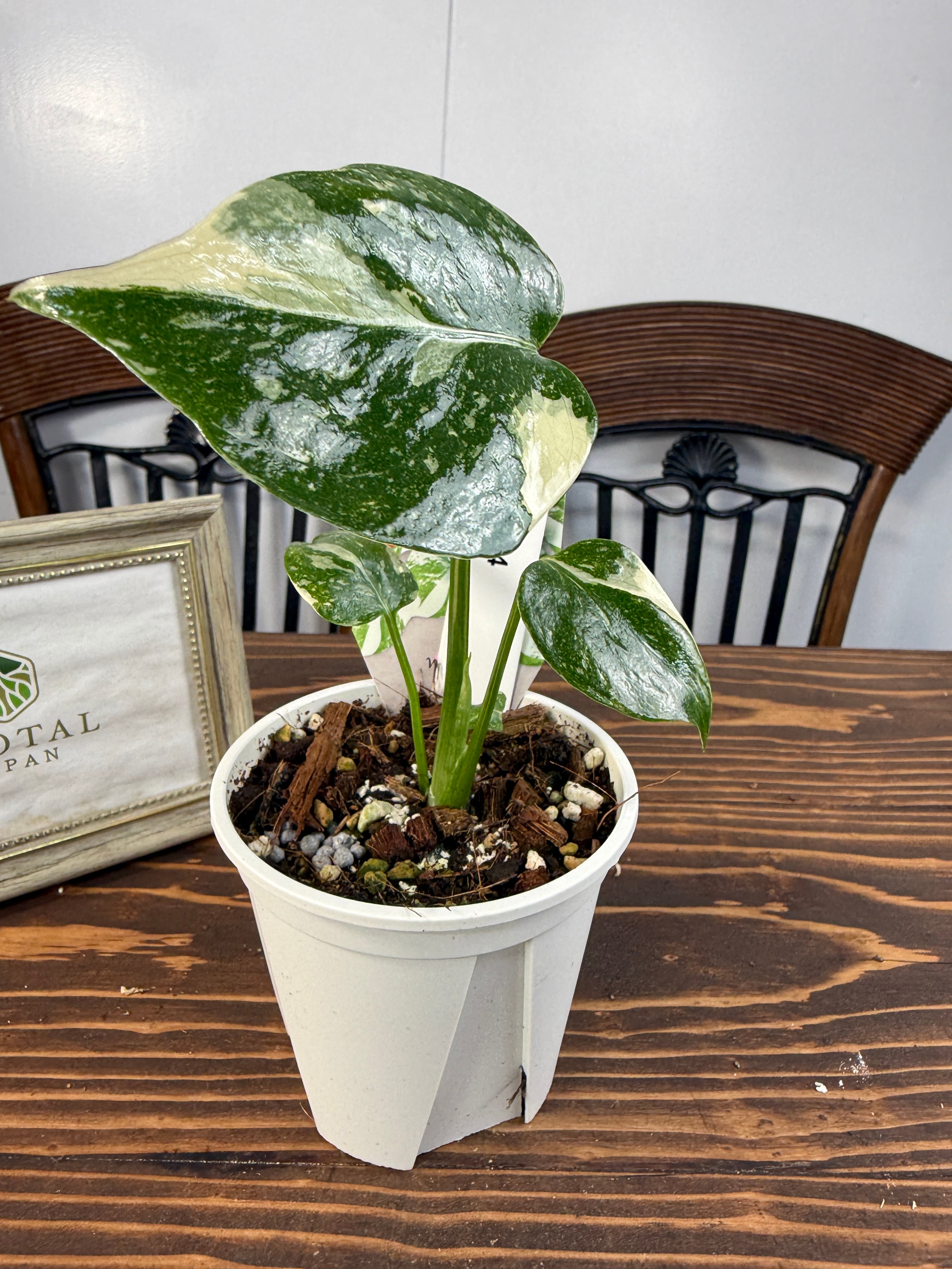 モンステラ タイコンステレーションマイクロコンパクタは、美しい分裂葉を持つスタイリッシュな観葉植物です。そのコンパクトなサイズ感は、どんなインテリアにもぴったりフィットし、癒しの空間を演出します!明るい環境で育てることで、特有の美しい模様が一層引き立ち、居心地の良い雰囲気を醸し出します。