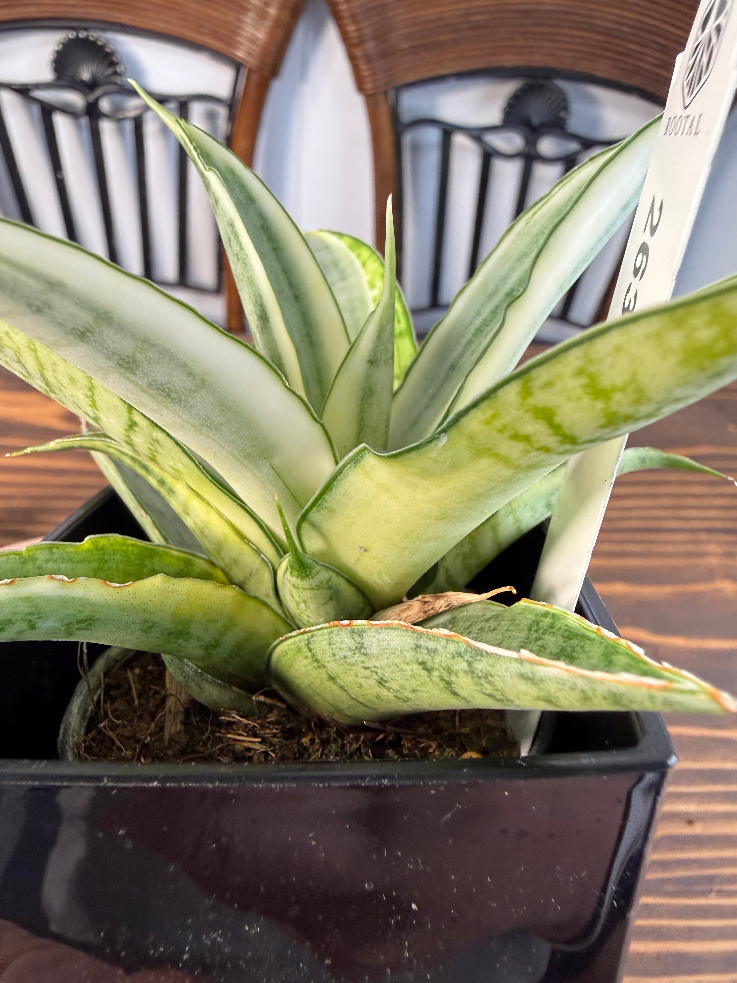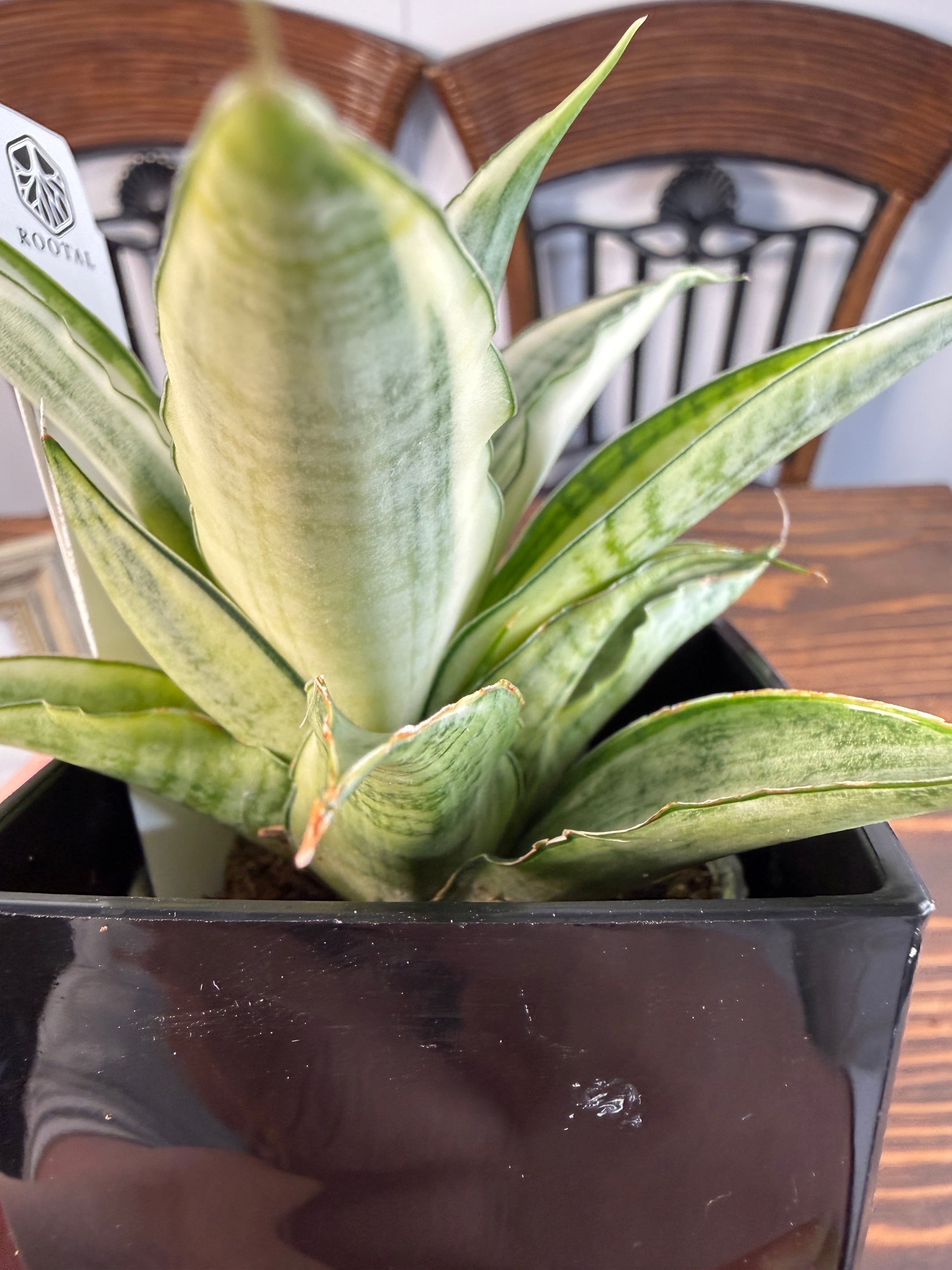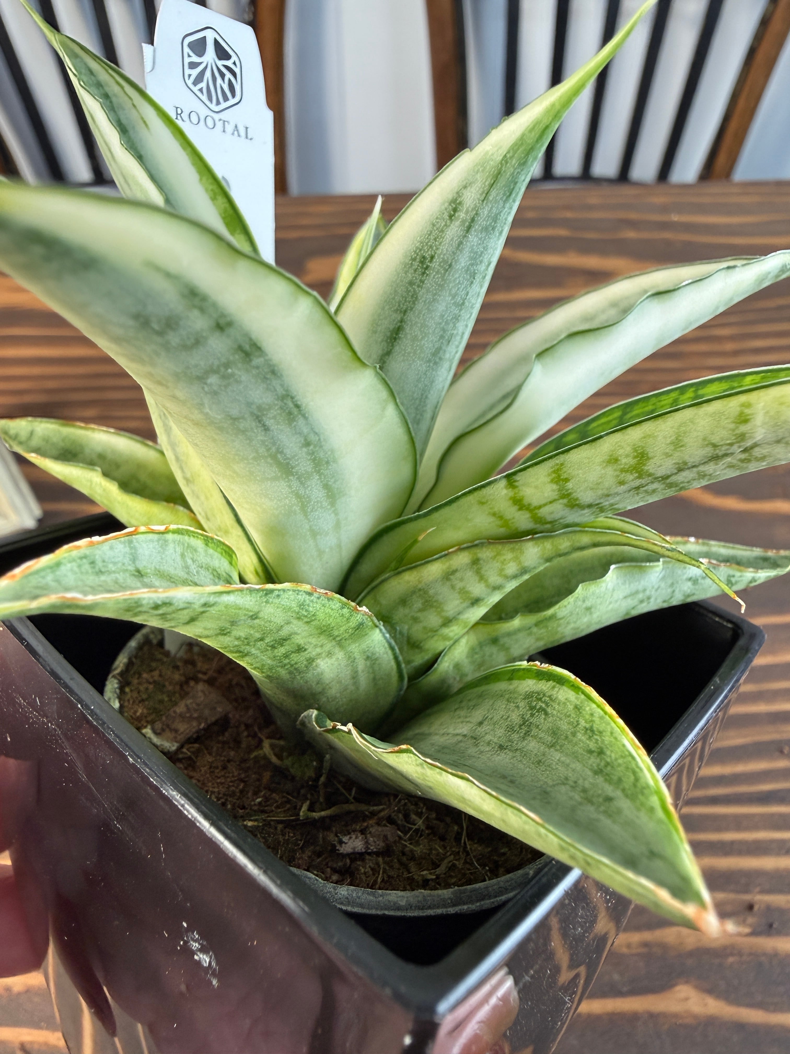 このサンセベリアは、白斑の模様が特徴で、独特の美しさを持っています。出荷時のサイズは2.5号硬質ポットで、健康的に育った美しい個体をお届けしますので、安心してお選びいただけます。