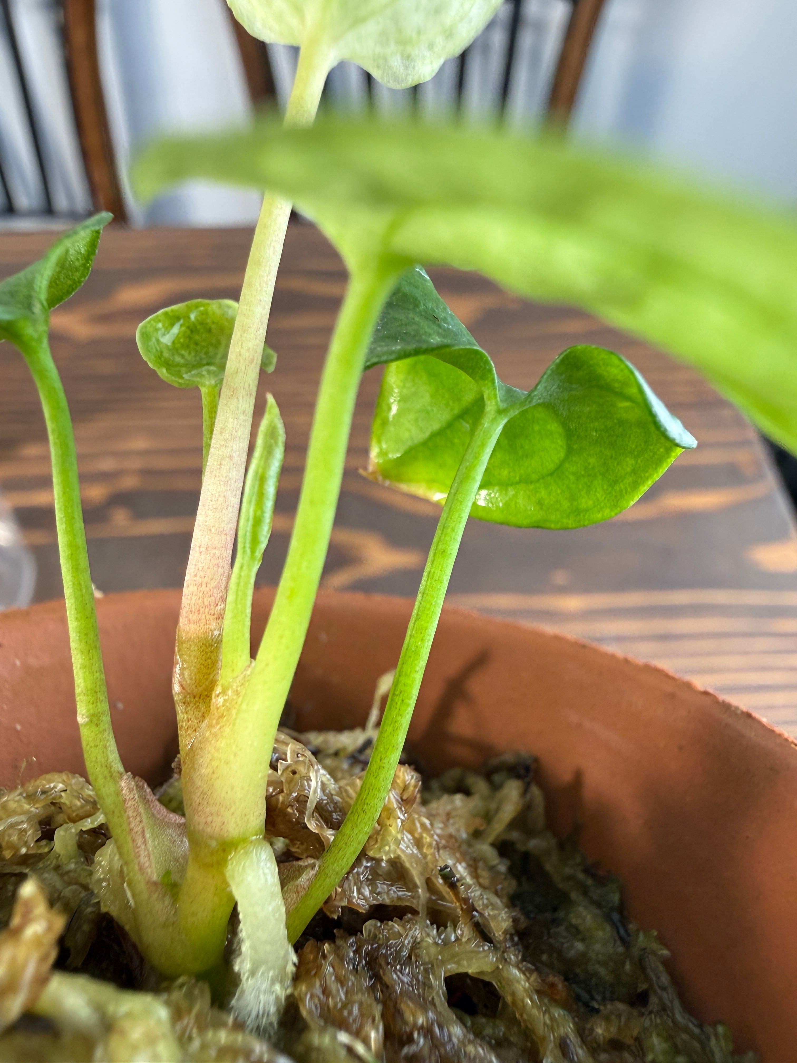 植え替え時は根を傷めないよう水苔を外し、アロイドミックスなどに植え替えればOKです!