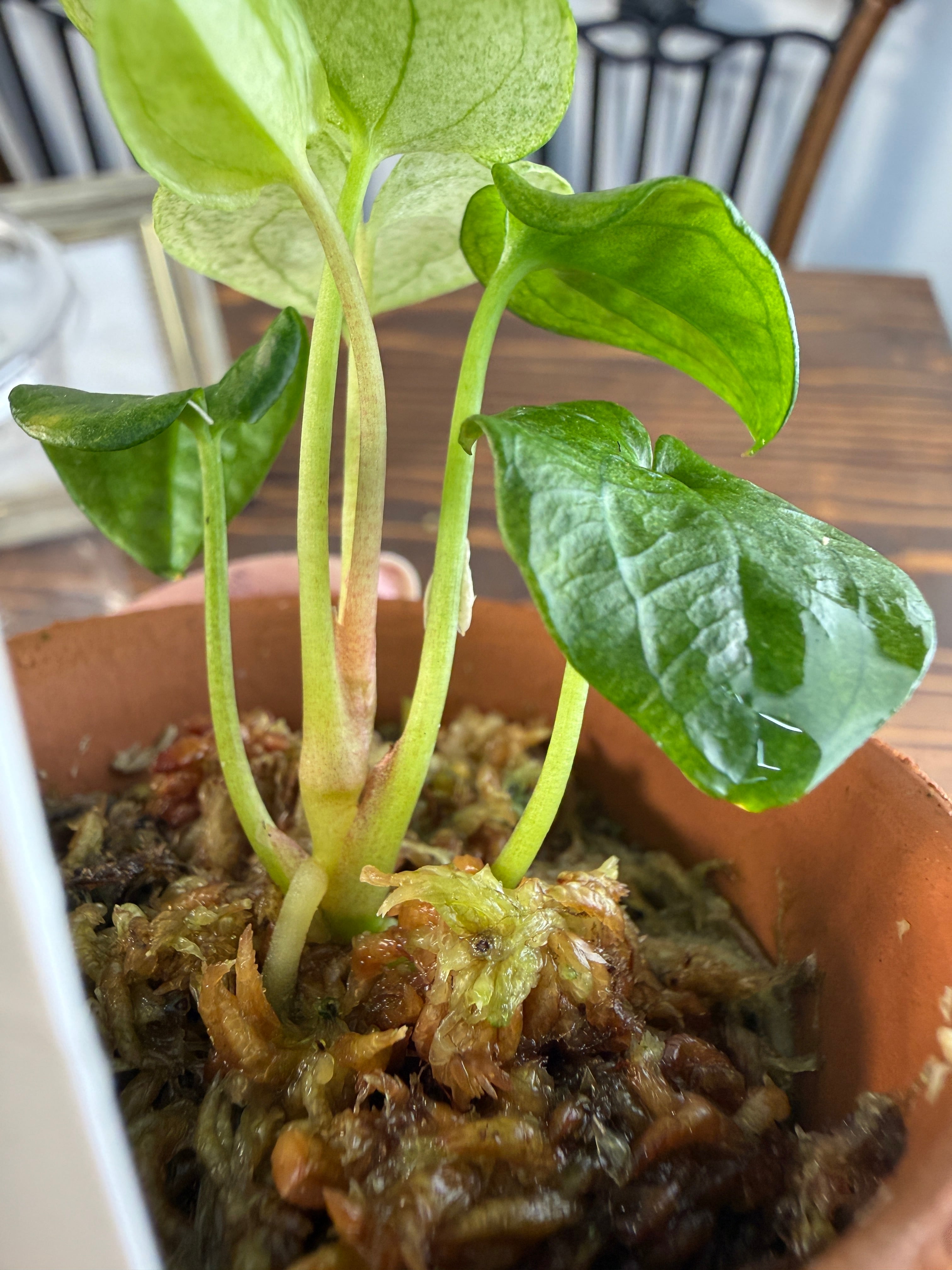 植え替え時は根を傷めないよう水苔を外し、アロイドミックスなどに植え替えればOKです!