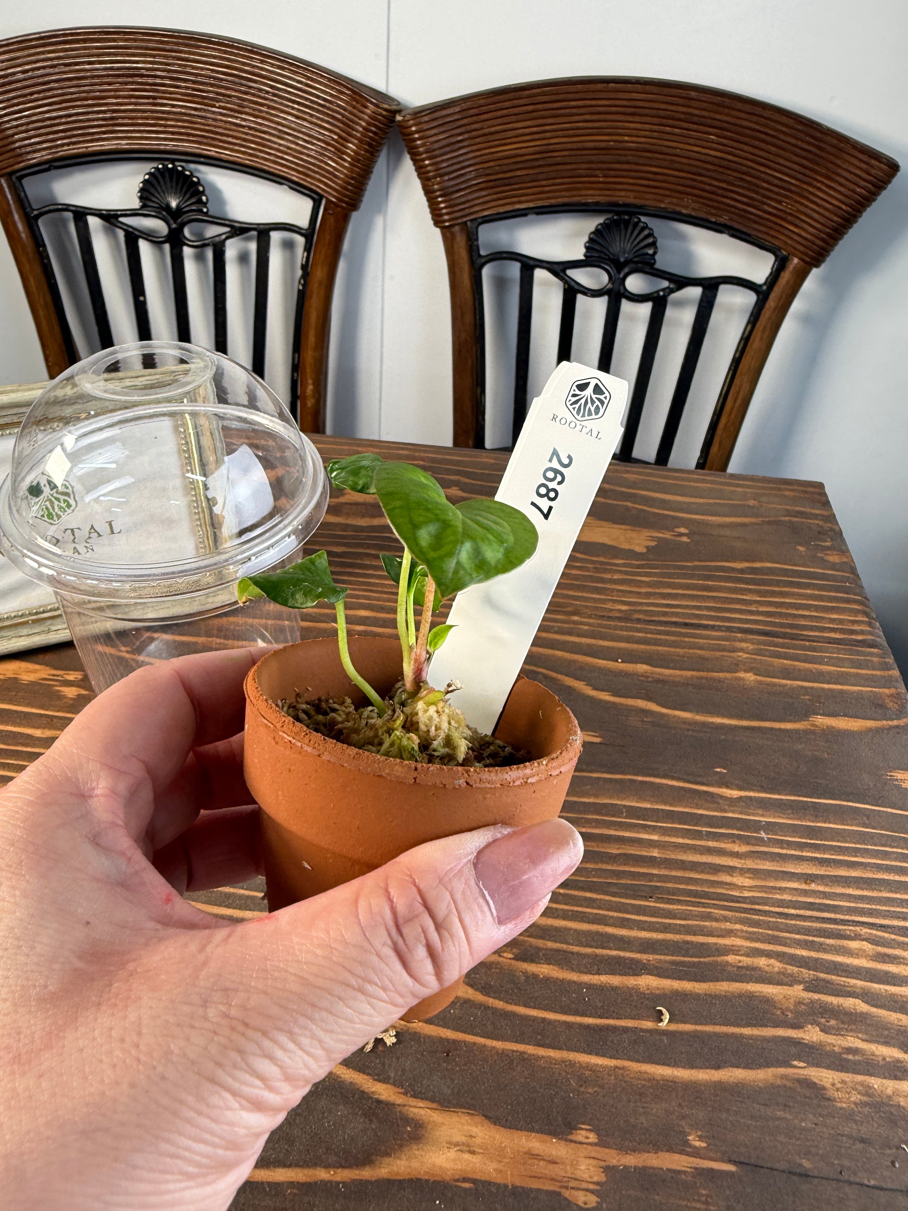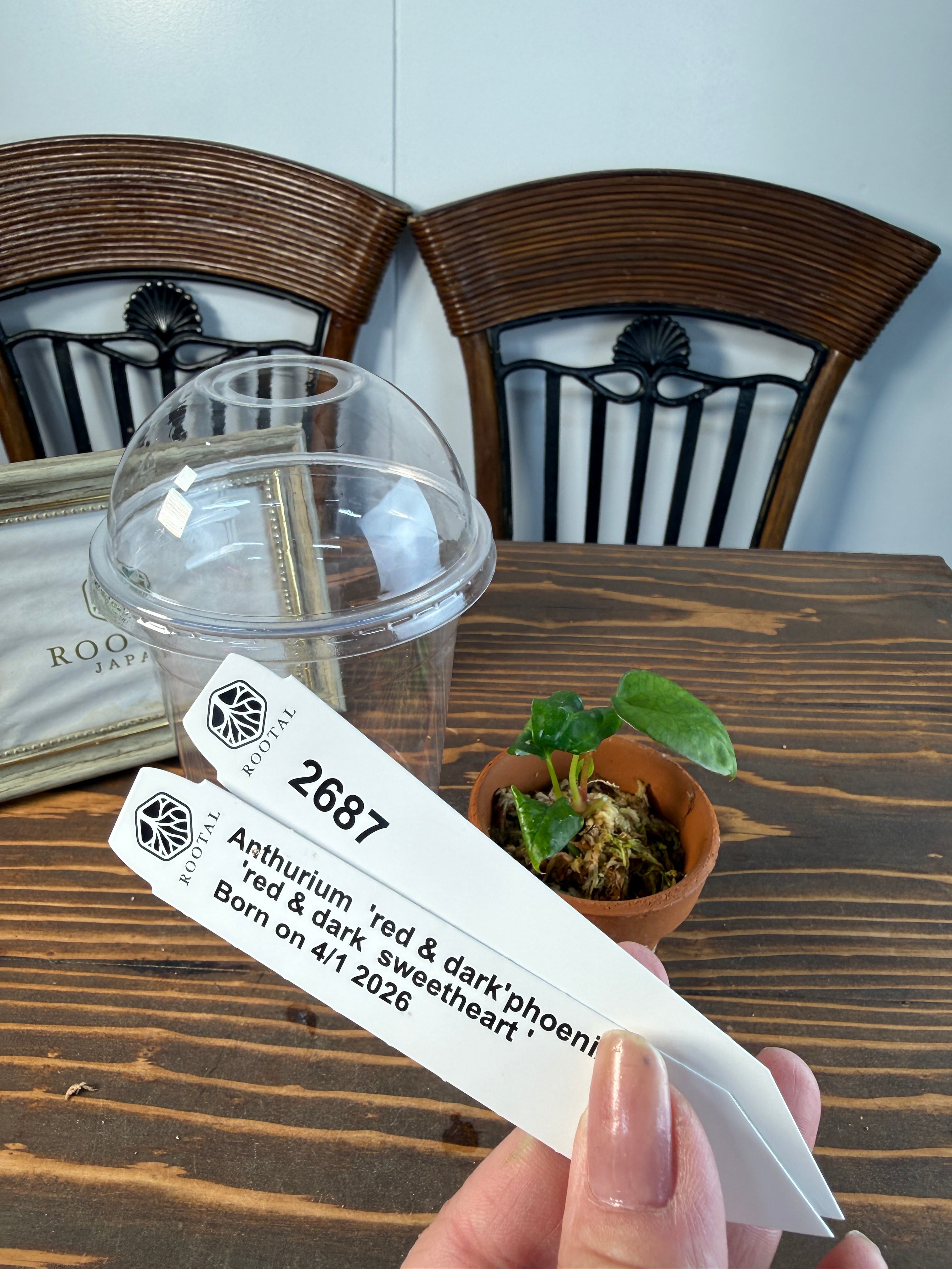 ★2687【惚!TC Baby】アンスリウム Red&dark phoenix × Red&dark sweetheart TC Baby苗(2号素焼き鉢)