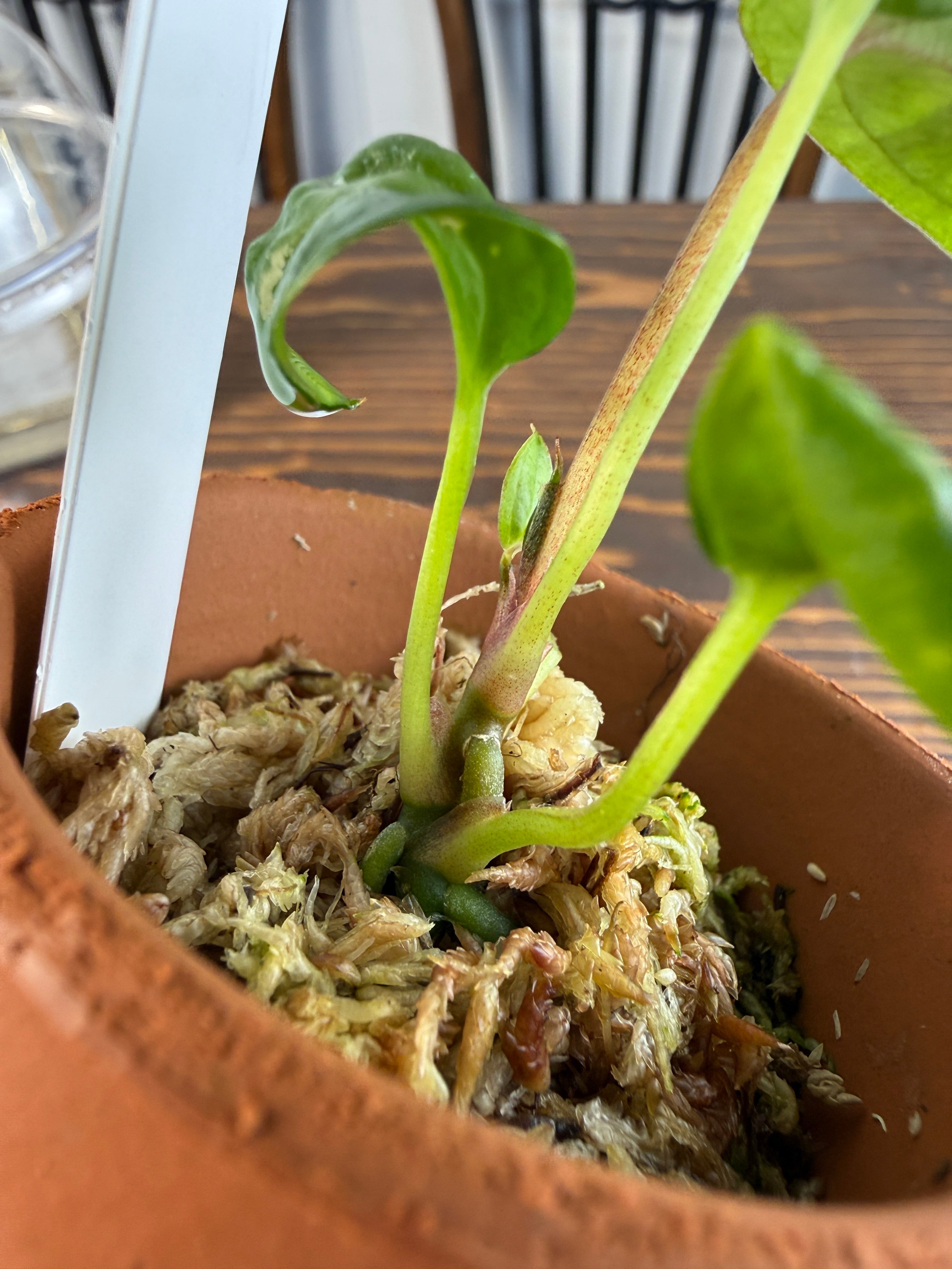 植え替え時は根を傷めないよう水苔を外し、アロイドミックスなどに植え替えればOKです!